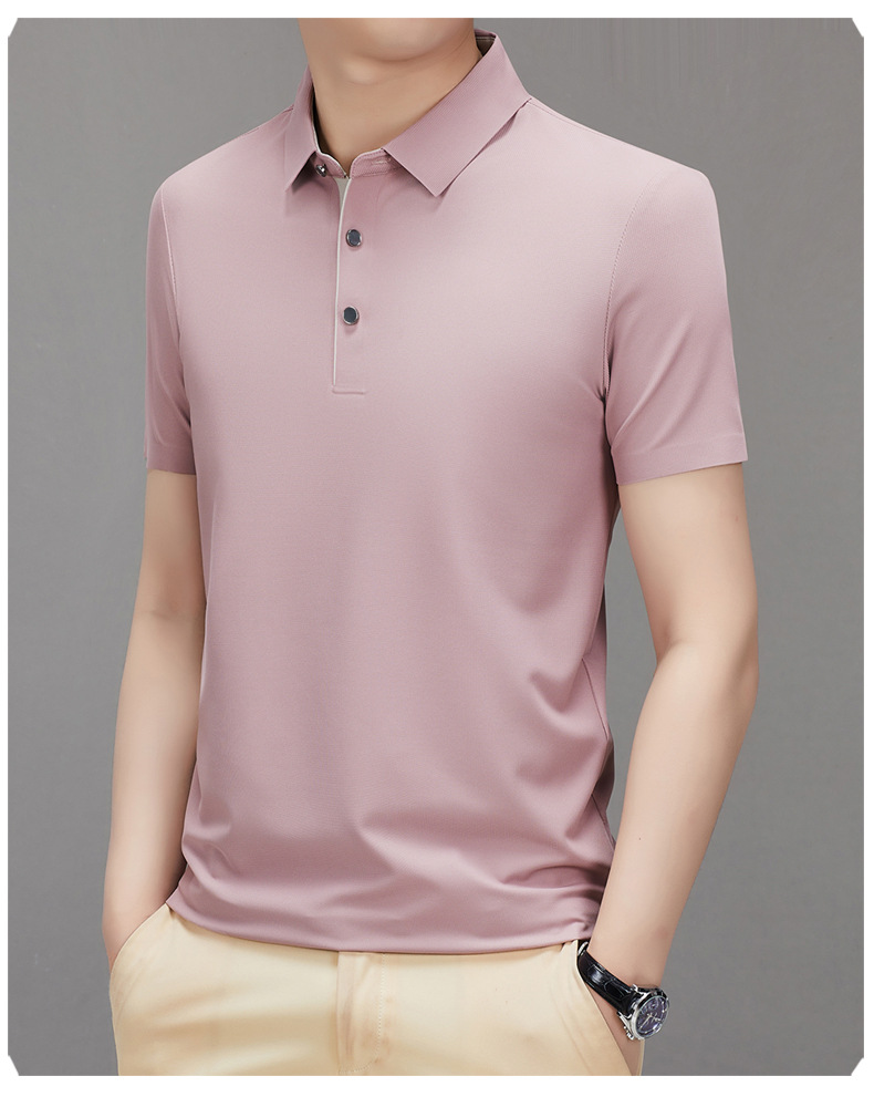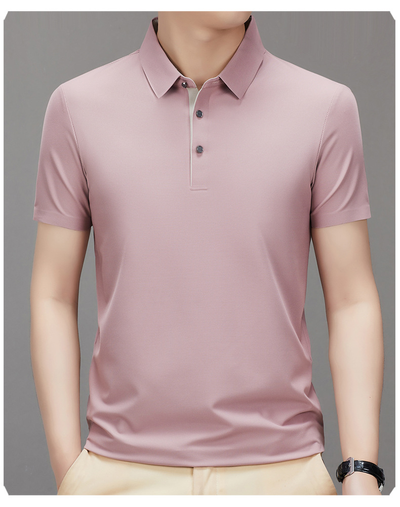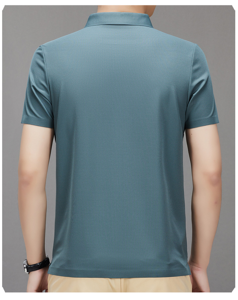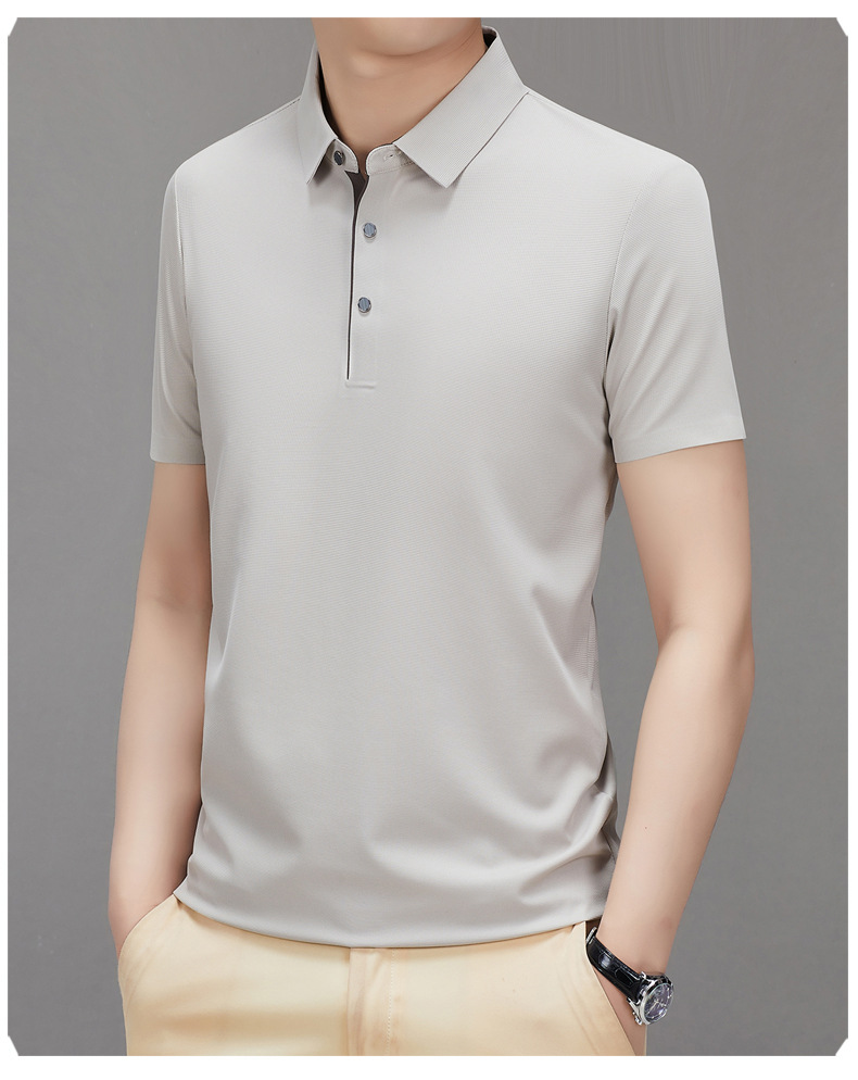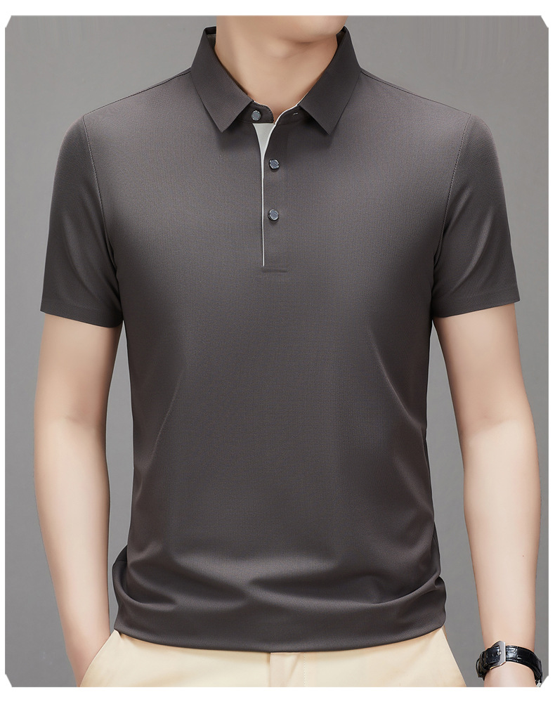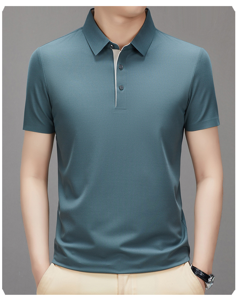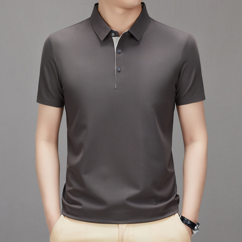 하이 엔드 남성용 심플 헴 슬릿 원활한 프린트 티셔츠 여름 비즈니스 캐주얼 컬러 매칭 플래켓 옷깃 폴로