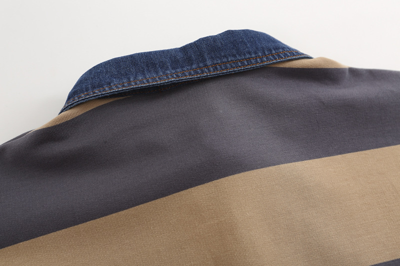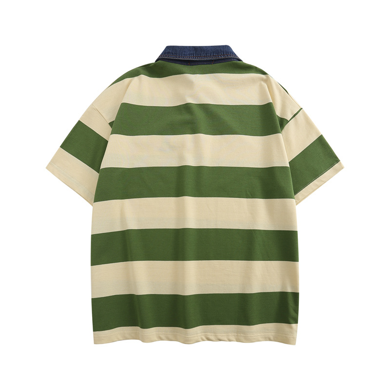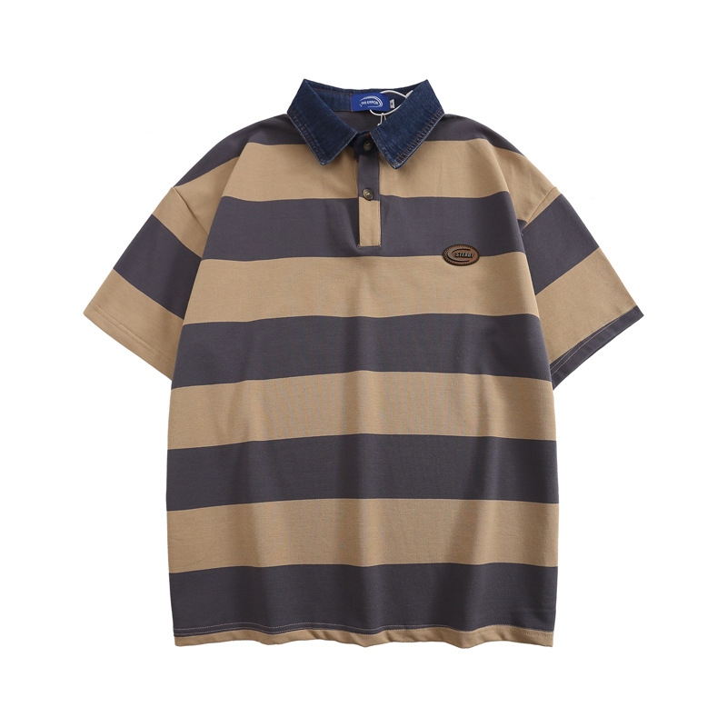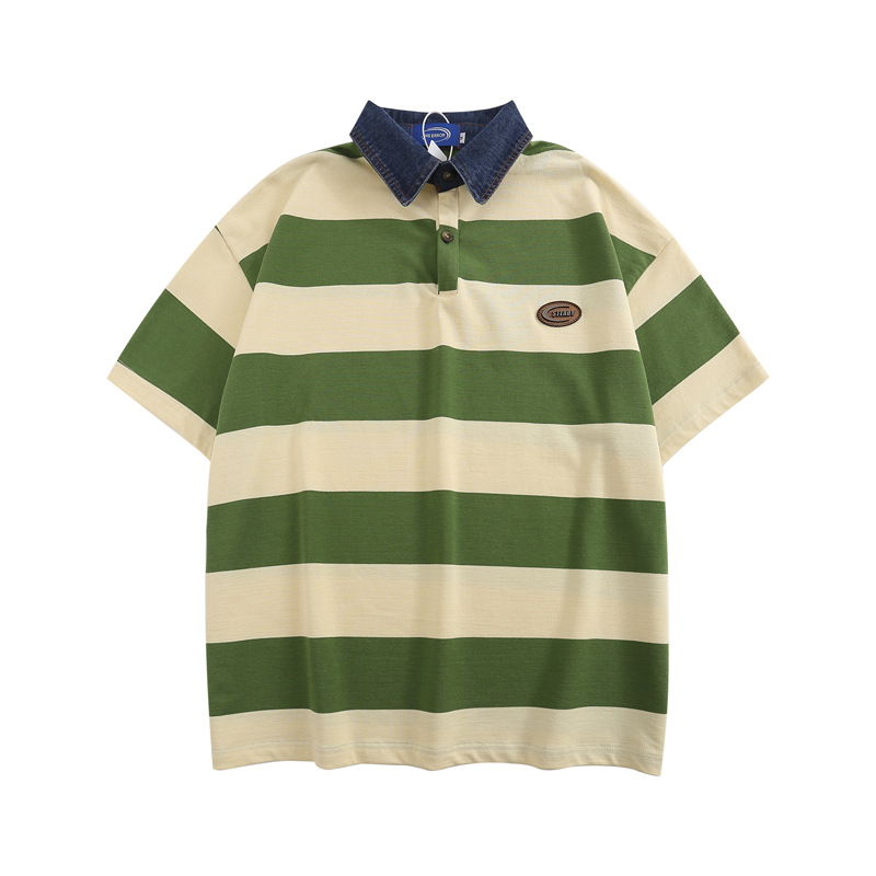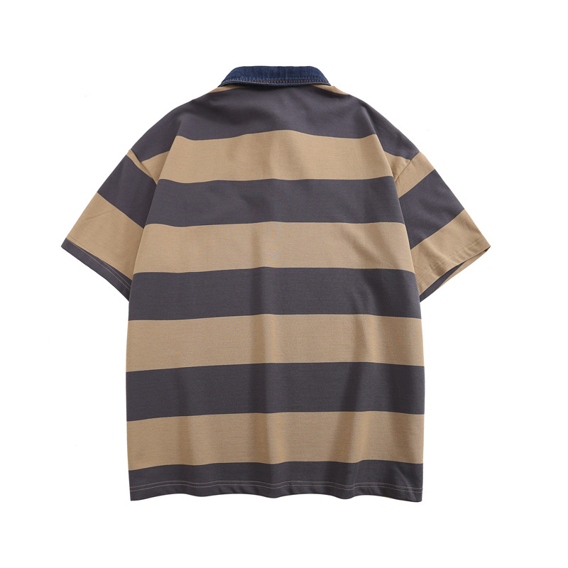 바느질 컬러 스트라이프 짧은 소매 폴로 셔츠 남자의 미국 스타일 복고풍 디자인 감각 느슨한 Bf 스타일 캐주얼 커플 탑