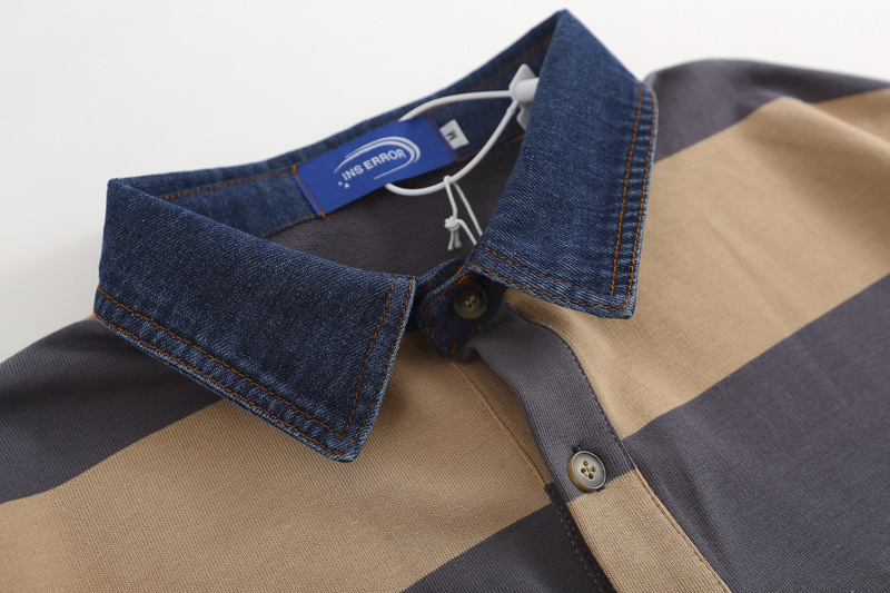 바느질 컬러 스트라이프 짧은 소매 폴로 셔츠 남자의 미국 스타일 복고풍 디자인 감각 느슨한 Bf 스타일 캐주얼 커플 탑스토어 가기