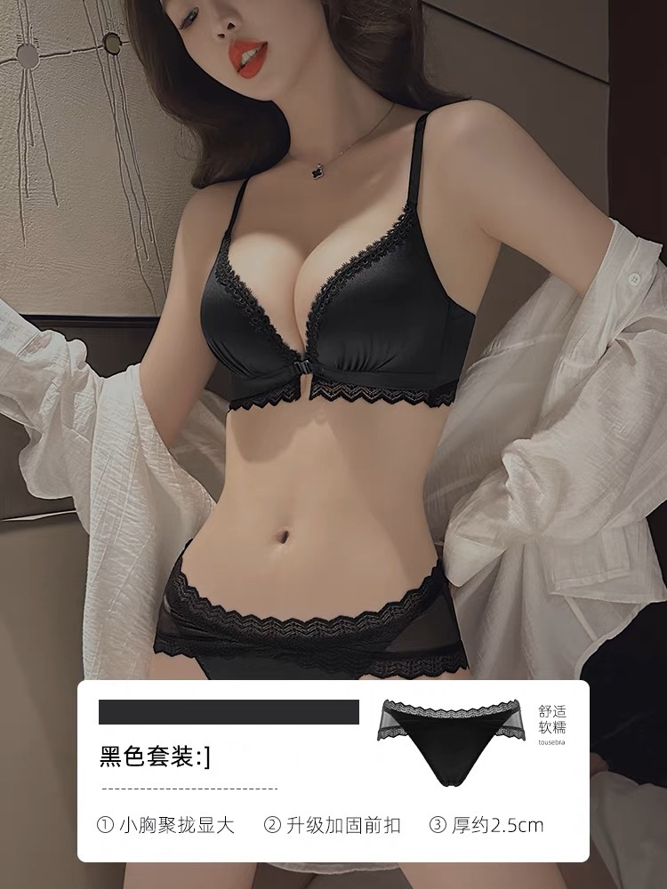 섹시한 전면 버튼 두껍게 작은 가슴 푸시 업 쇼이 속옷 여성용 스틸 링 조정 가능한 아름다운 뒤 원활한 브래지어 세트스토어 가기