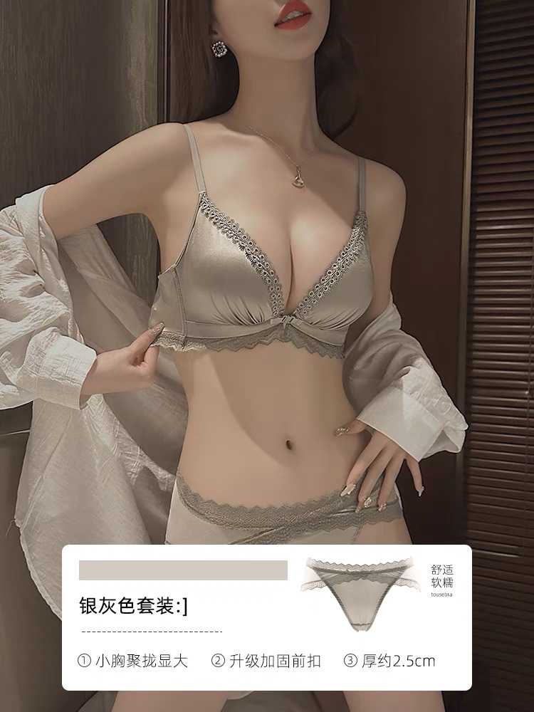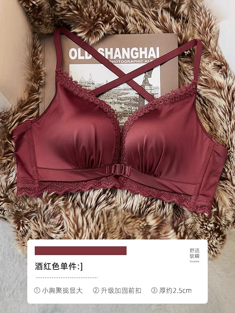 섹시한 전면 버튼 두껍게 작은 가슴 푸시 업 쇼이 속옷 여성용 스틸 링 조정 가능한 아름다운 뒤 원활한 브래지어 세트