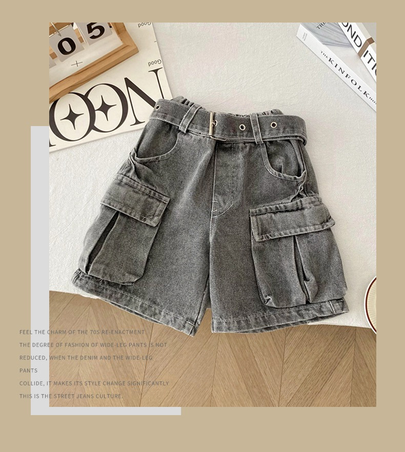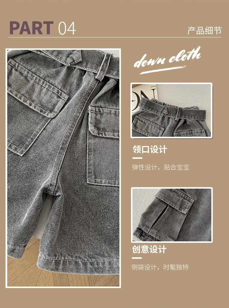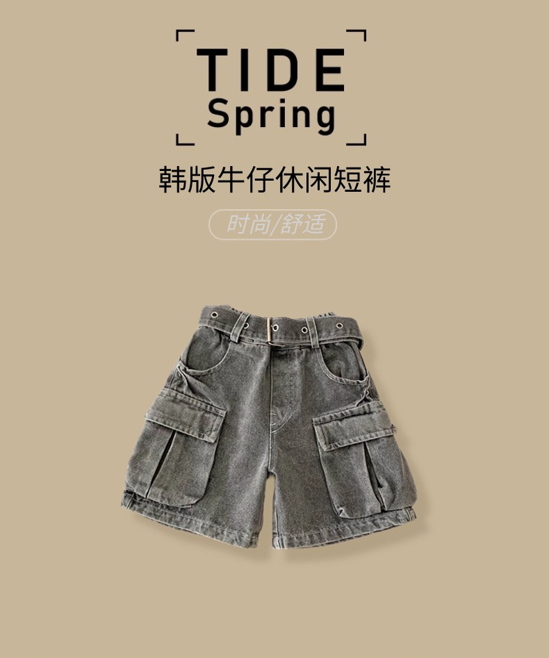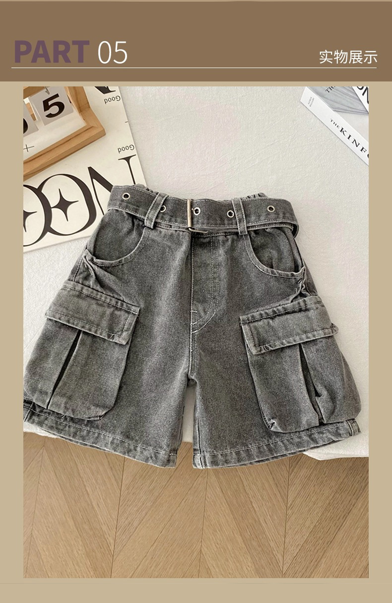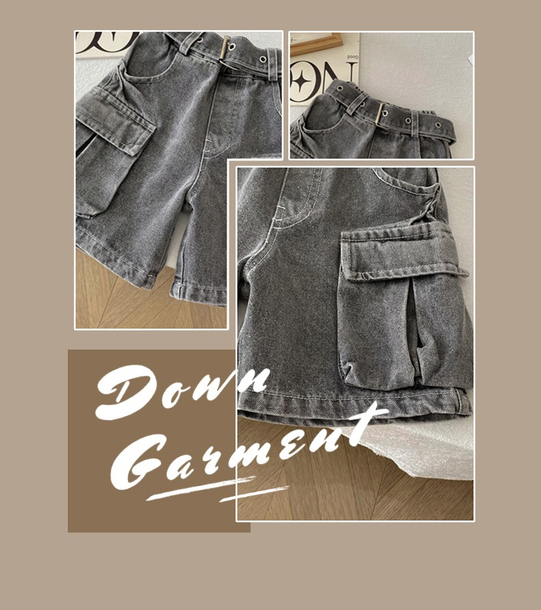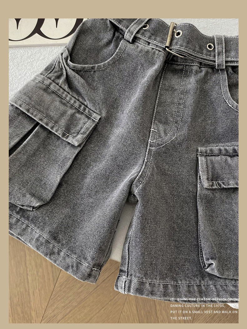 소년 작업복 데님 반바지 2025 여름 신작 어린이 벨트 5부 바지 소년 중간 바지 여름 의류 아동 의류 트렌드스토어 가기