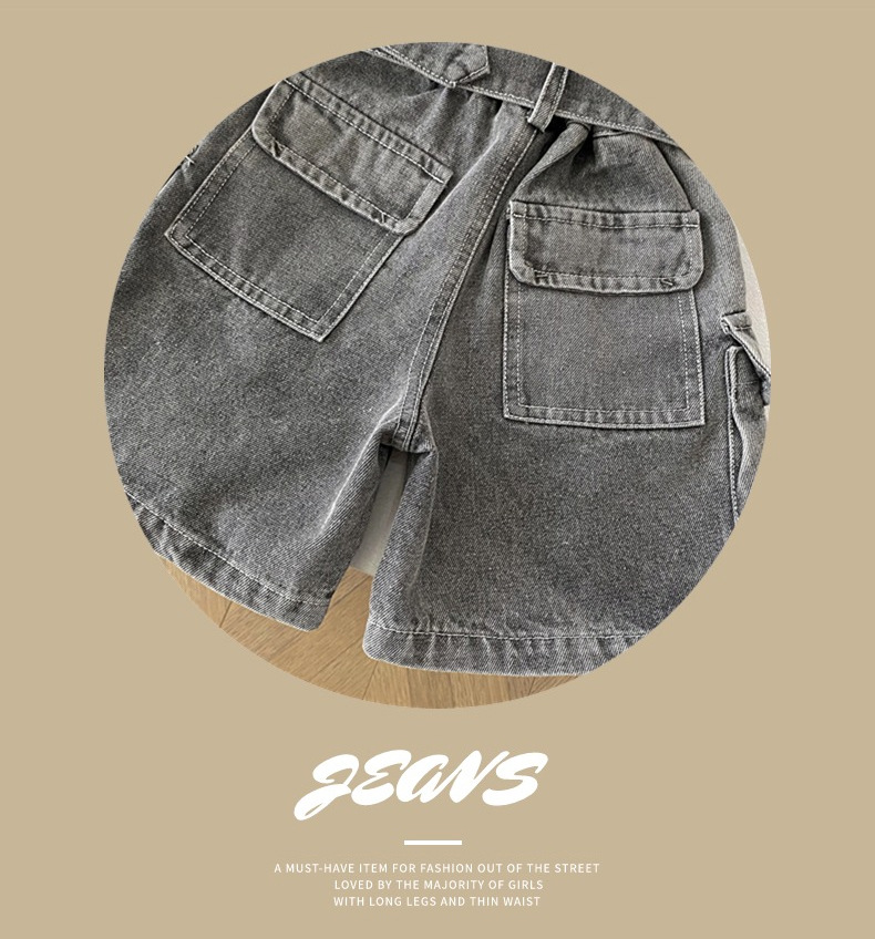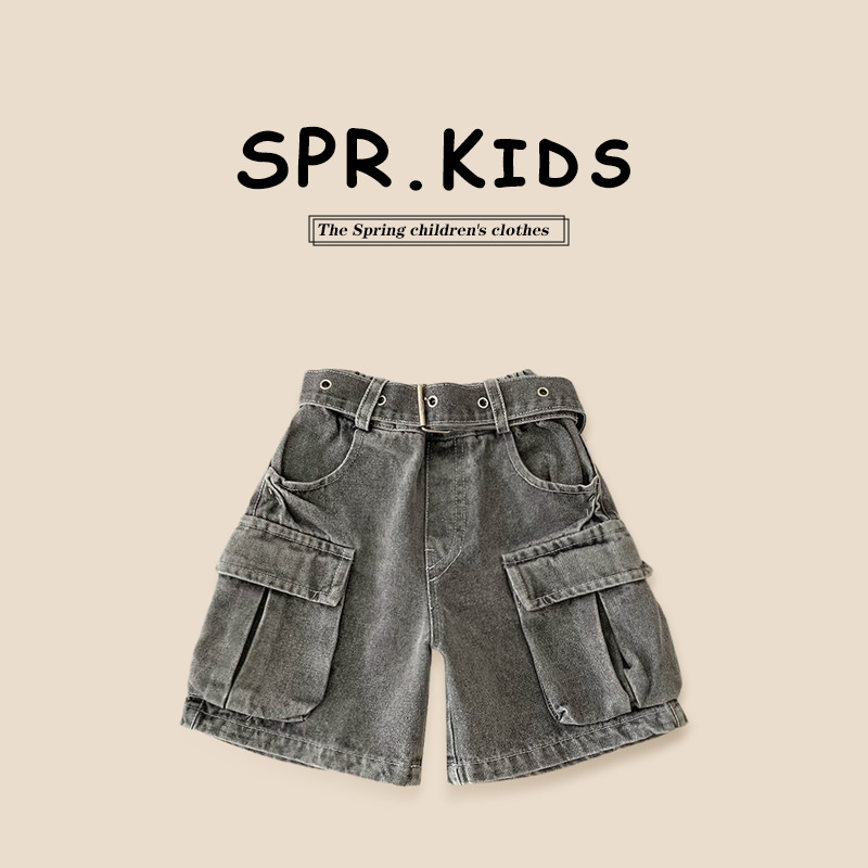 소년 작업복 데님 반바지 2025 여름 신작 어린이 벨트 5부 바지 소년 중간 바지 여름 의류 아동 의류 트렌드