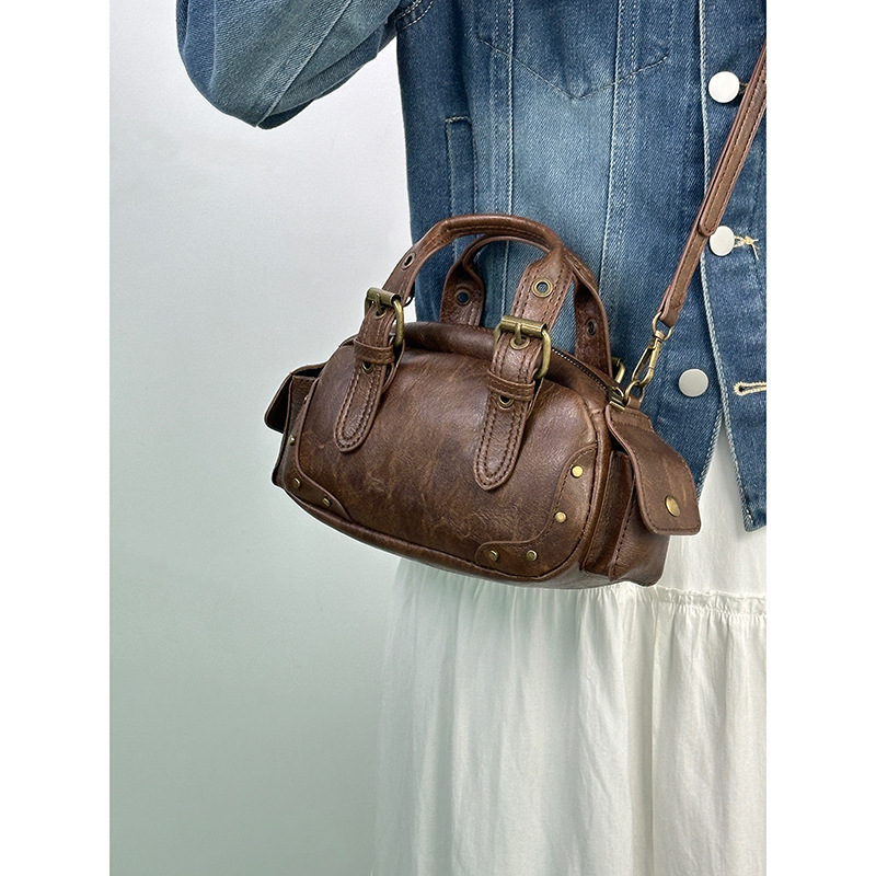 틈새 디자인 레트로 휴대용 오토바이 가방 여성의 2024 새로운 유행 브랜드 볼링 어깨 크로스 바디 백