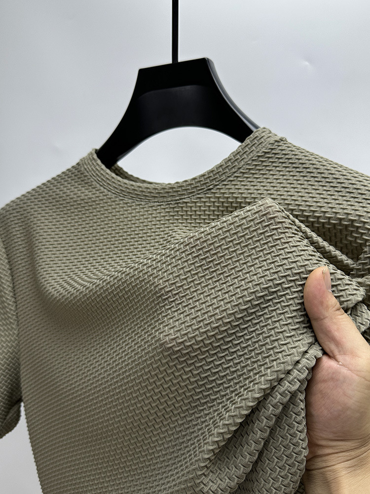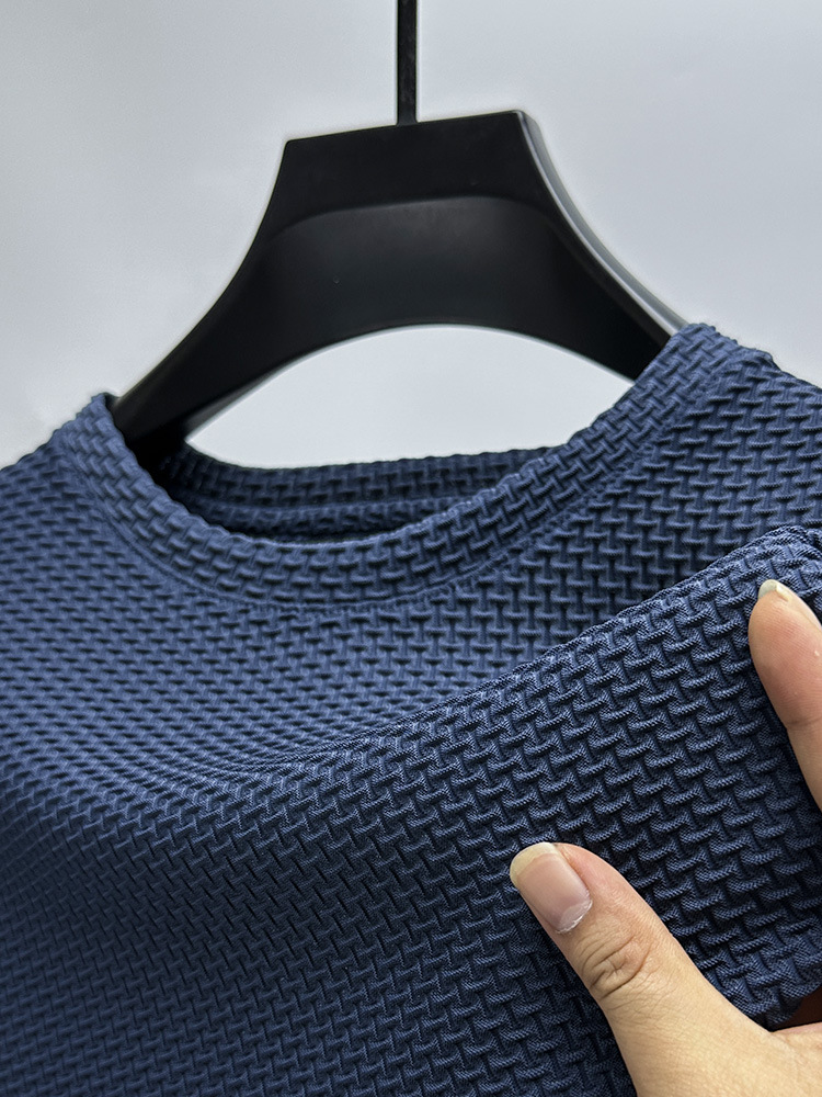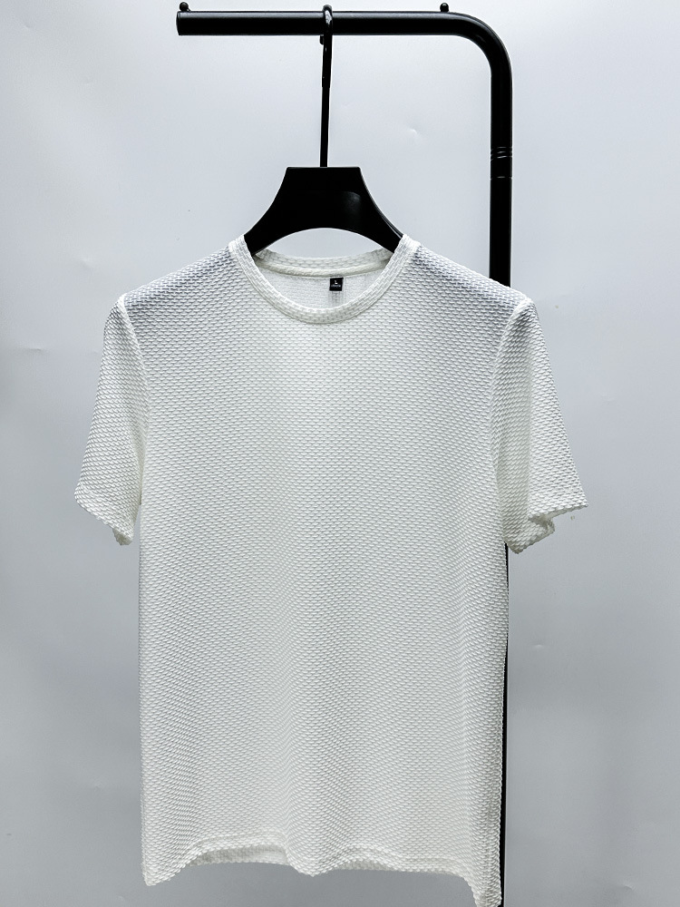 여름 아이스 실크 얇은 반소매 티셔츠 남성용 느슨한 와플 반소매 크루 넥 트렌드 의류 헤어 세대