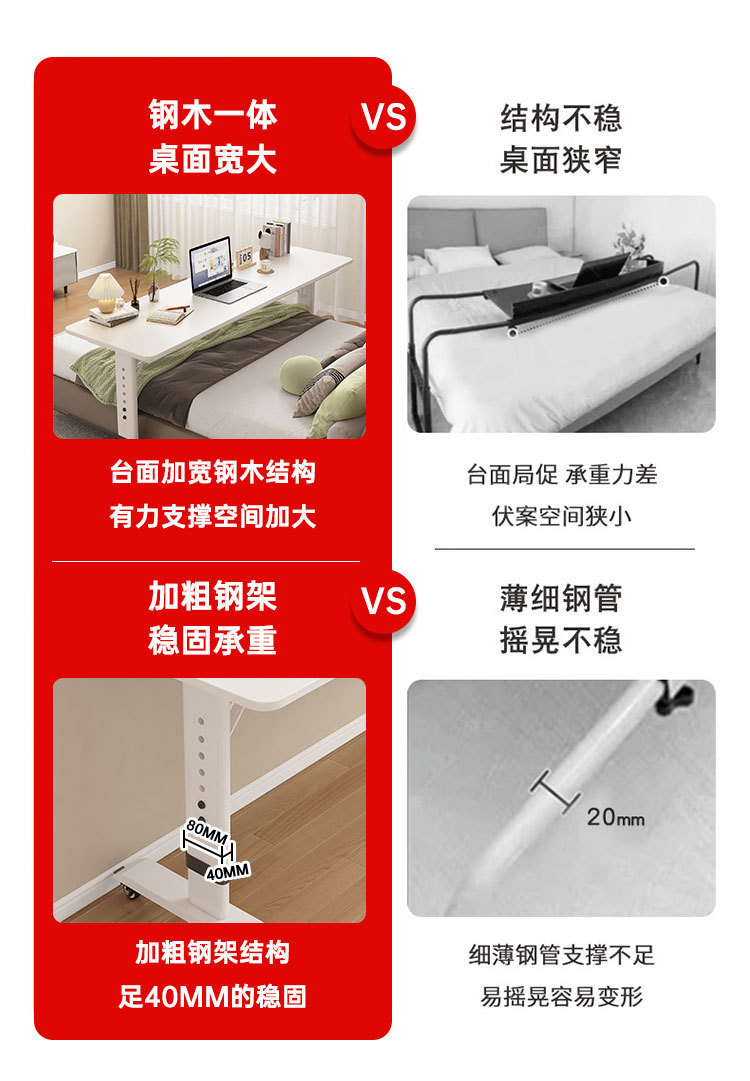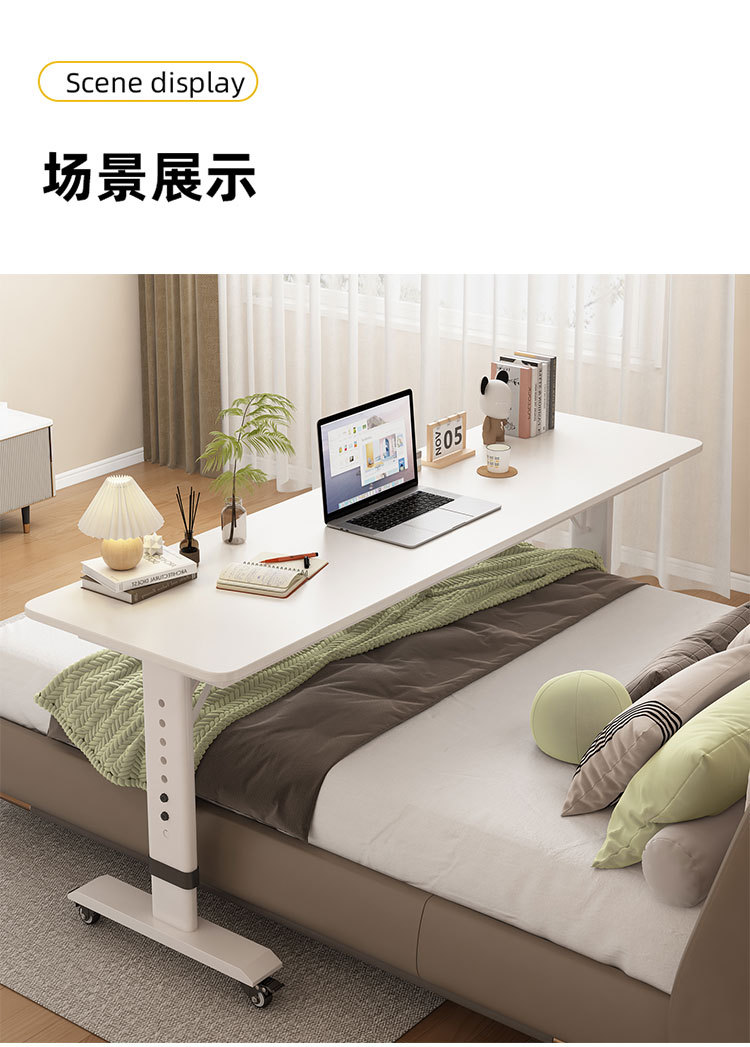 원목 긴 테이블, 침대 사이 테이블, 이동식 책상, 컴퓨터 책상, 가정용 침대 테이블, 게으른 사람들을 위한 높이 조절 가능한 침실 침대 옆 테이블