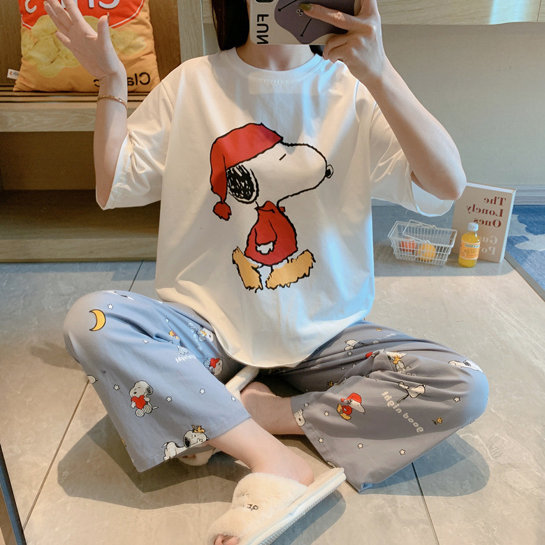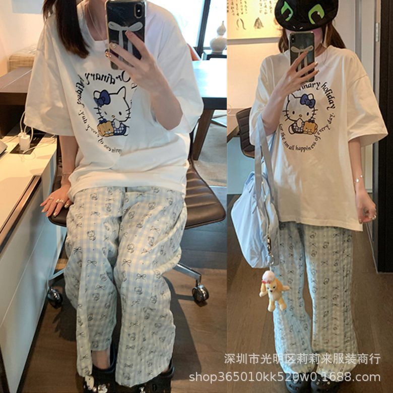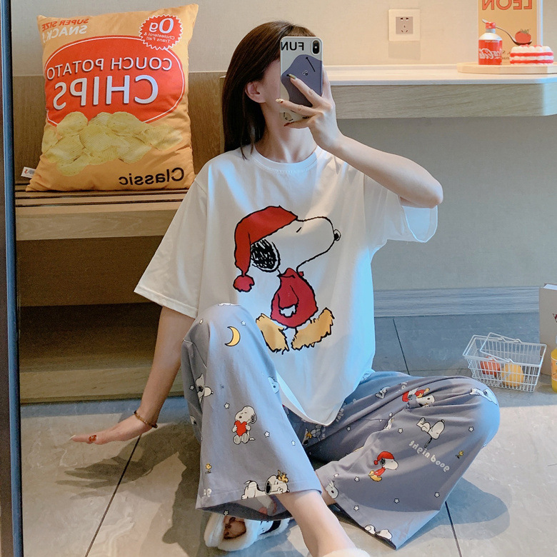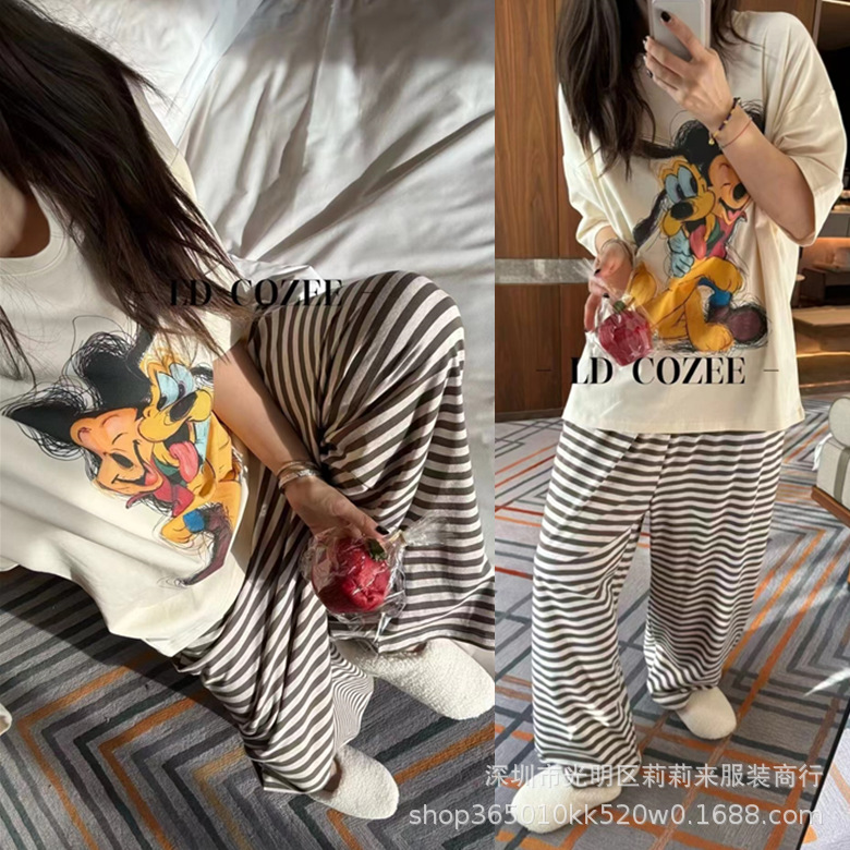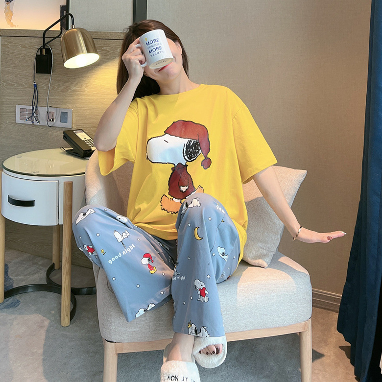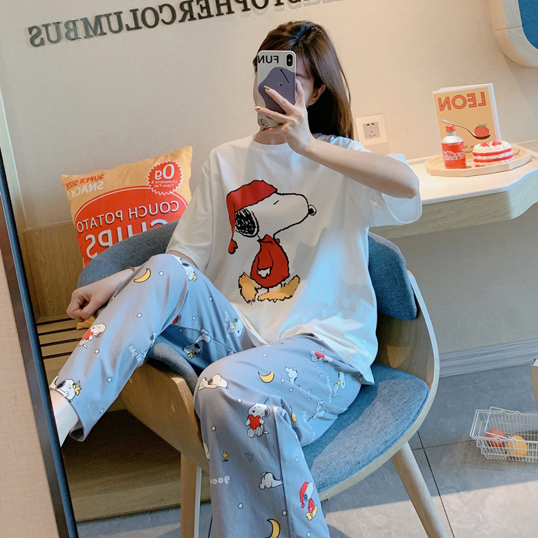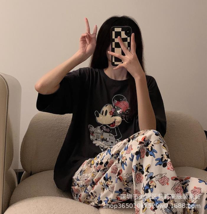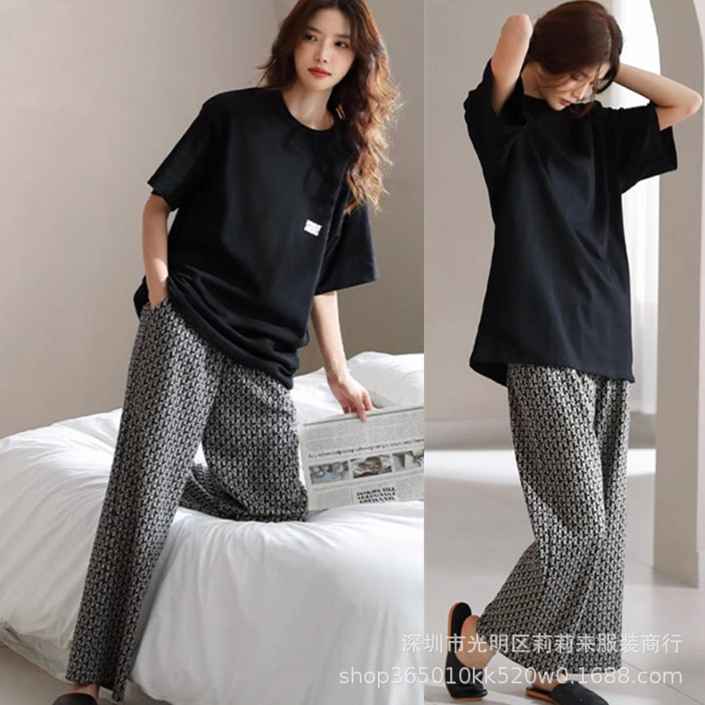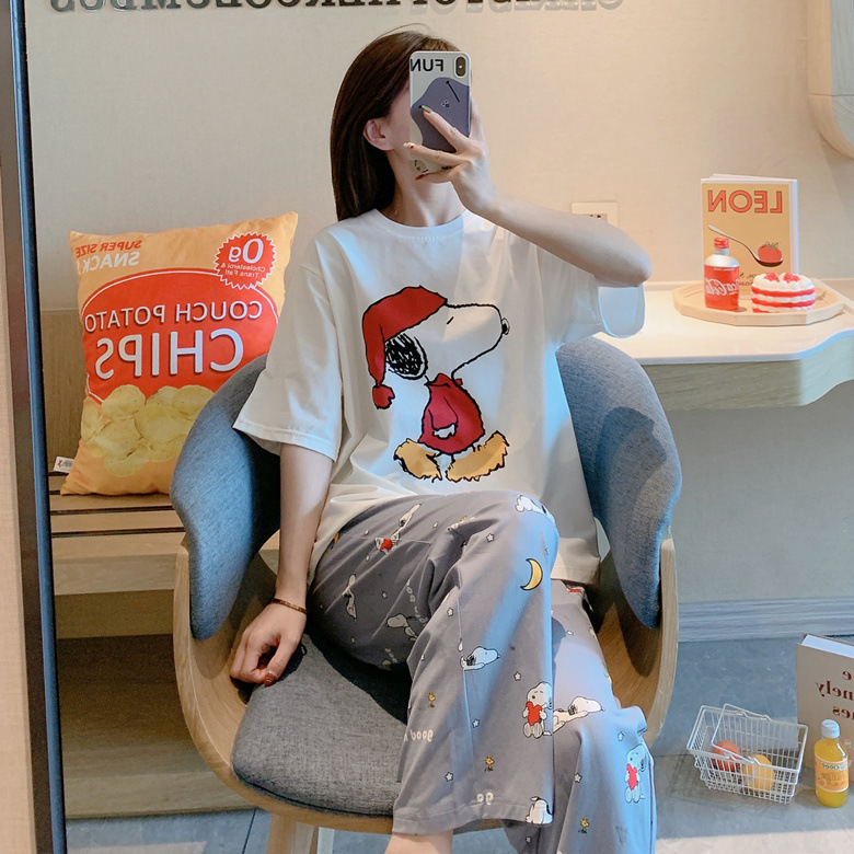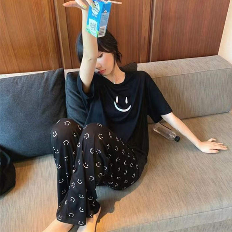 공장 도매 여름 가을 잠옷 여성 캐주얼 세트 홈 옷, 달콤한 핑크 소녀 짧은 소매 바지스토어 가기
