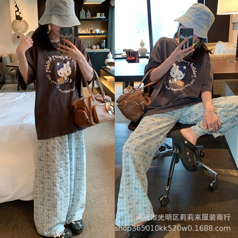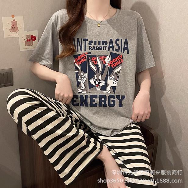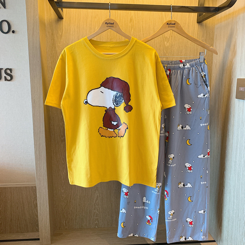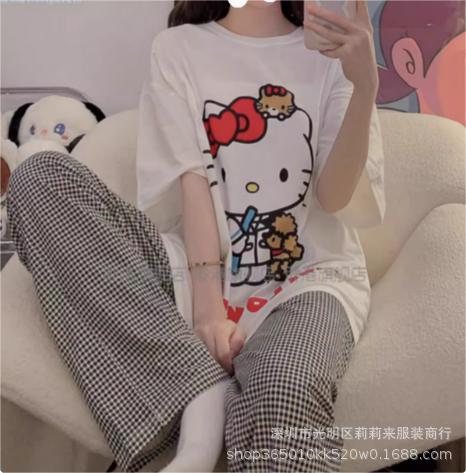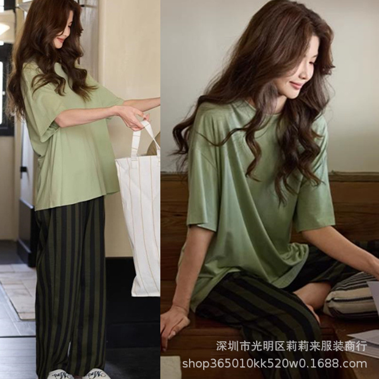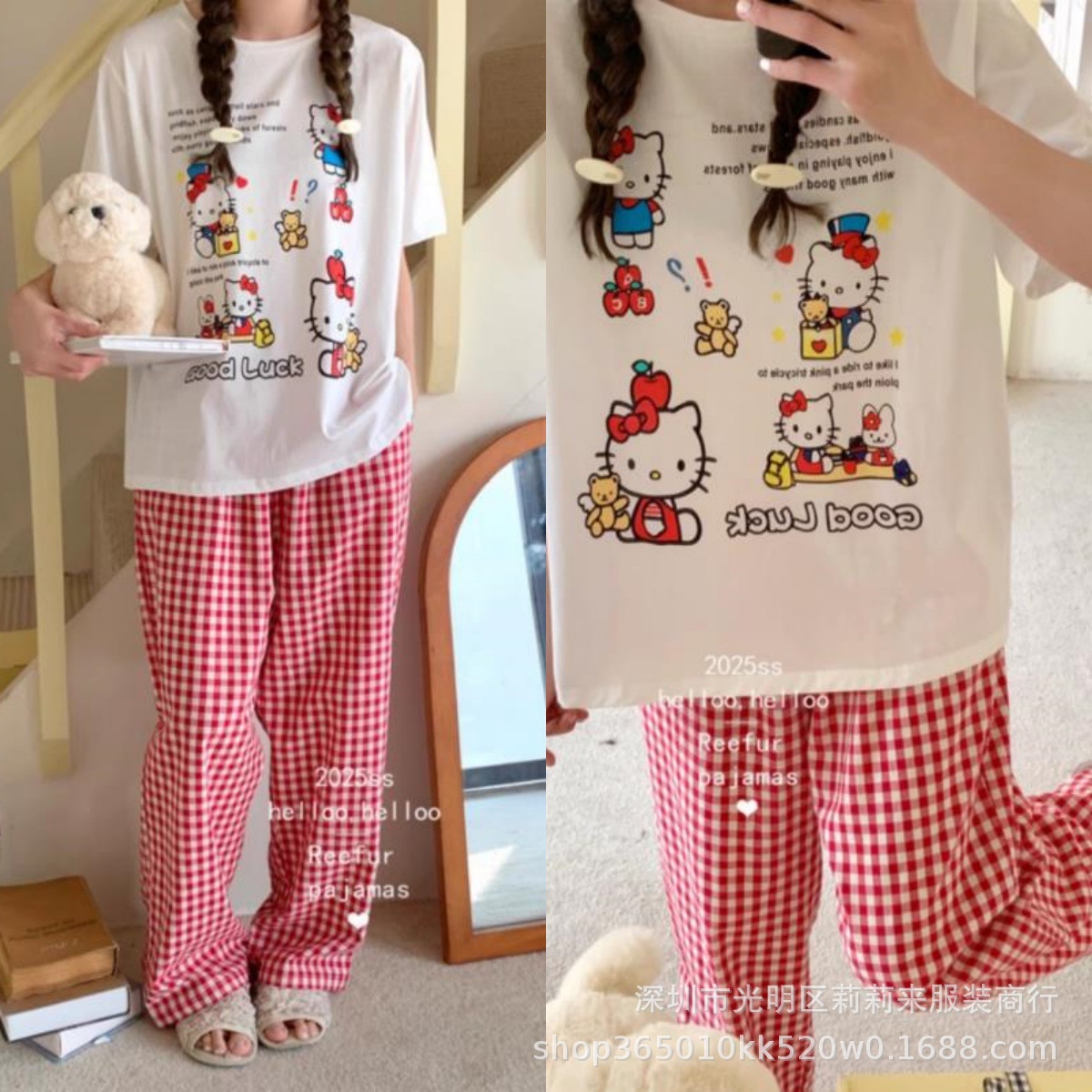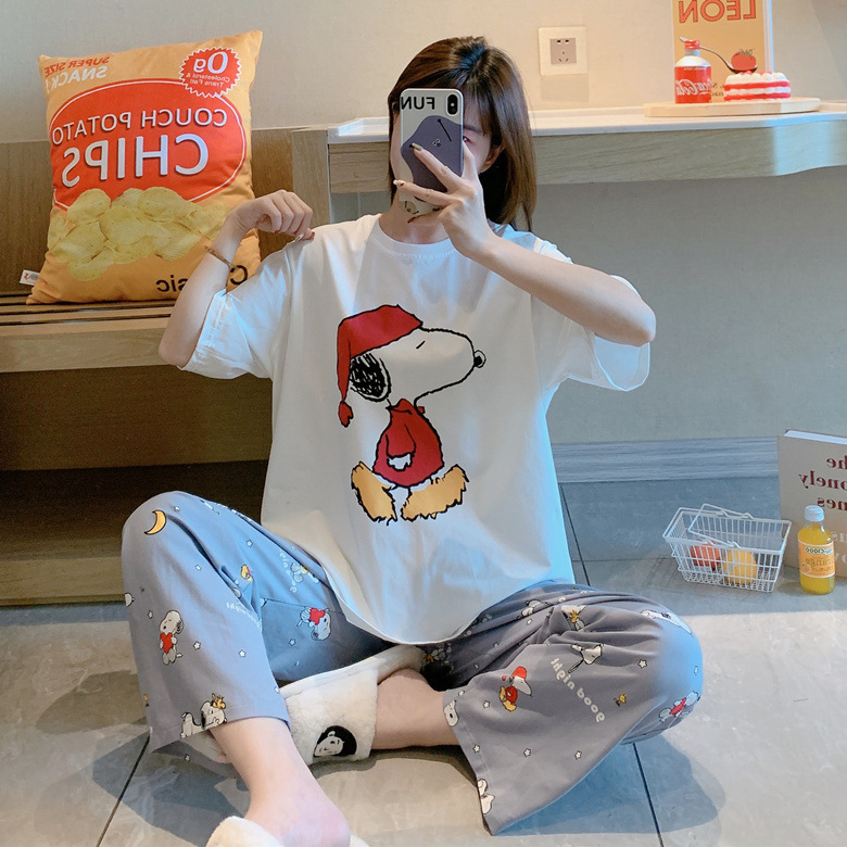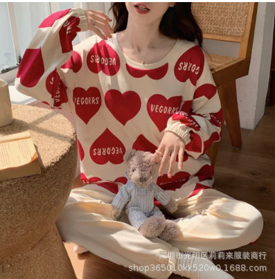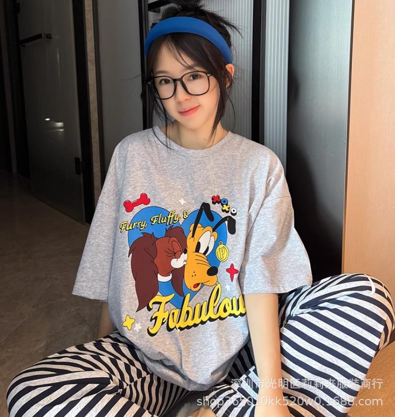 공장 도매 여름 가을 잠옷 여성 캐주얼 세트 홈 옷, 달콤한 핑크 소녀 짧은 소매 바지스토어 가기