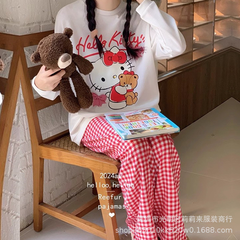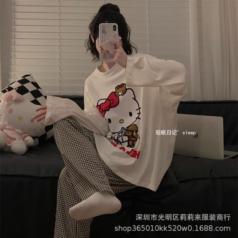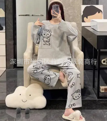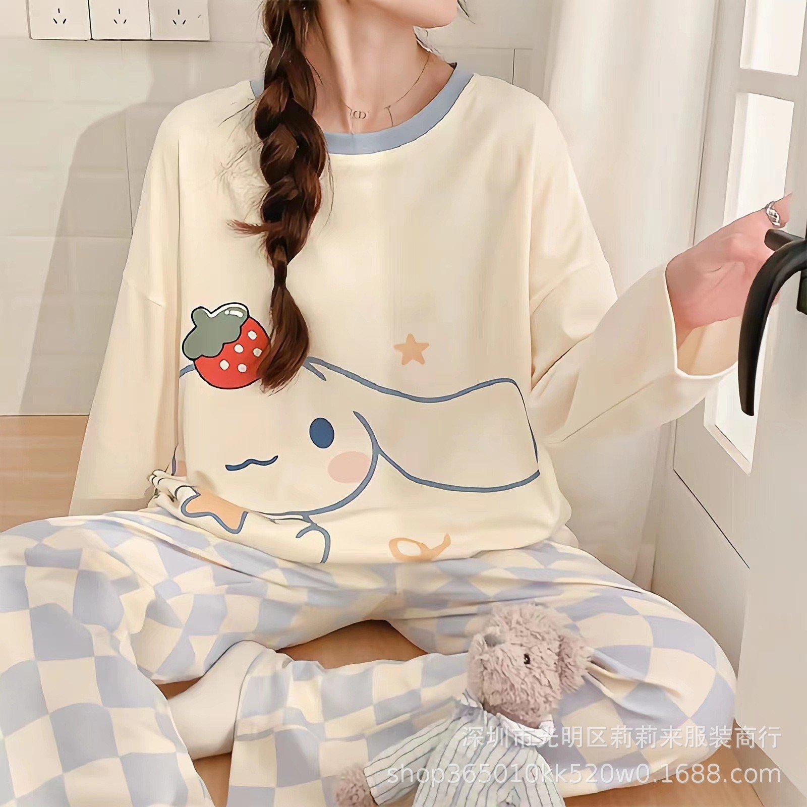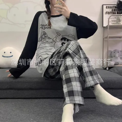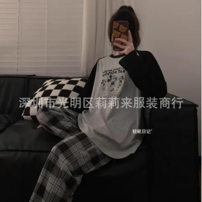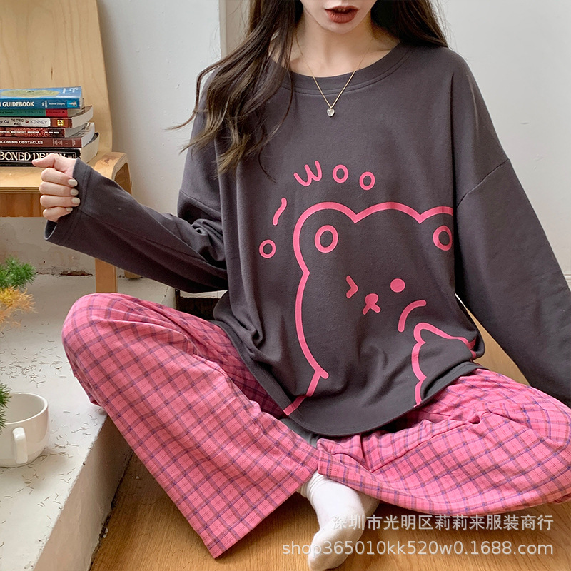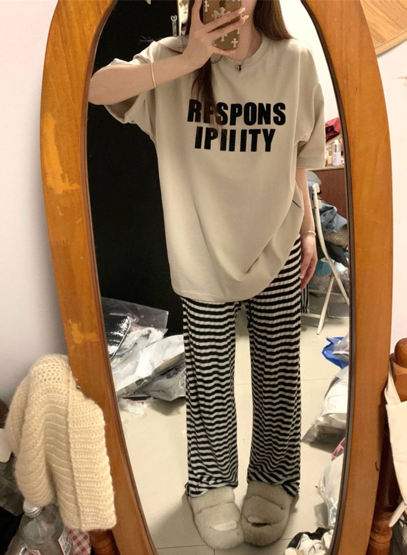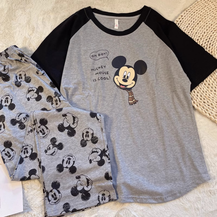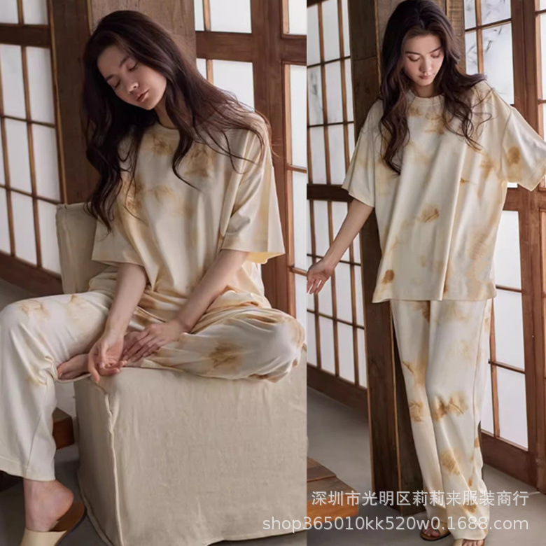 공장 도매 여름 가을 잠옷 여성 캐주얼 세트 홈 옷, 달콤한 핑크 소녀 짧은 소매 바지스토어 가기