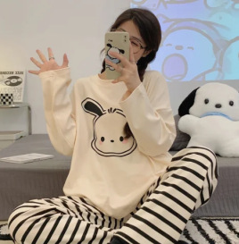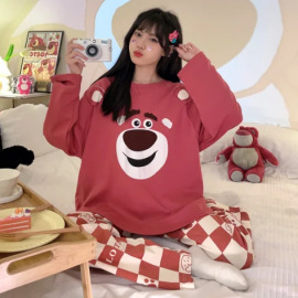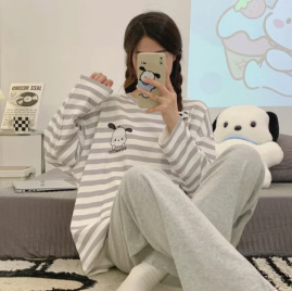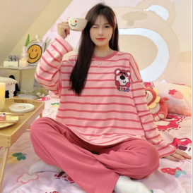 공장 도매 여름 가을 잠옷 여성 캐주얼 세트 홈 옷, 달콤한 핑크 소녀 짧은 소매 바지