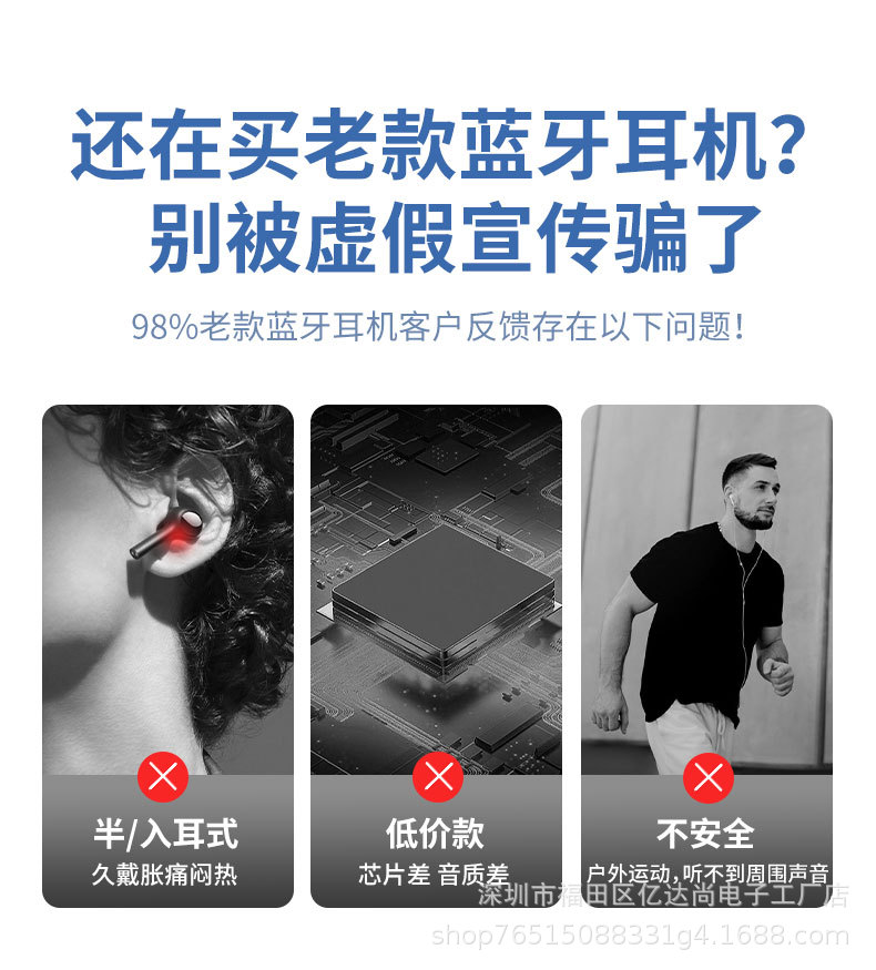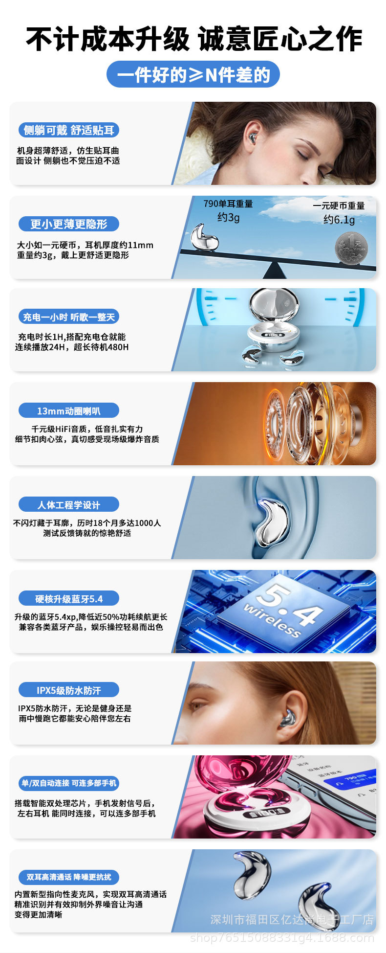 새로운 블루투스 헤드셋, 얇고 보이지 않는 미니 인이어 크로스보더 소음 감소, 측면 수면, 귀에 압력 없음, HIFI 디지털 디스플레이스토어 가기