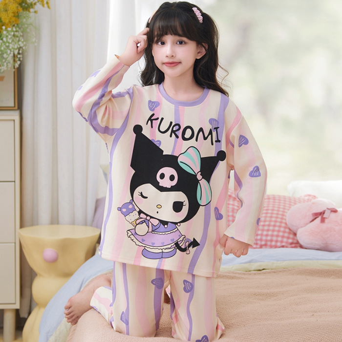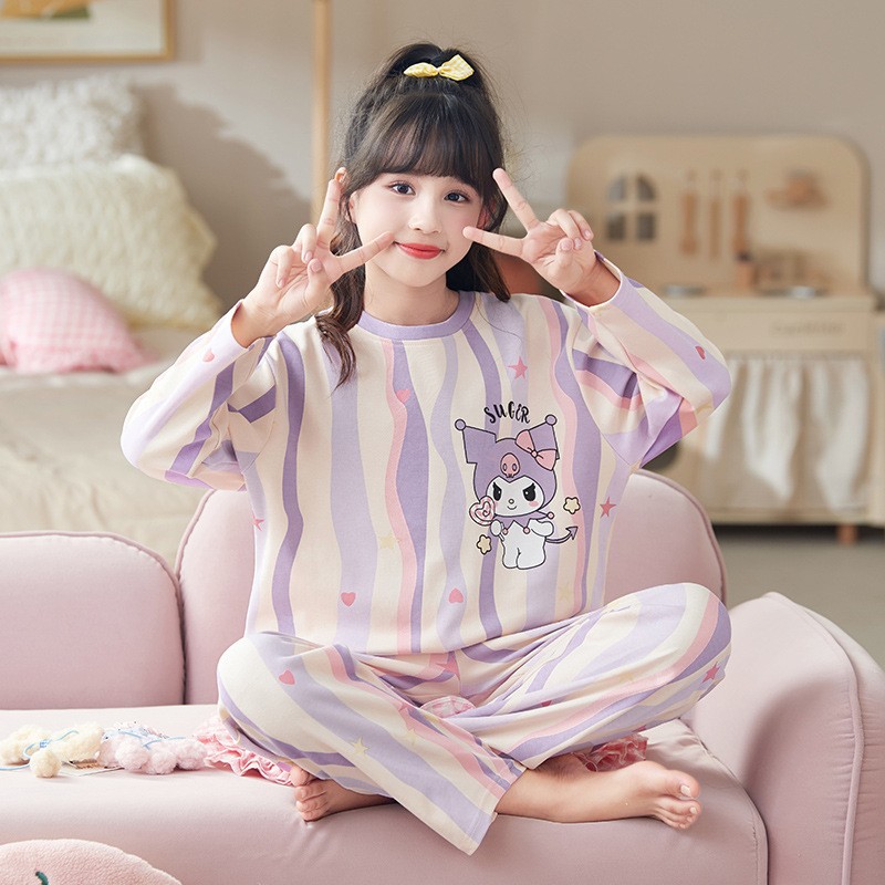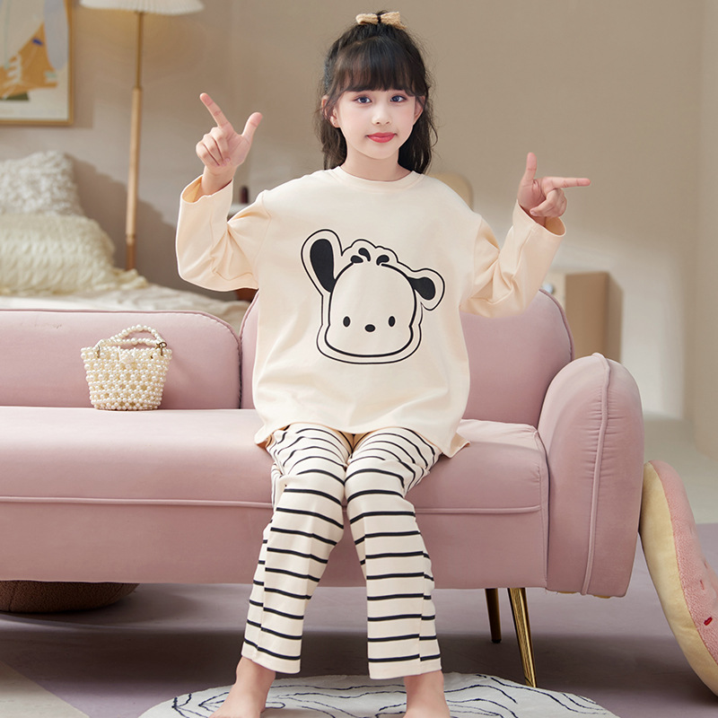 100 면 바지 어린이 잠옷 소녀 가을과 겨울 긴 소매 얇은 큰 소년 공주 소녀 봄과 가을 홈 옷