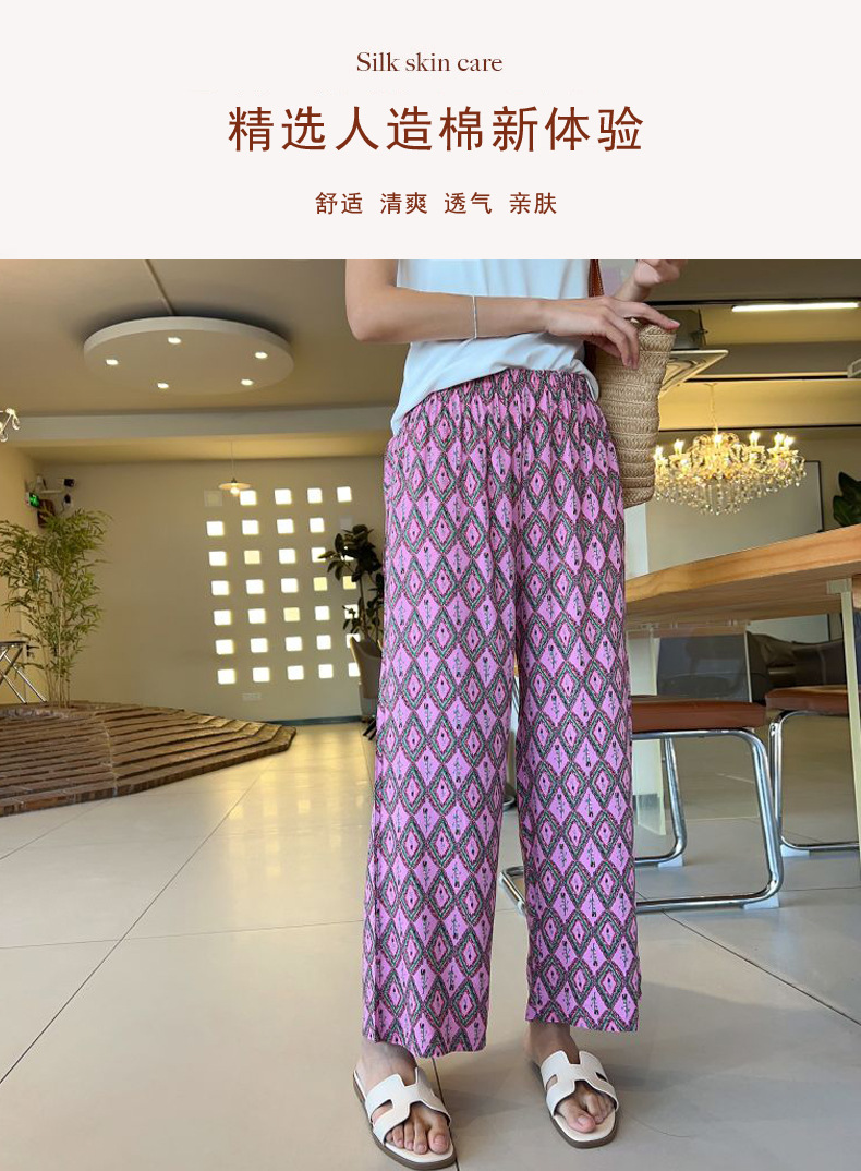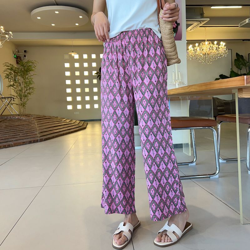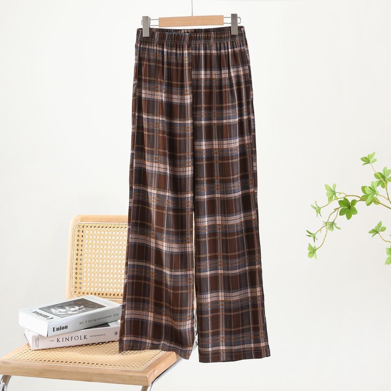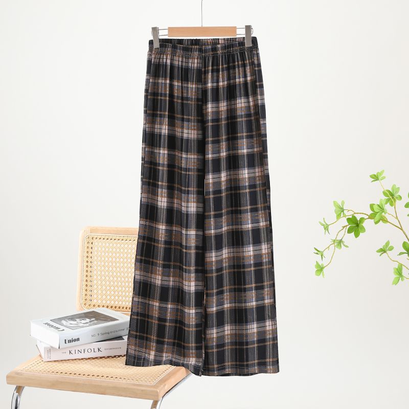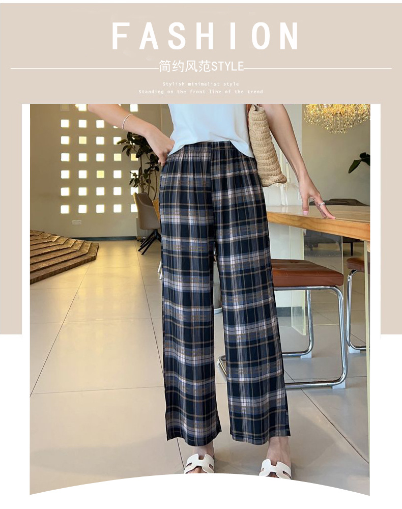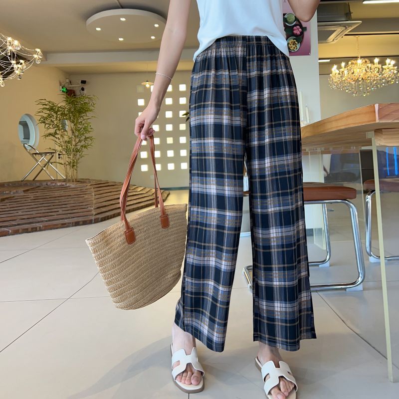 여름 스트레이트 격자 바지 여성의 2024 높은 허리 새로운 얇은 빈티지 격자 무늬 느슨한 캐주얼 슬리밍 넓은 다리 바지