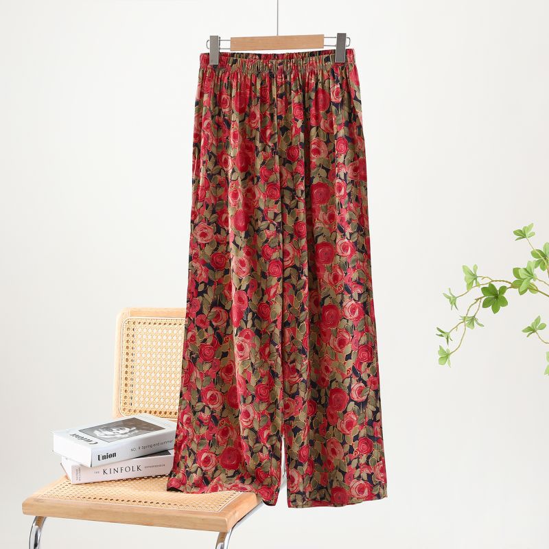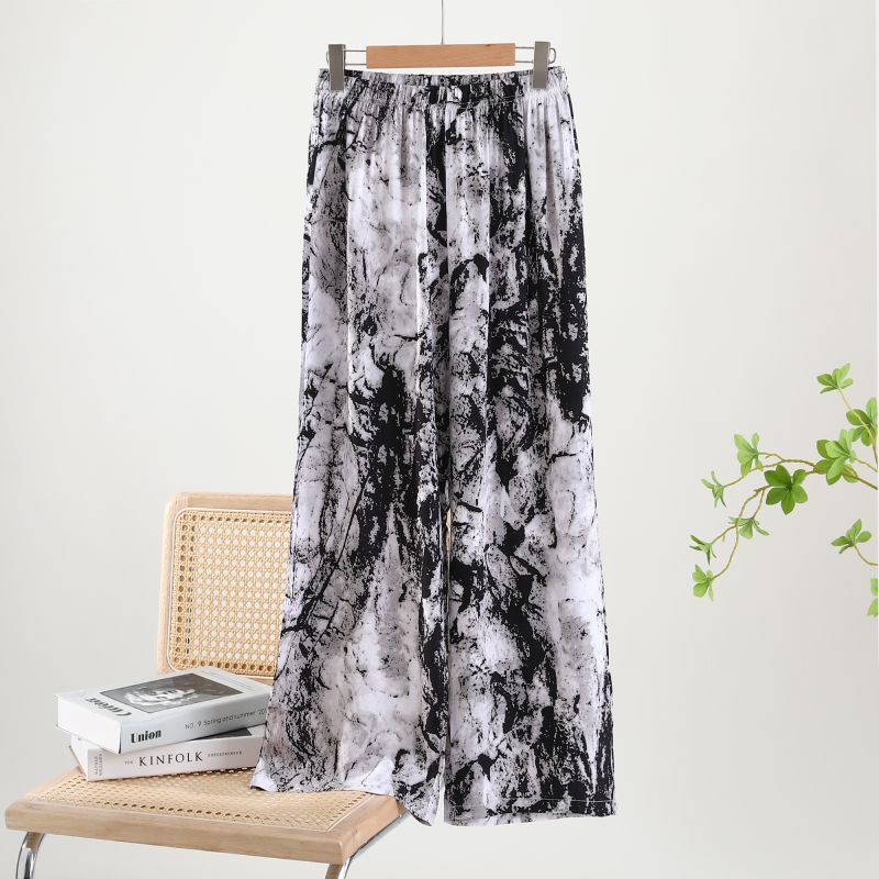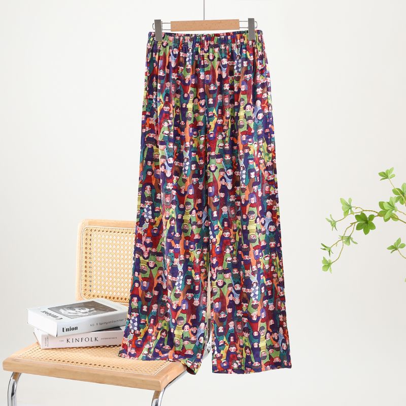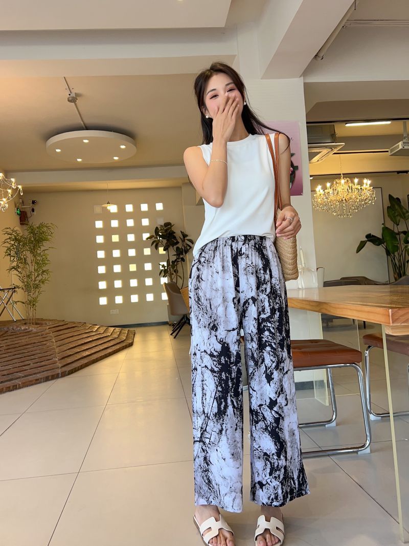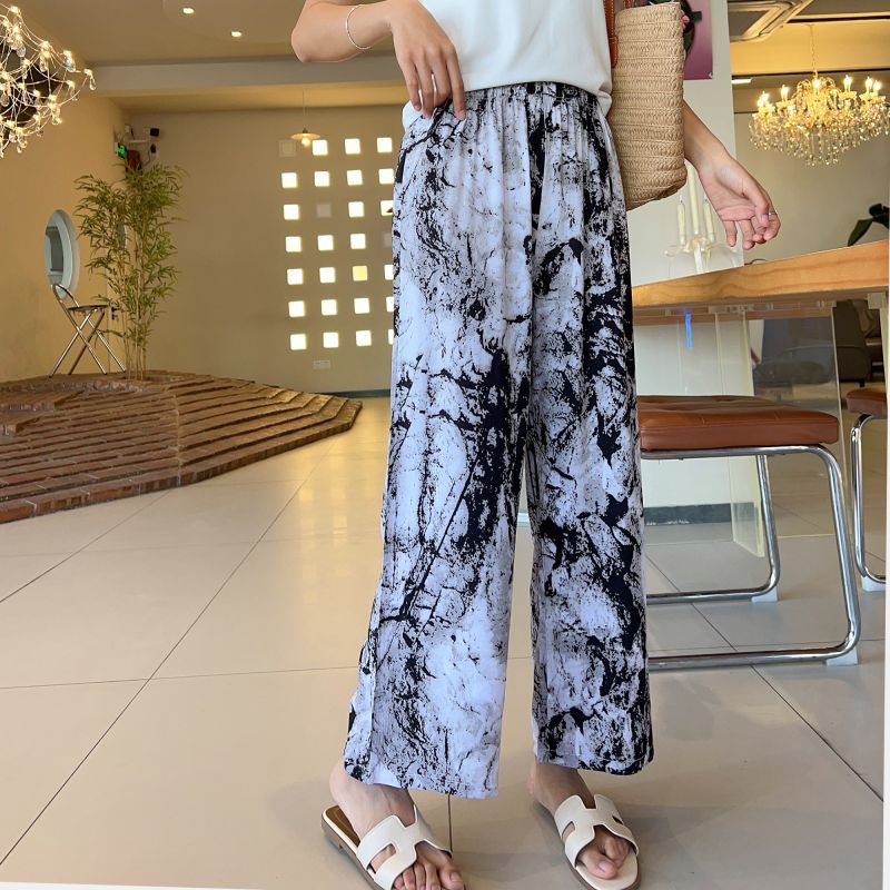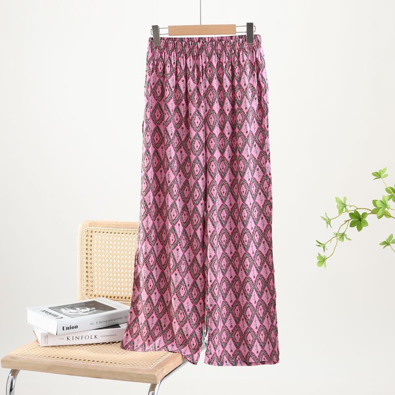 여름 스트레이트 격자 바지 여성의 2024 높은 허리 새로운 얇은 빈티지 격자 무늬 느슨한 캐주얼 슬리밍 넓은 다리 바지