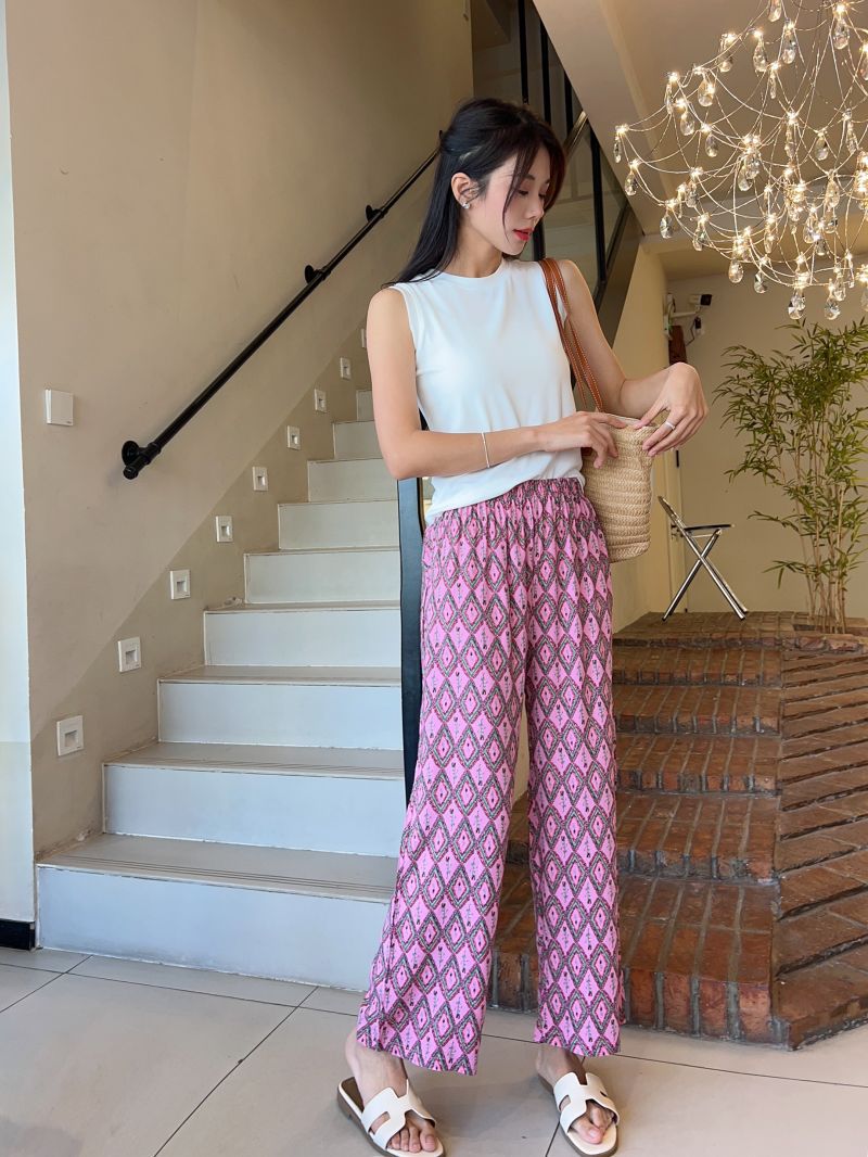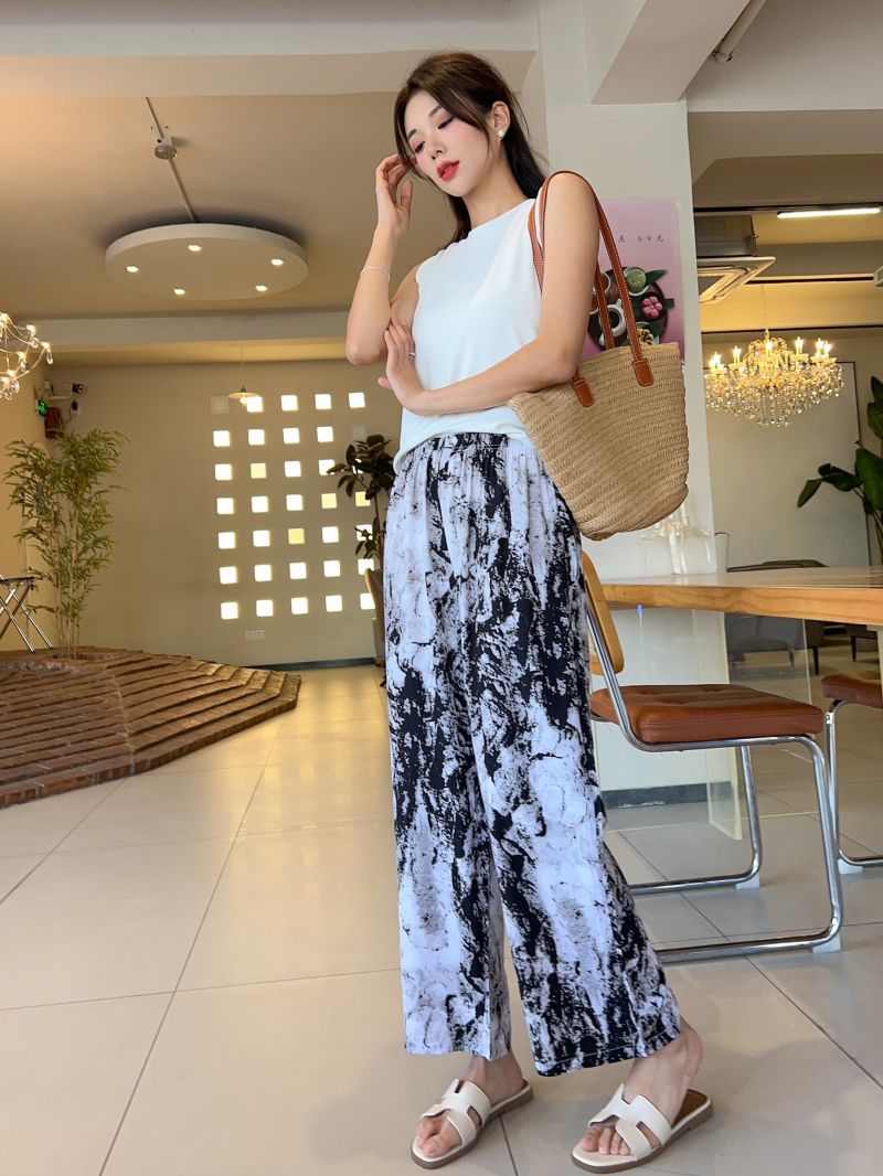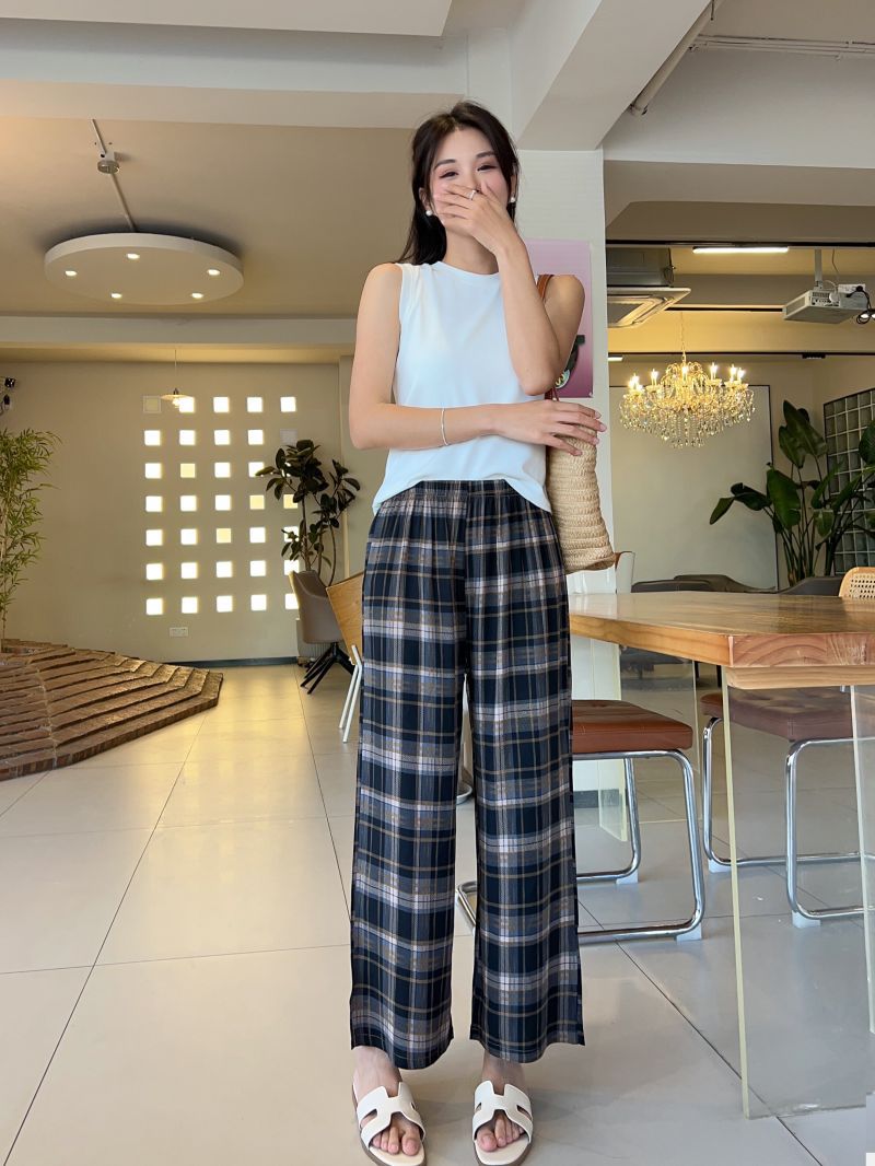 여름 스트레이트 격자 바지 여성의 2024 높은 허리 새로운 얇은 빈티지 격자 무늬 느슨한 캐주얼 슬리밍 넓은 다리 바지스토어 가기