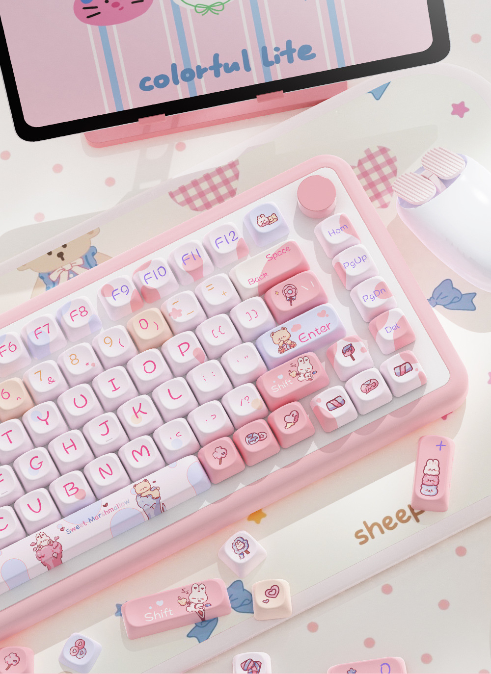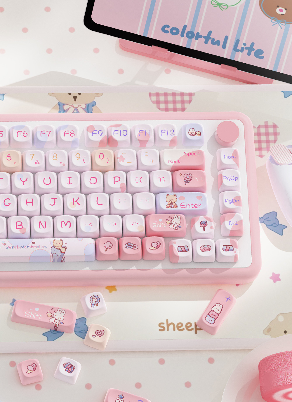 달콤한 마시멜로 오리지널 키캡 5 면 승화 모아 매우 귀여운 성격 적응 형 기계 키보드 캡스토어 가기