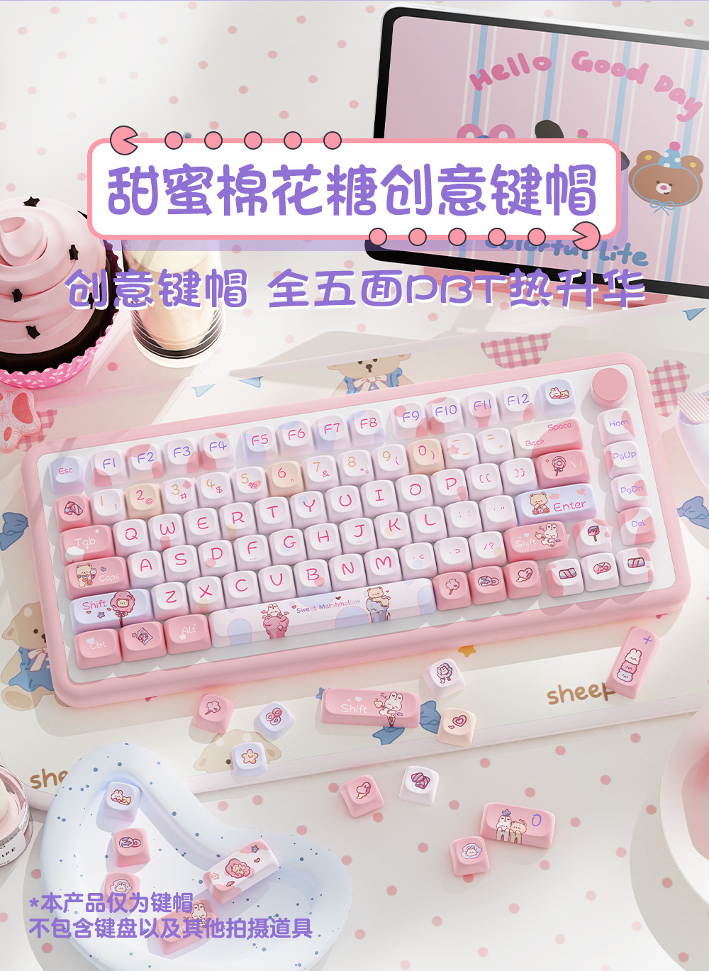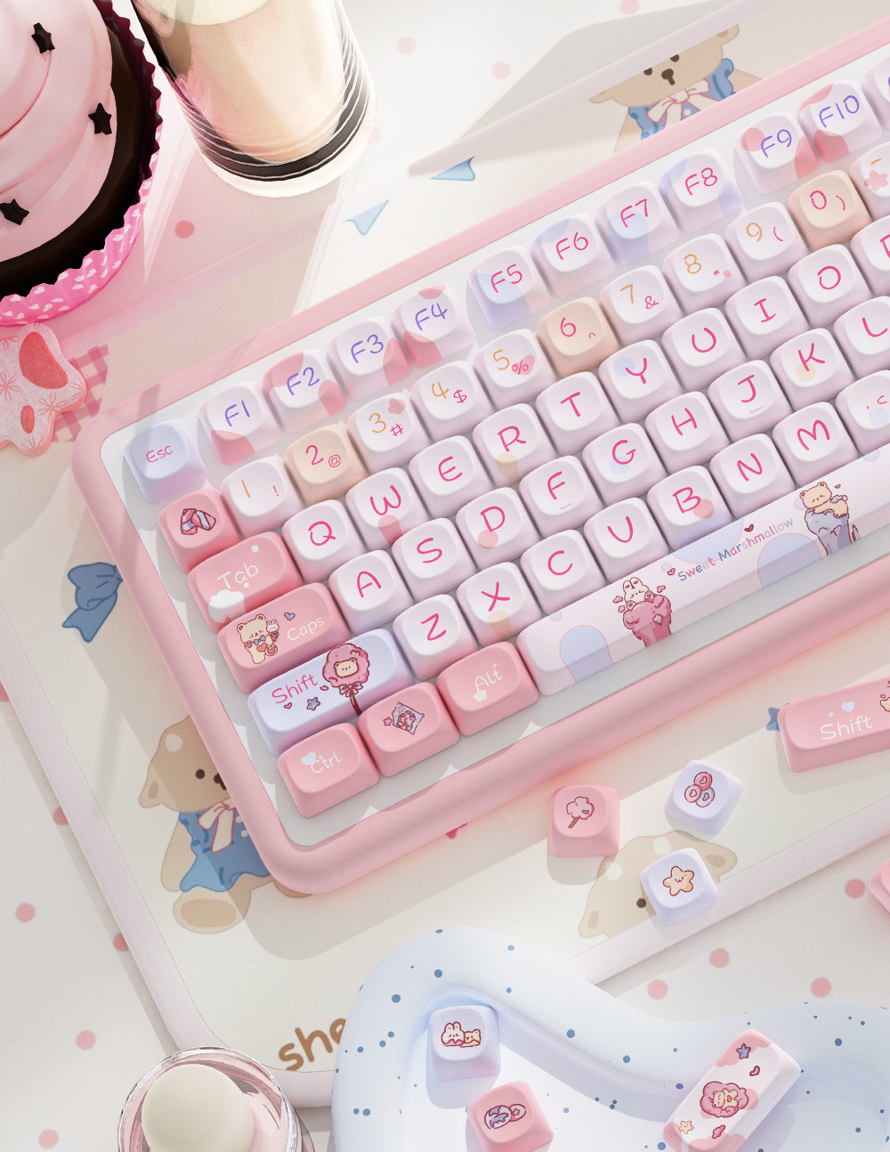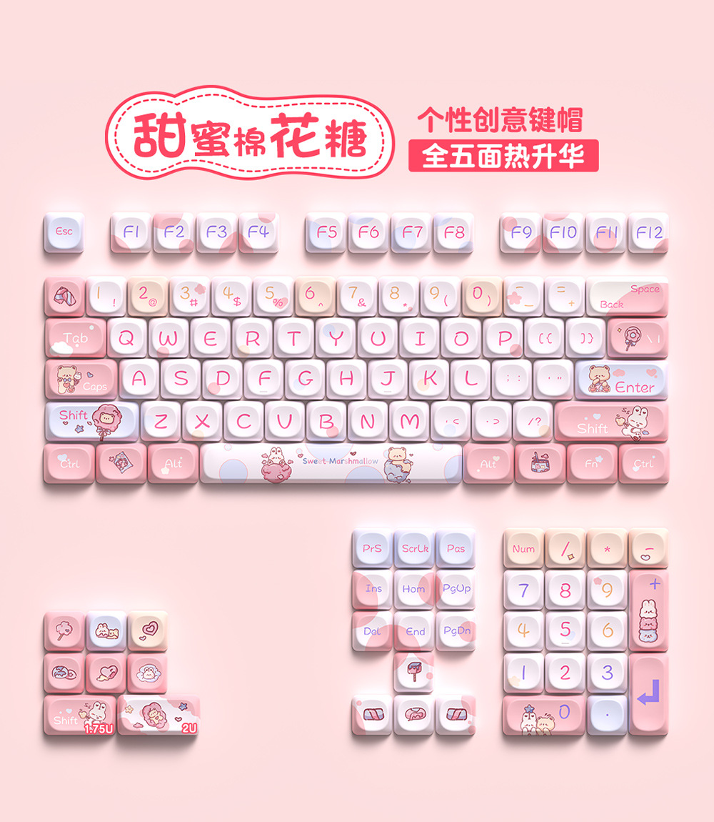 달콤한 마시멜로 오리지널 키캡 5 면 승화 모아 매우 귀여운 성격 적응 형 기계 키보드 캡