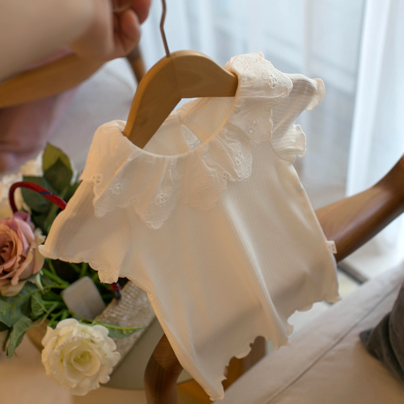 2024 년 여름 소녀 레이스 칼라 반팔 티셔츠 재킷 J773 의 세대