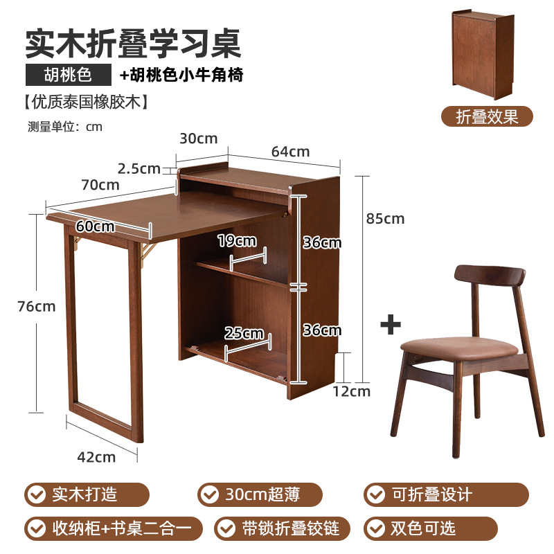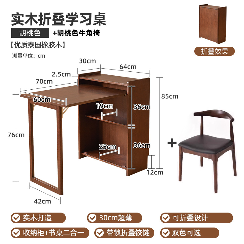 • ☆ ★ 원목 접이식 책상 호두색상 + 대형 소뿔 의자 호두색상 ☆ ★