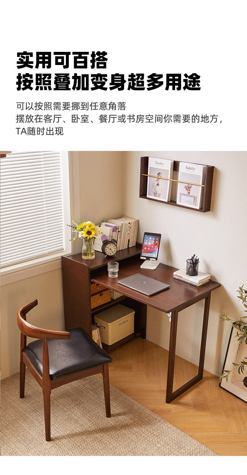 원목 접이식 책상과 책장이 하나로 된 소형 가정용 컴퓨터 책상, 학생 및 어린이용 서재 코너 학습 책상