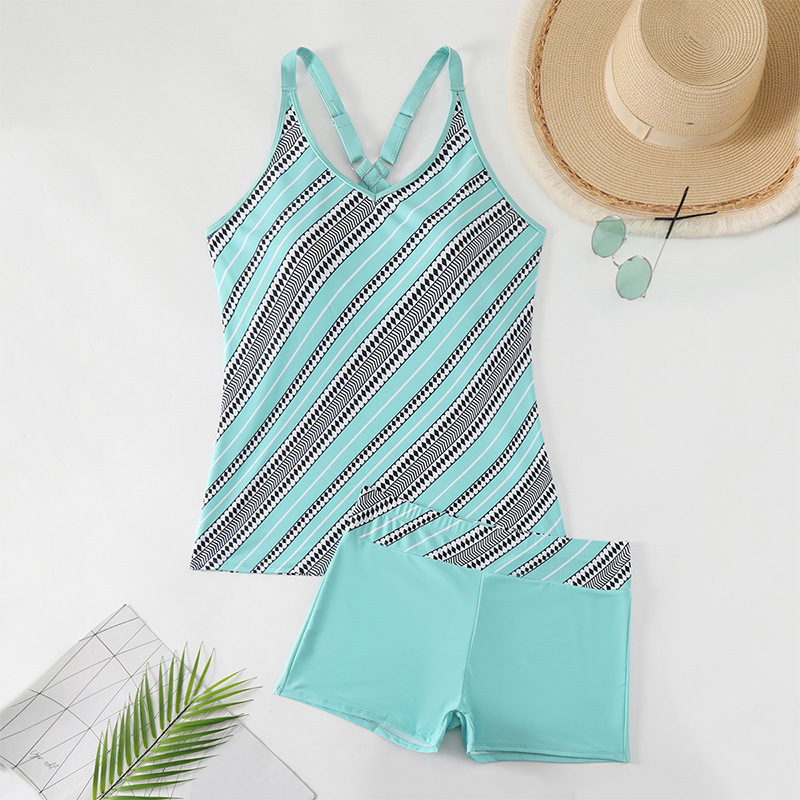 Huludao 수영복 2024 새로운 아마존 유럽과 미국의 스트라이프 스트랩 플러스 사이즈 수영복 여성 섹시한 통통녀 비키니