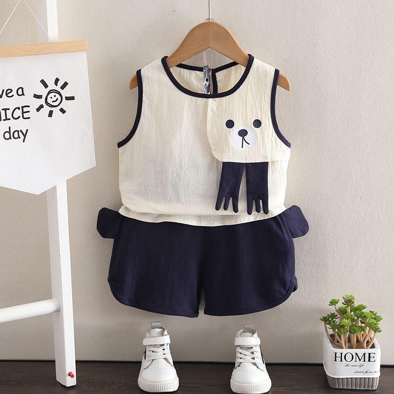 남학생 조끼 세트 여름 새 어린이 아기 민소매 유행 어린이 여름 옷 얇은면과 리넨 투피스 세트