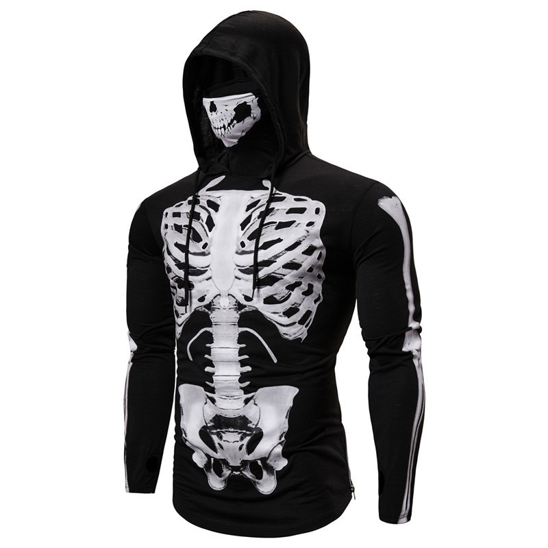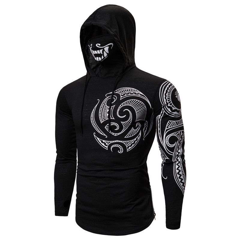 2024 아마존 스트레치 남성용 닌자 세트 긴 소매 티셔츠 스컬 마스크 후드 피트니스 긴 소매 컬렉션스토어 가기
