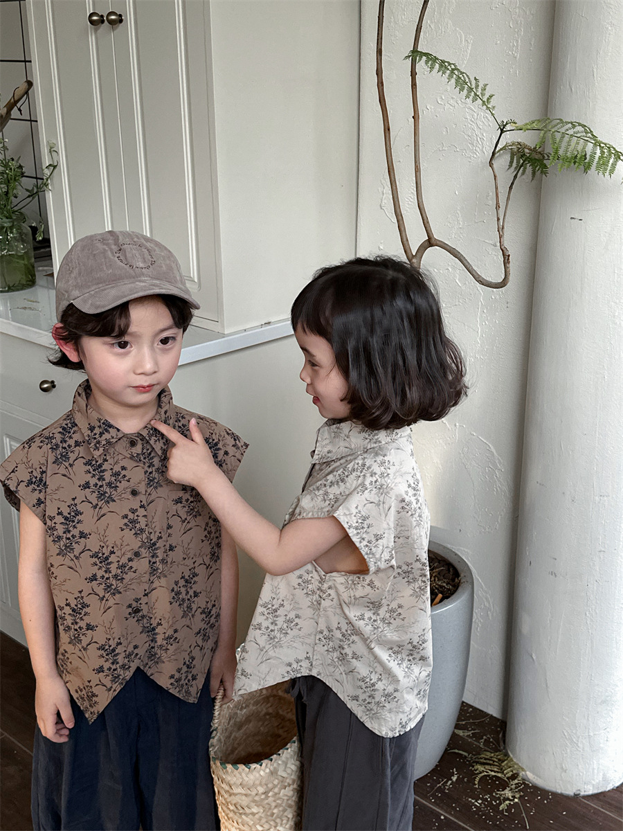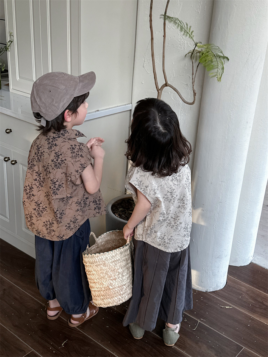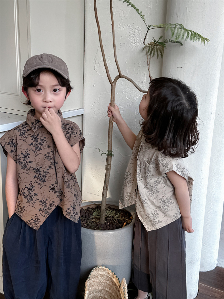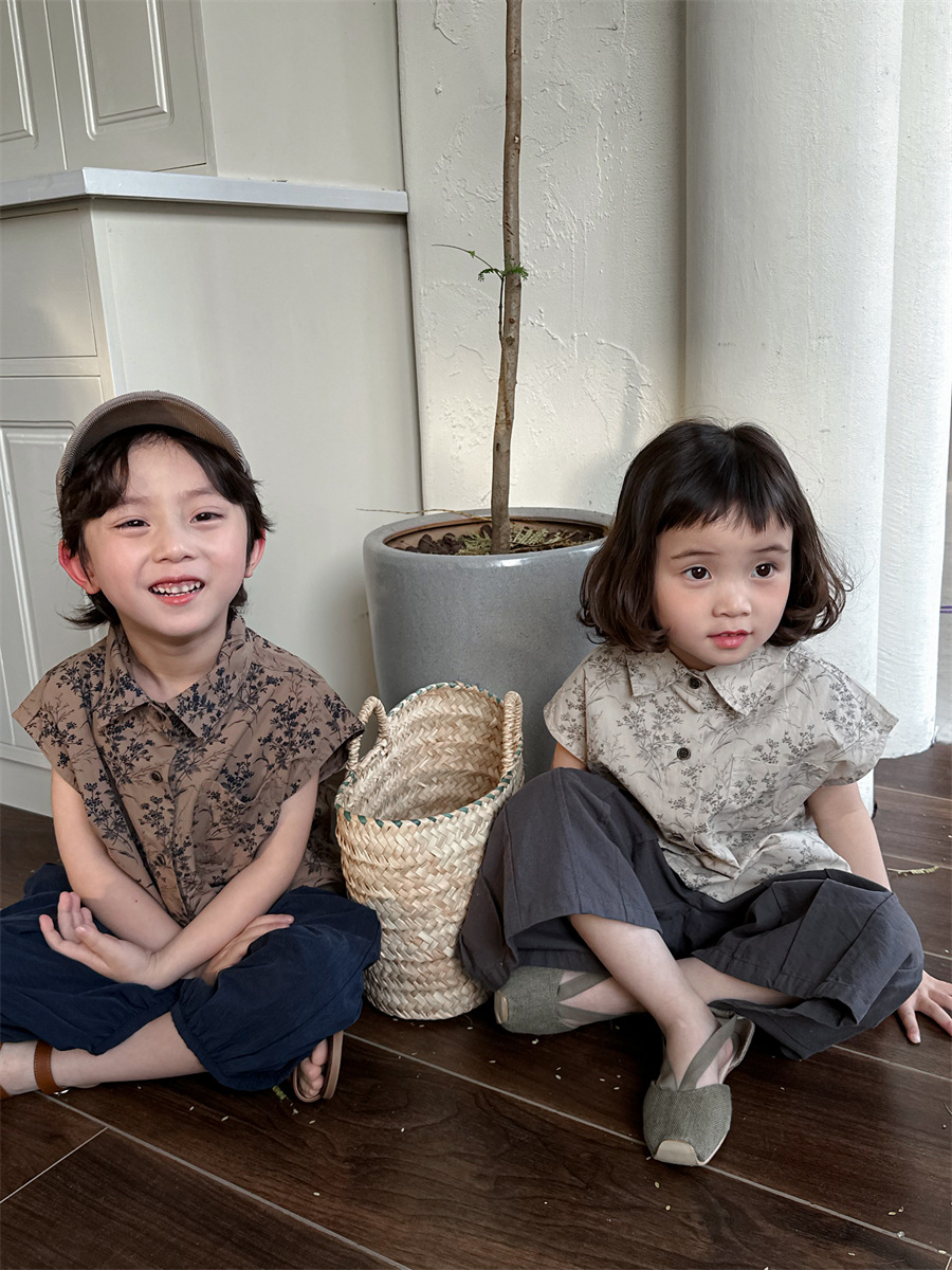 Jiaye 어린이 제품 2025 어린이 여름 새로운 꽃 반팔 셔츠 남성과 여성 아기 숲 복고풍 반팔 셔츠스토어 가기
