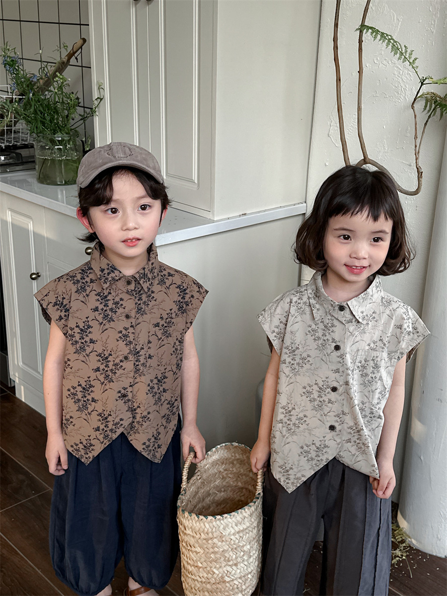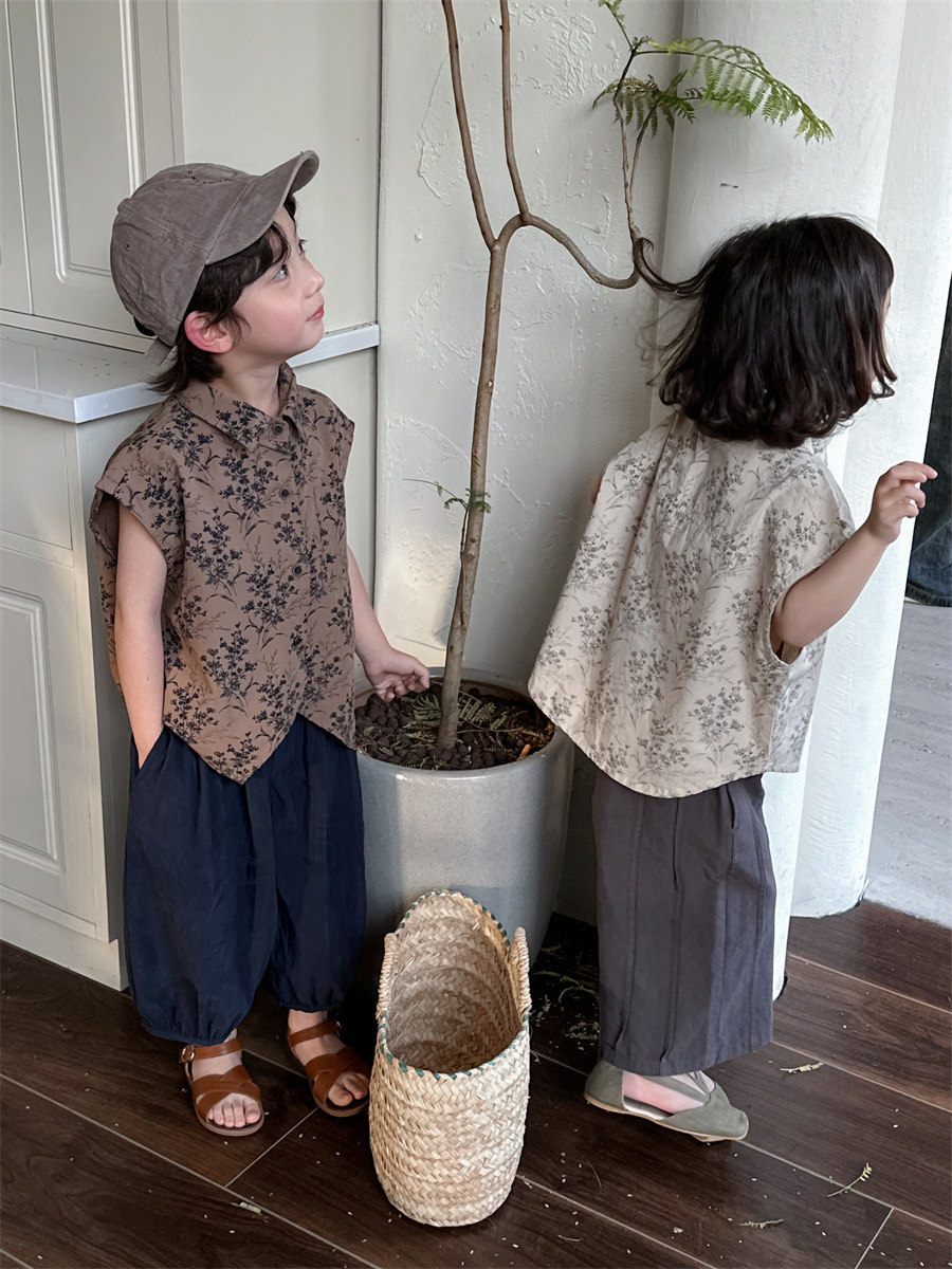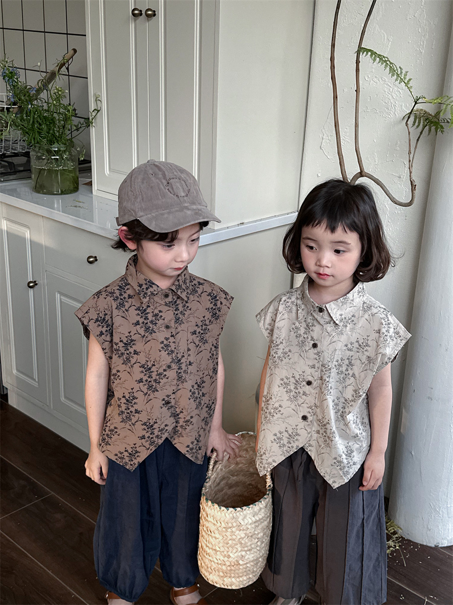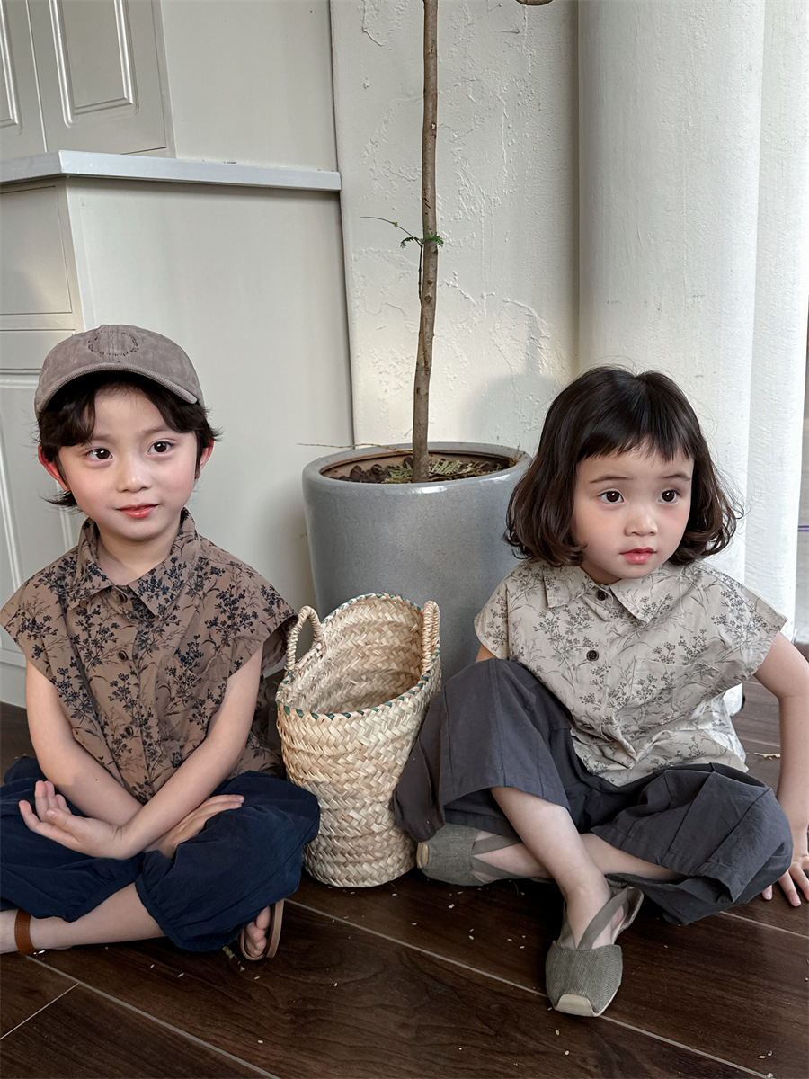 Jiaye 어린이 제품 2025 어린이 여름 새로운 꽃 반팔 셔츠 남성과 여성 아기 숲 복고풍 반팔 셔츠스토어 가기