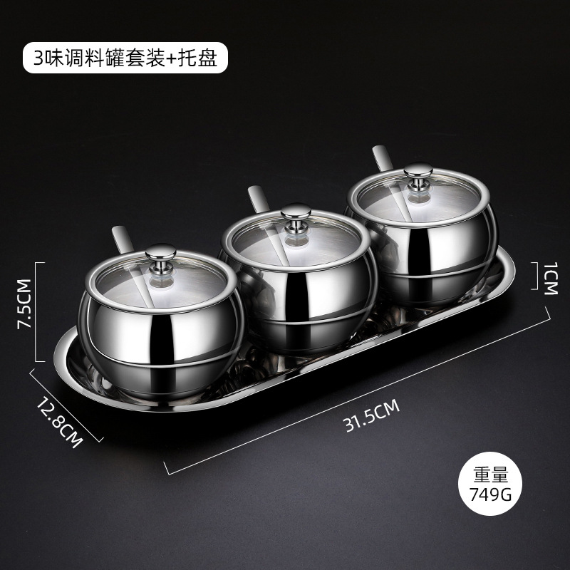 304 스테인레스 스틸 조미료 항아리 주방 조합 세트 가정용 소금 항아리 후추 조미료 상자 숟가락스토어 가기