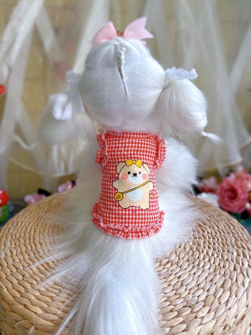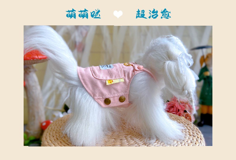 비숑 테디 강아지 포메라니안 강아지 옷 봄 가을 얇은 스타일 리드줄 연결 가능 데님 소형견 귀여운 애완동물 외출복스토어 가기