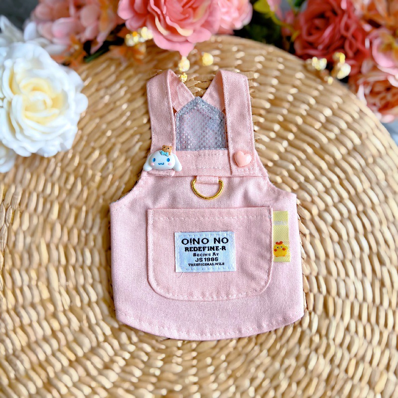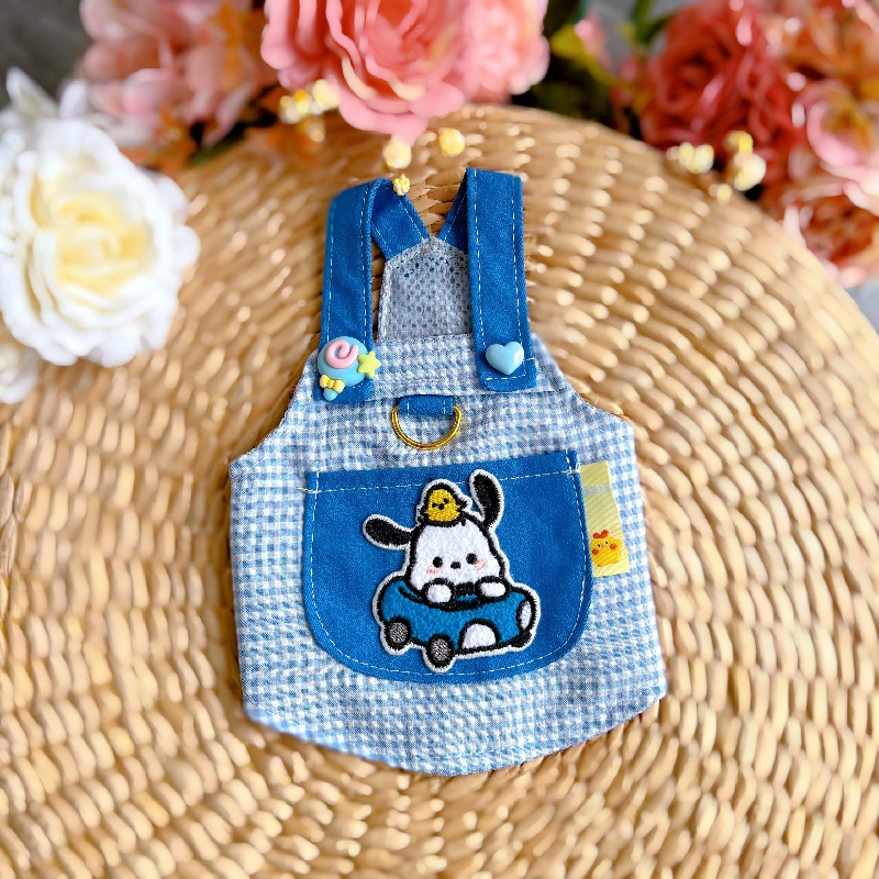 비숑 테디 강아지 포메라니안 강아지 옷 봄 가을 얇은 스타일 리드줄 연결 가능 데님 소형견 귀여운 애완동물 외출복