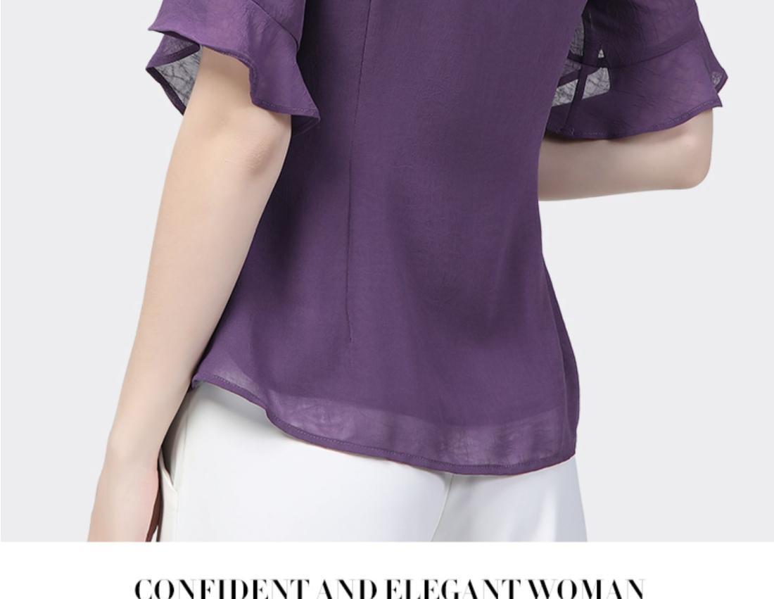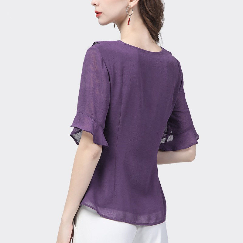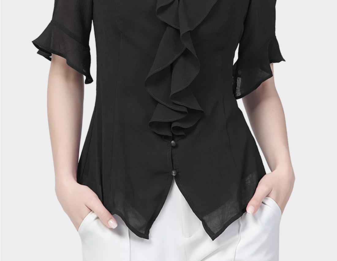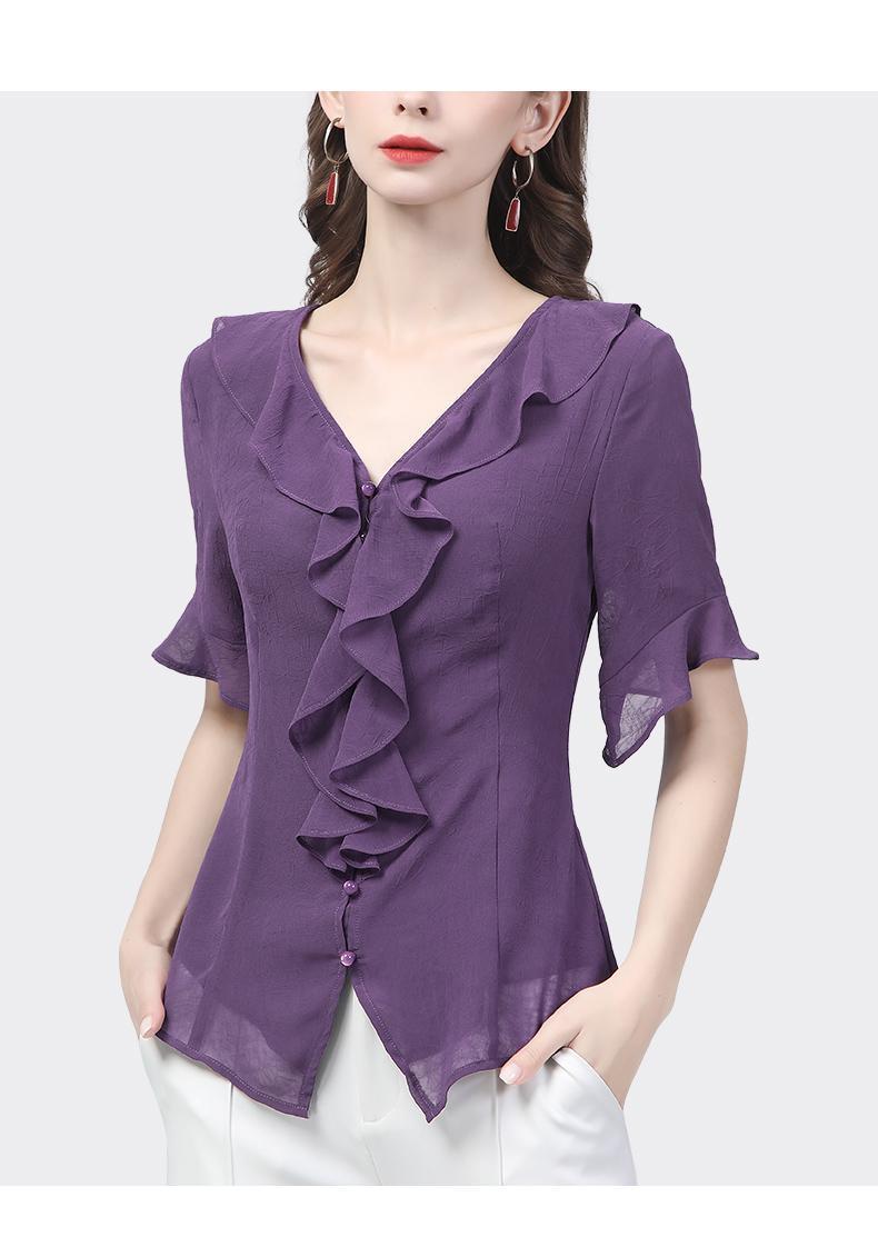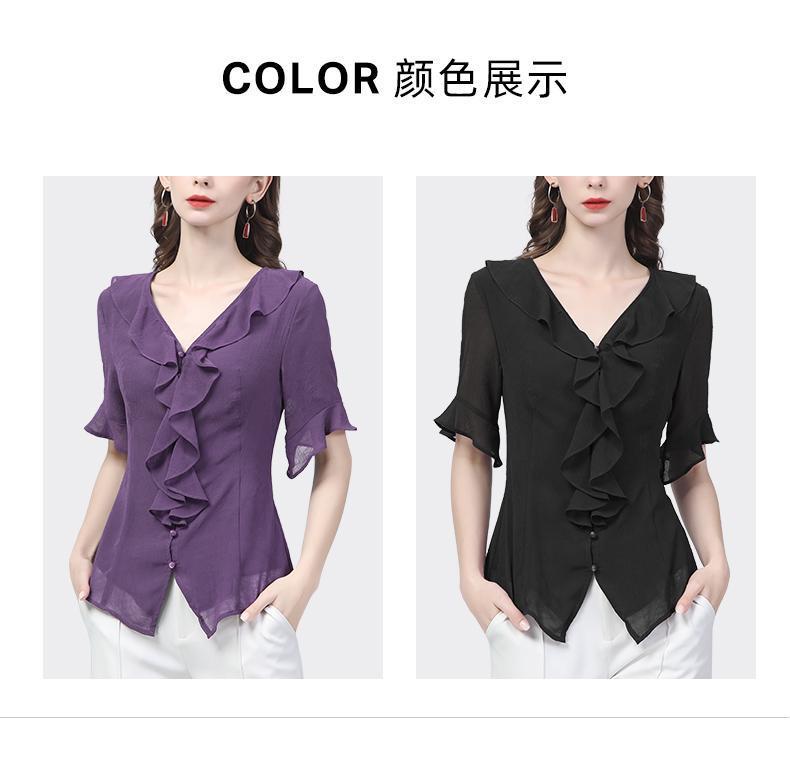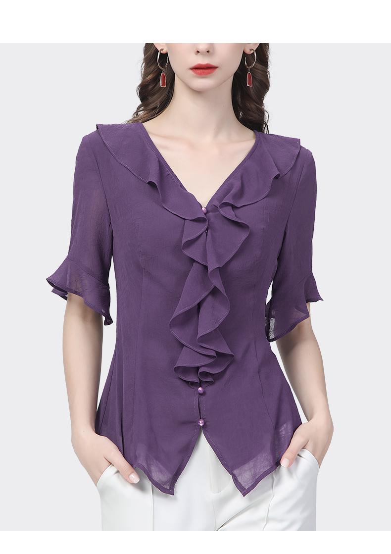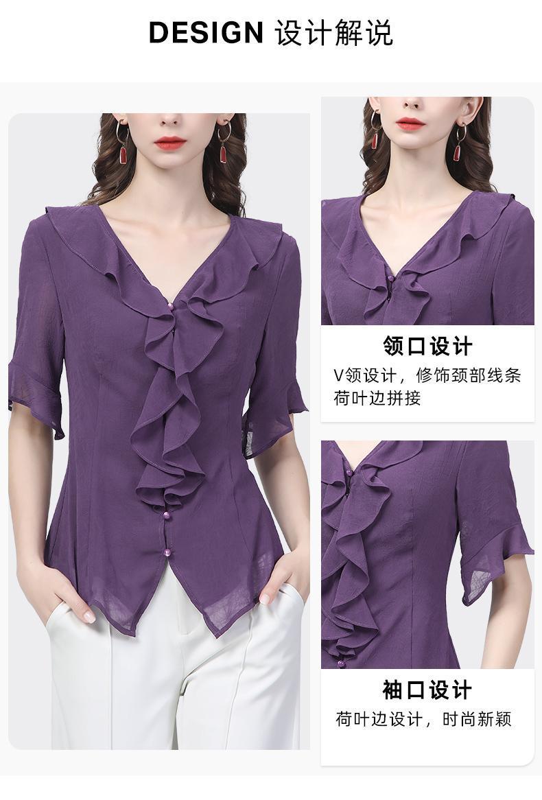 시폰 셔츠 디자인 센스 러플 반팔 셔츠 여성용 V 넥 패션 세련된 작은 셔츠 슬림 2024 여름 새로운스토어 가기