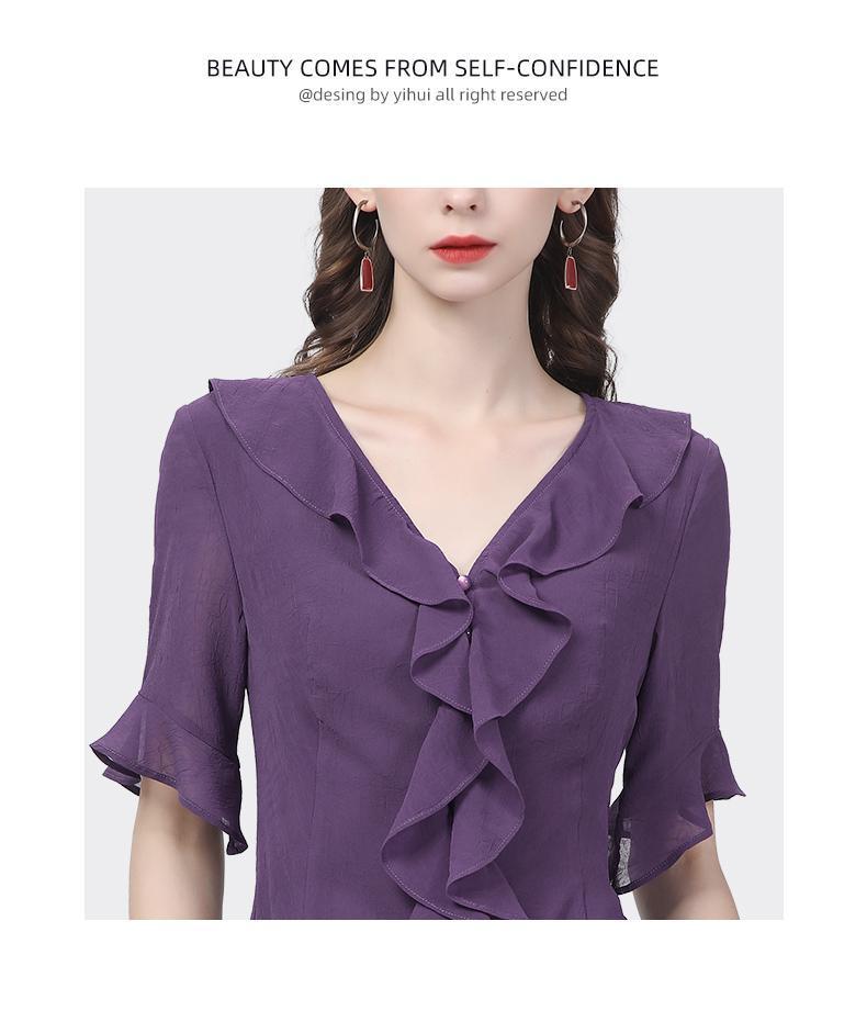 시폰 셔츠 디자인 센스 러플 반팔 셔츠 여성용 V 넥 패션 세련된 작은 셔츠 슬림 2024 여름 새로운