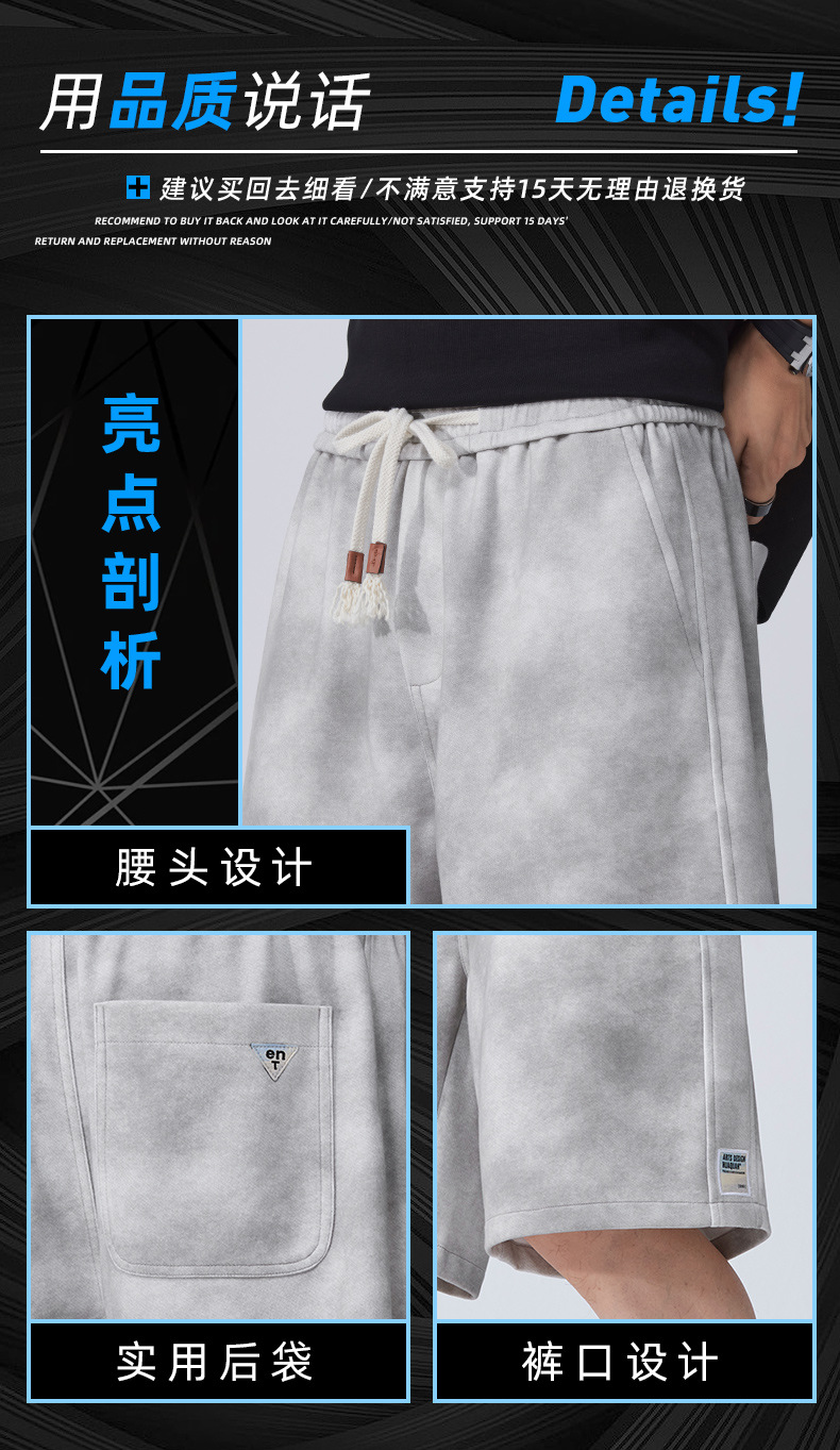 더러운 캐주얼 반바지 남자 여름 십대 하이 스트리트 바이브 스타일 캐주얼 디자인 센스 루즈 스트레이트 바지