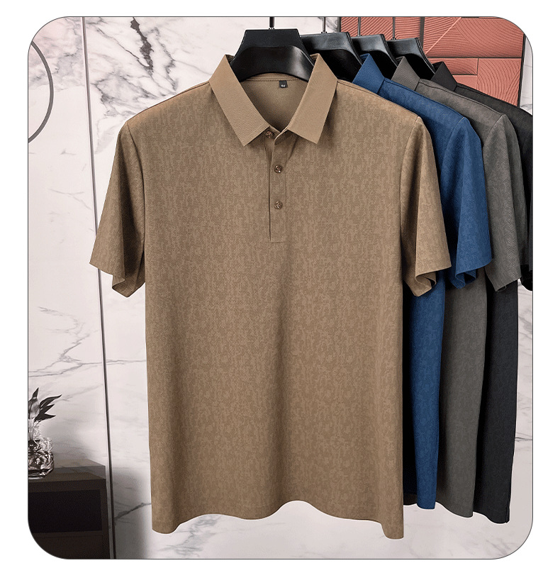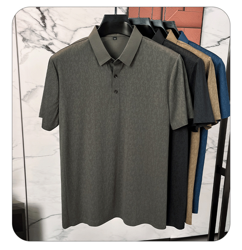 하이 엔드 아이스 실크 반팔 티셔츠 남성 엘 비즈니스 캐주얼 여름 유행 브랜드 위장 비 마킹 폴로 셔츠 반소매 탑