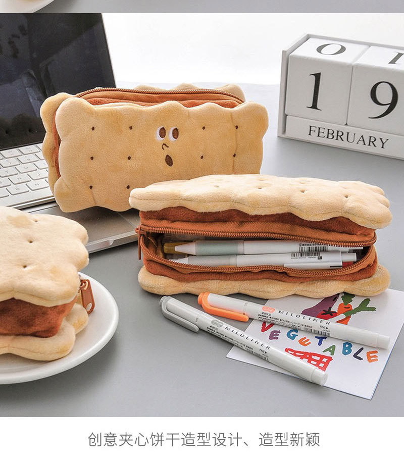 봉제 보관 가방 땅콩 비스킷 연필 가방 창조적 인 문구 메이크업 핸드 백 학생 대용량 연필 상자 도매스토어 가기