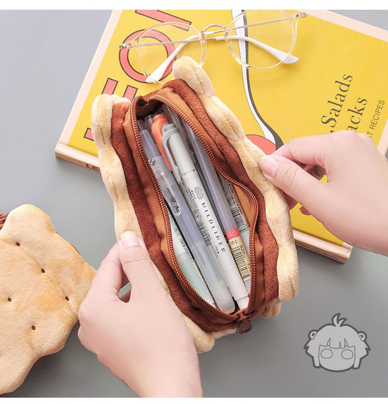 봉제 보관 가방 땅콩 비스킷 연필 가방 창조적 인 문구 메이크업 핸드 백 학생 대용량 연필 상자 도매