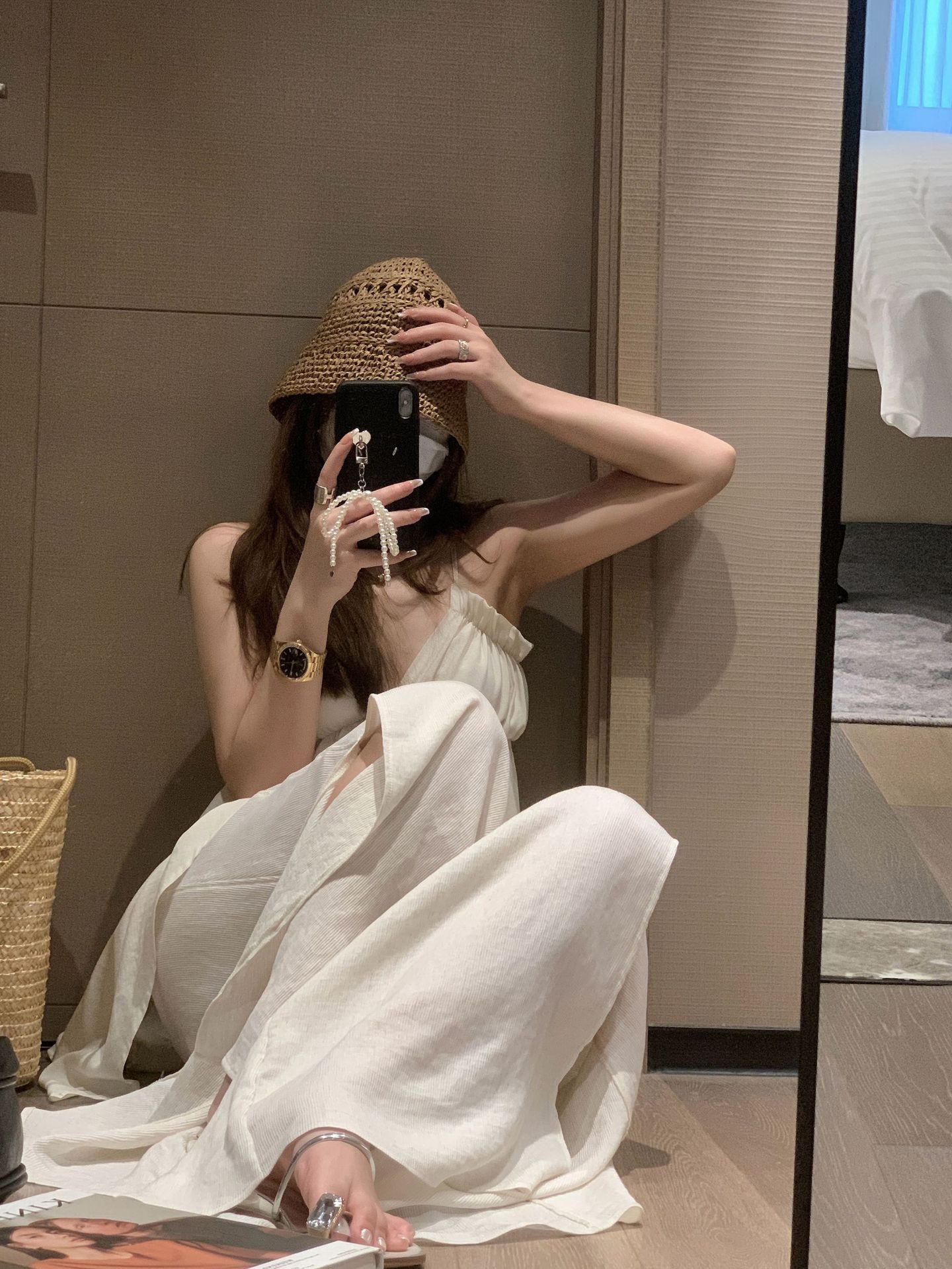 也不用担心走光噢。腰身两侧扣子装饰调节,