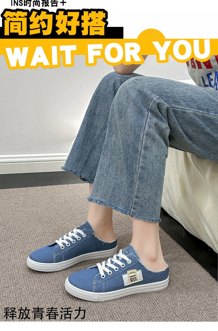 하프 드래그 통기성 캔버스 신발 여성 2024 년 새 여름 작은 흰색 신발 한국 패션 캐주얼 스포츠 플랫 슈즈스토어 가기