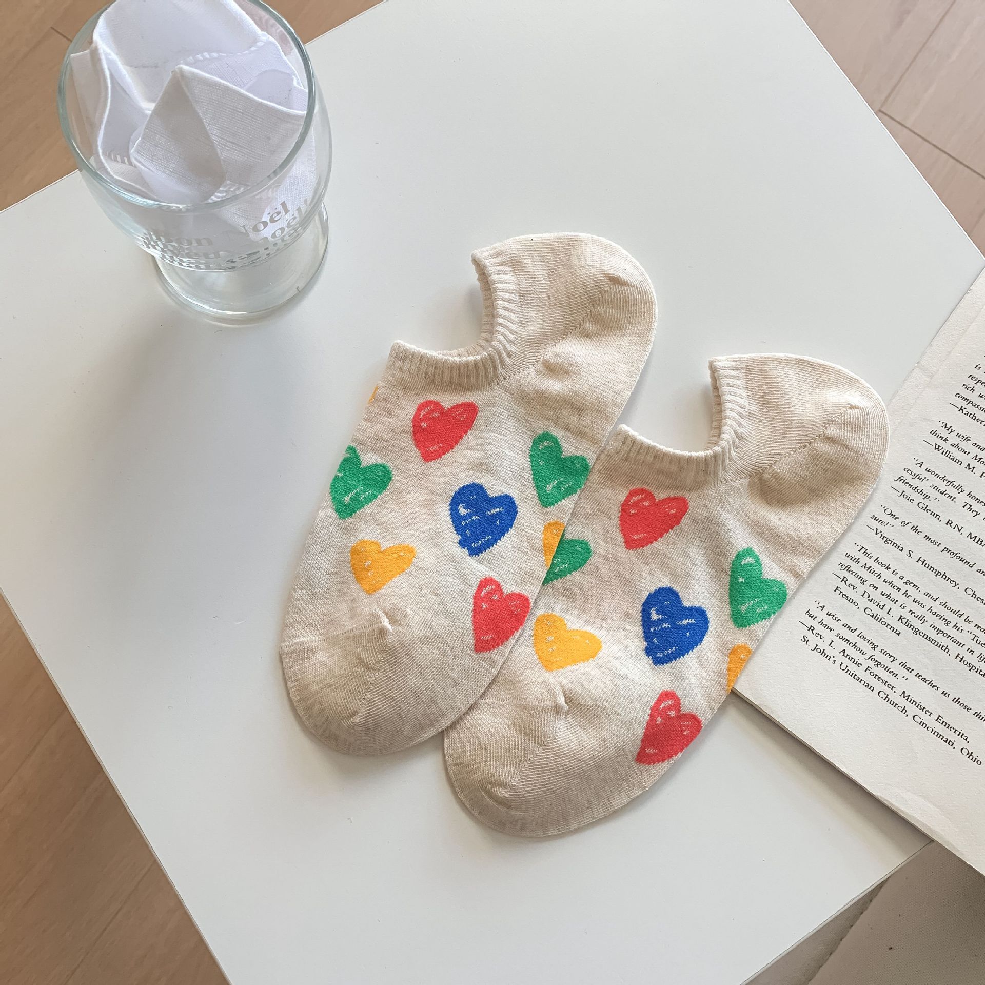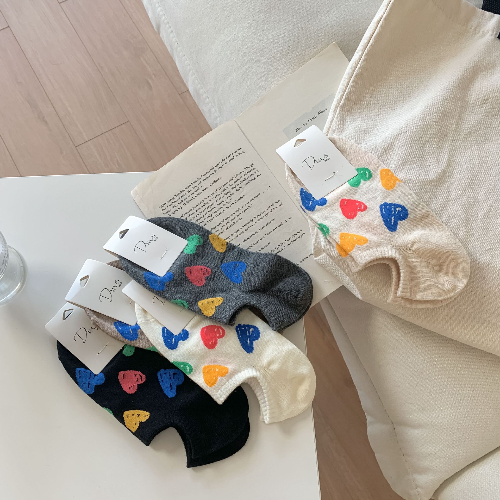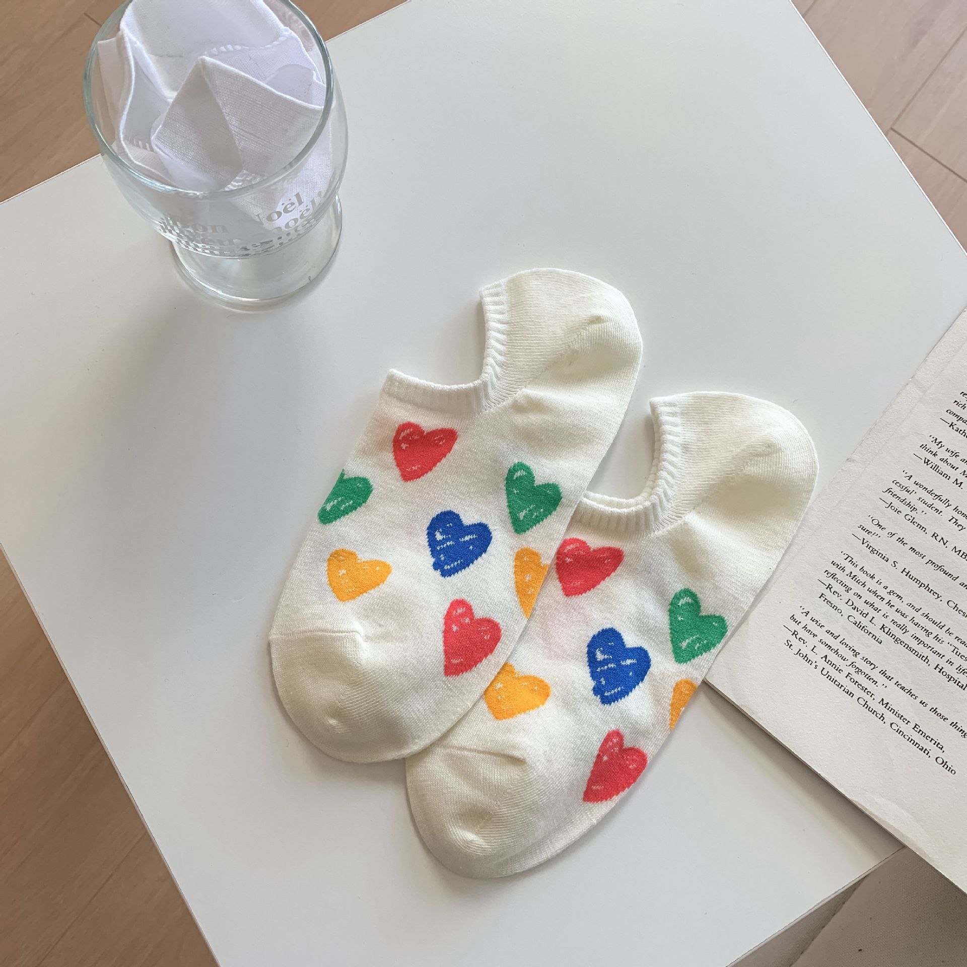 봄과 여름 새로운 여성 양말 컬러 낙서 사랑 보이지 않는 보트 양말 귀여운 소녀 안티 드롭 양말 얇은 보트 양말