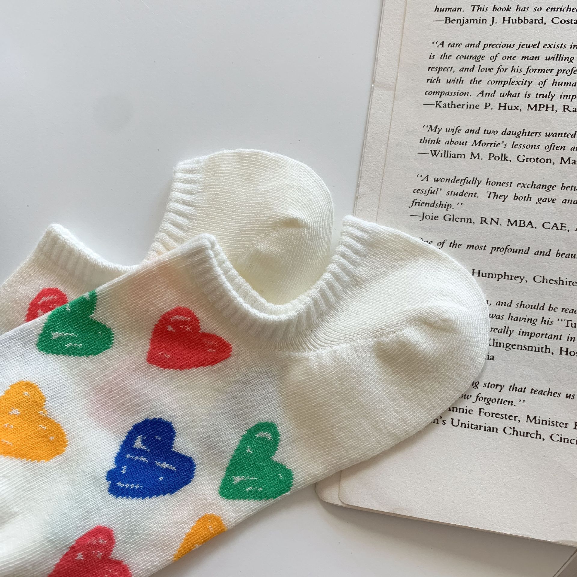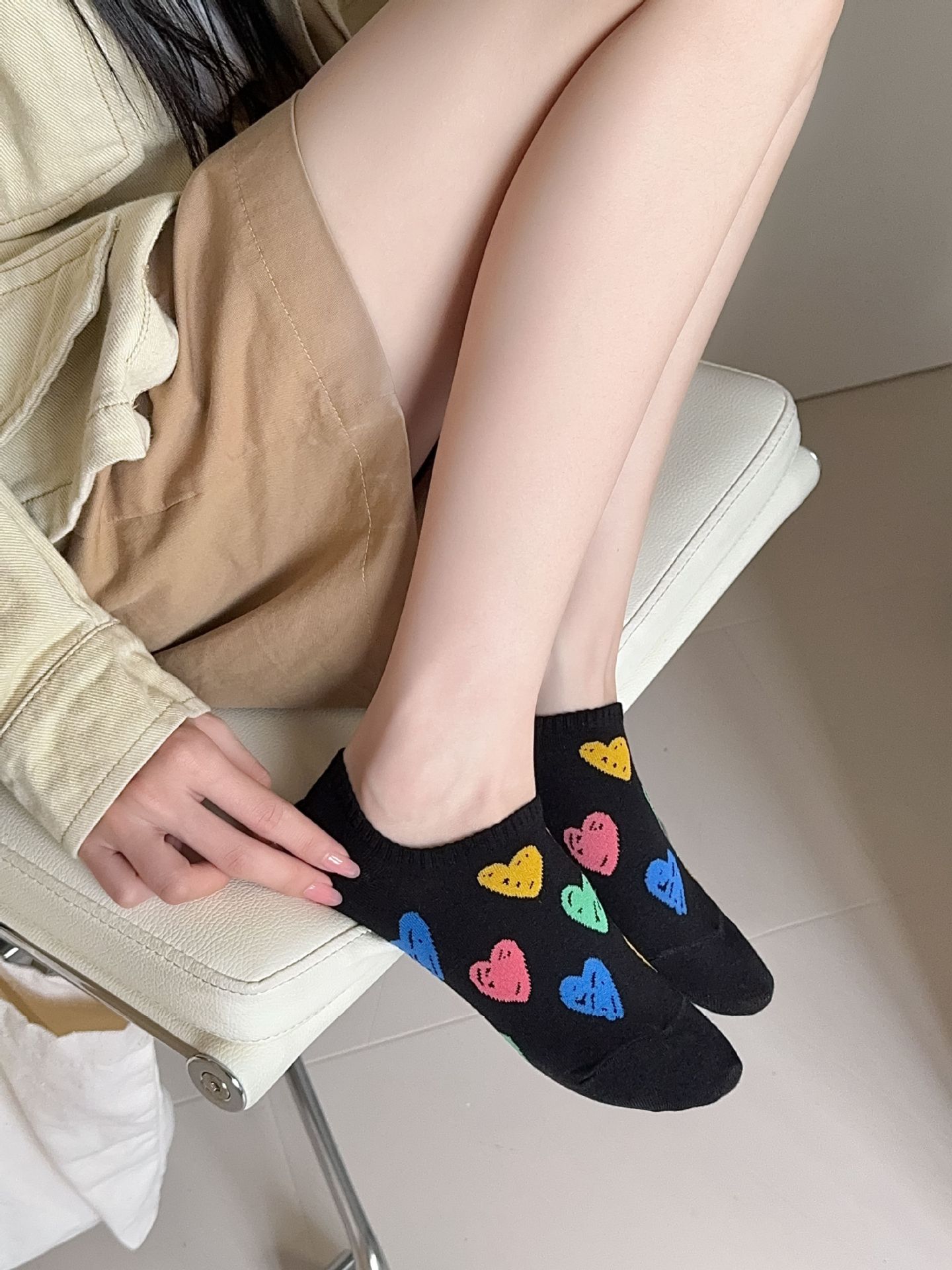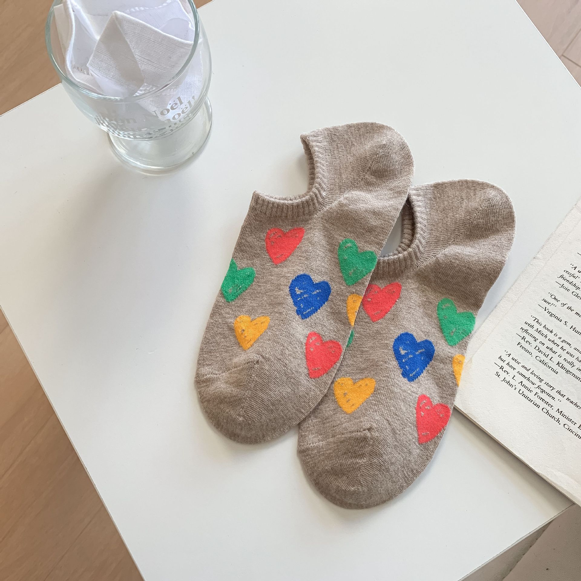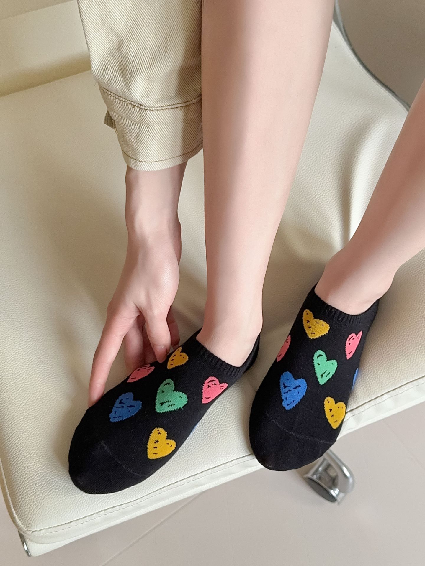봄과 여름 새로운 여성 양말 컬러 낙서 사랑 보이지 않는 보트 양말 귀여운 소녀 안티 드롭 양말 얇은 보트 양말