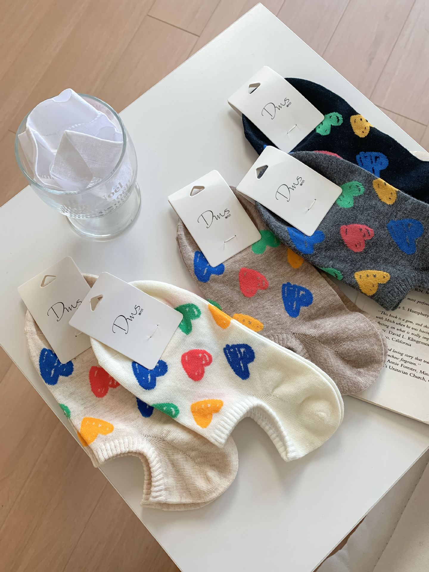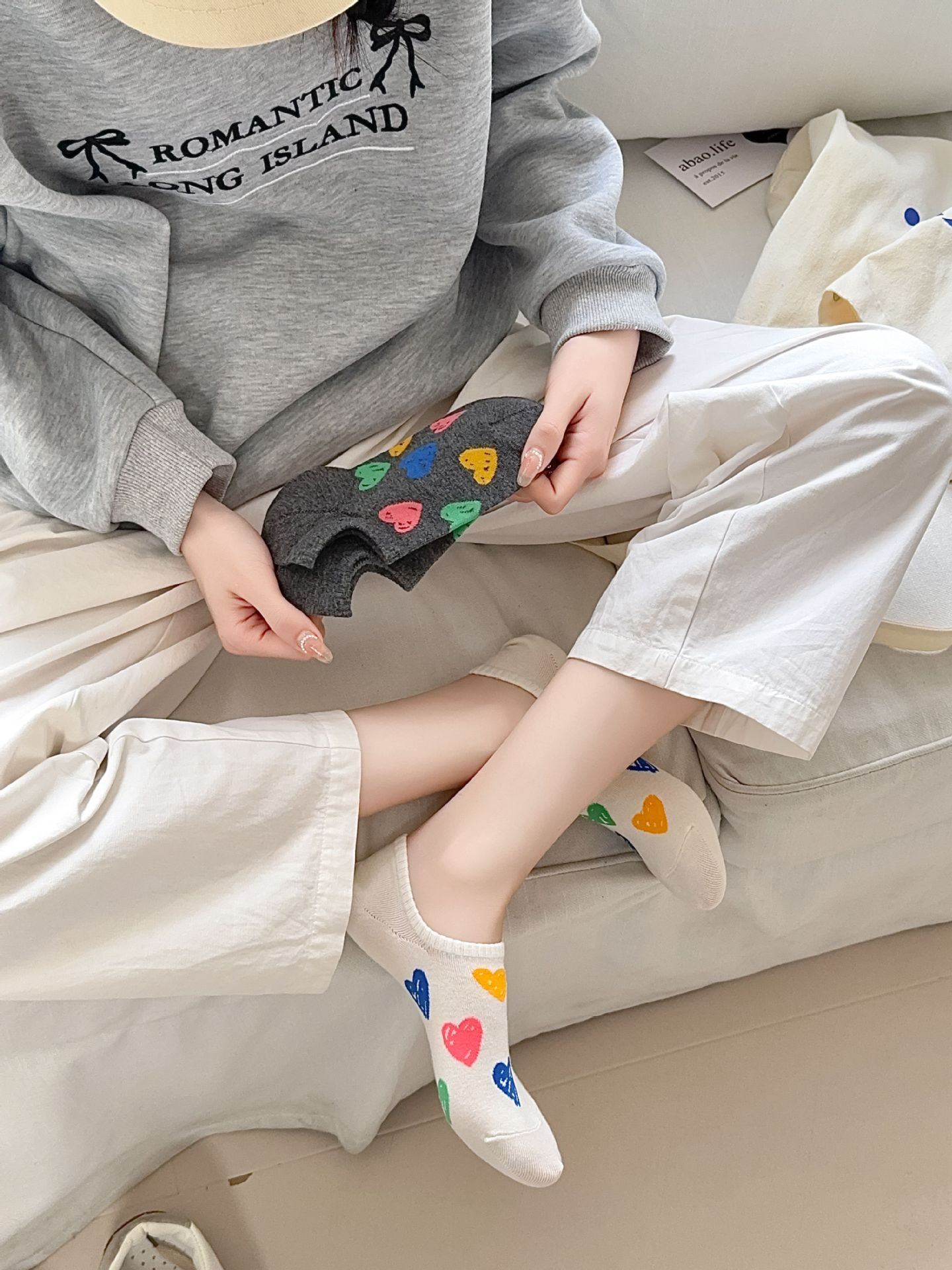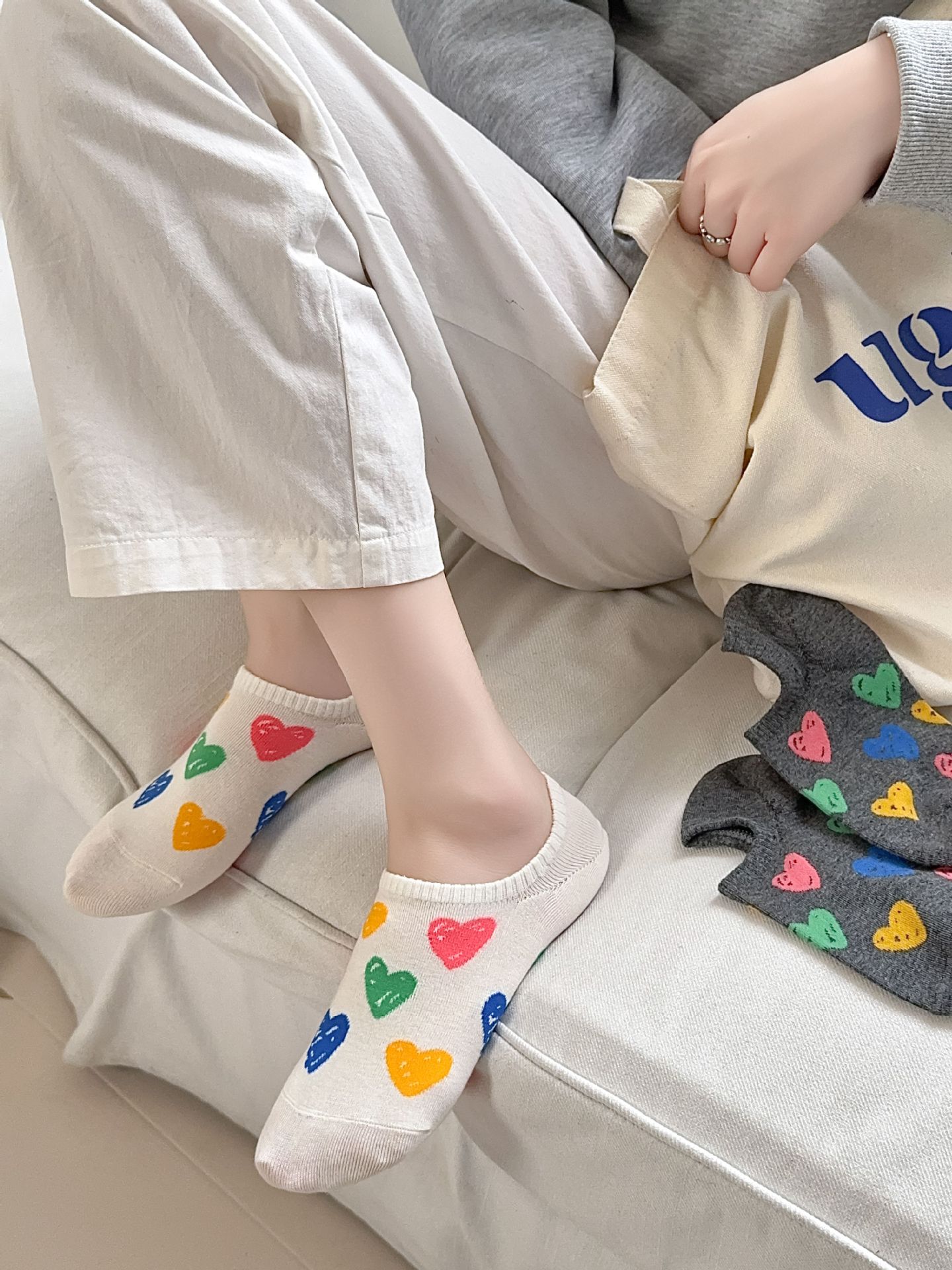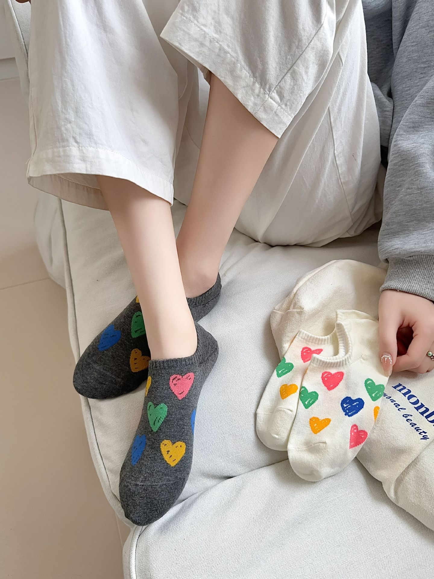 봄과 여름 새로운 여성 양말 컬러 낙서 사랑 보이지 않는 보트 양말 귀여운 소녀 안티 드롭 양말 얇은 보트 양말스토어 가기