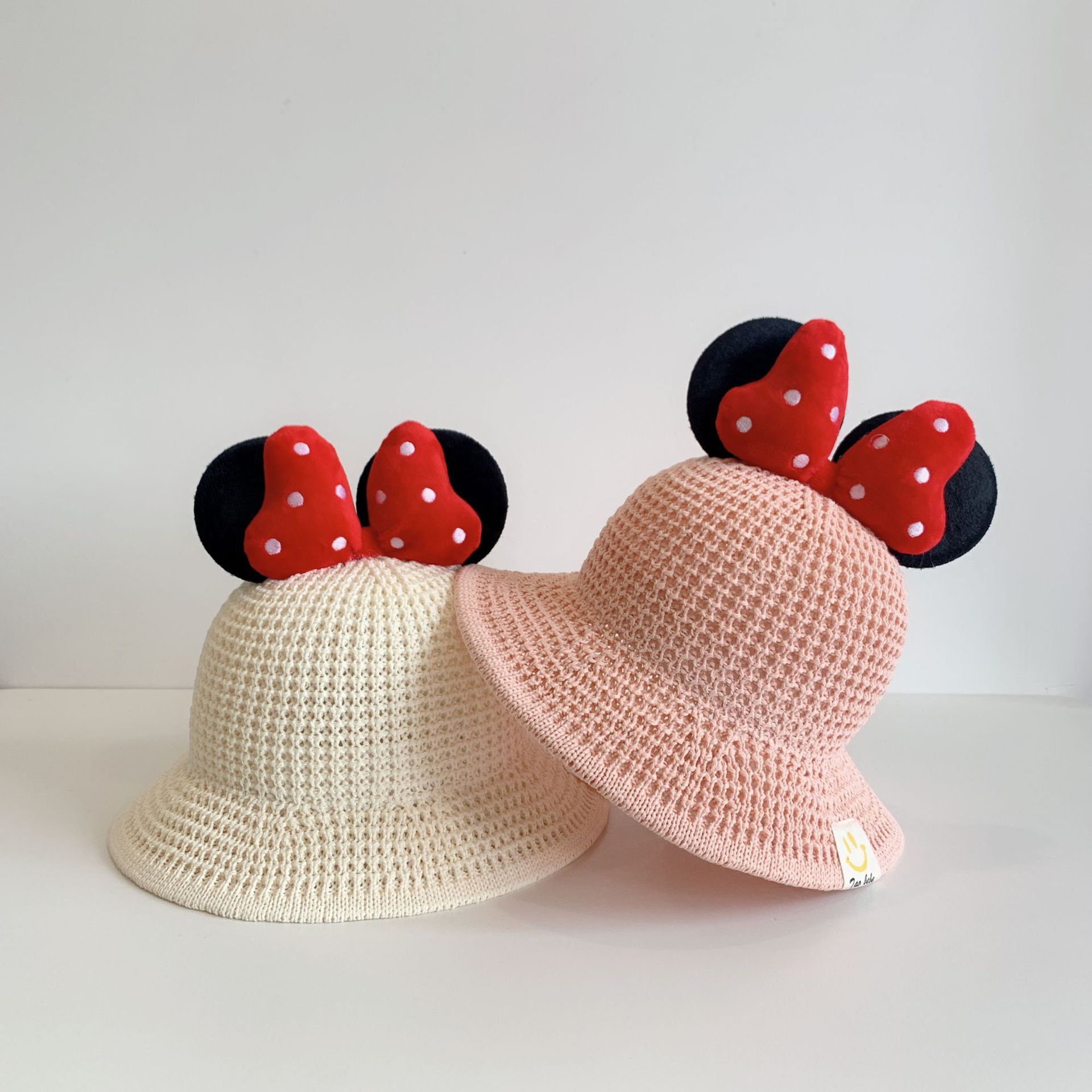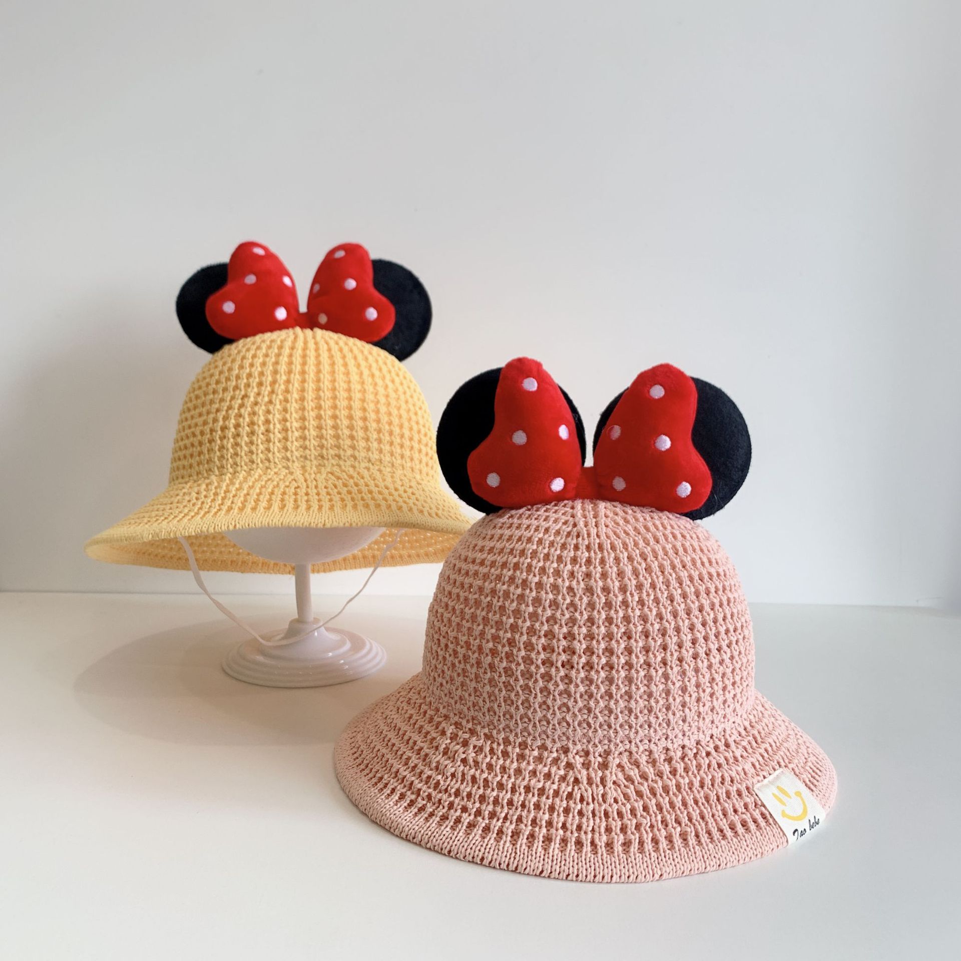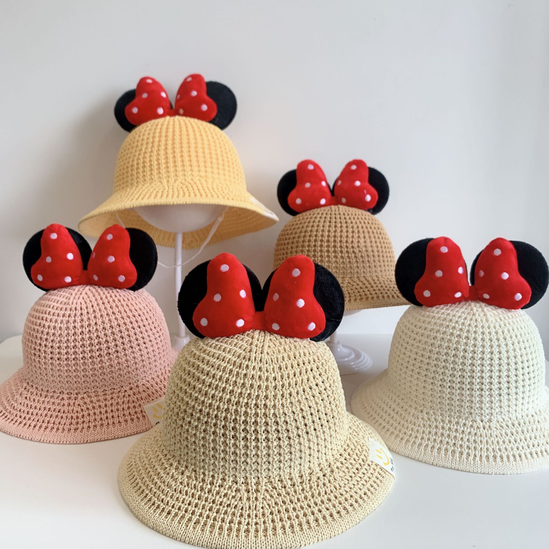 새로운 여름 어린이 태양 모자 귀여운 미키 큰 활 밀짚 모자 도매 야외 여행 태양 모자