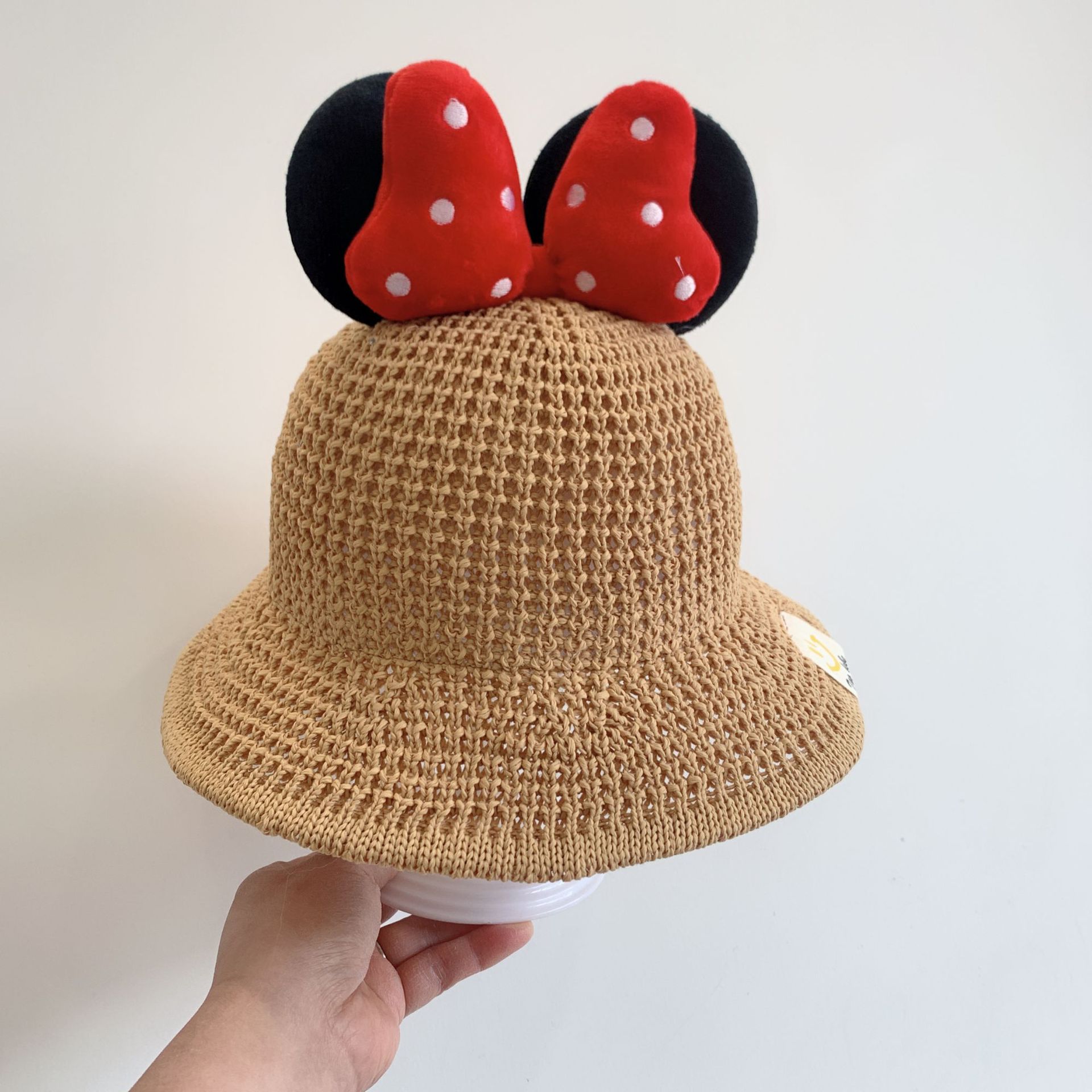 새로운 여름 어린이 태양 모자 귀여운 미키 큰 활 밀짚 모자 도매 야외 여행 태양 모자스토어 가기