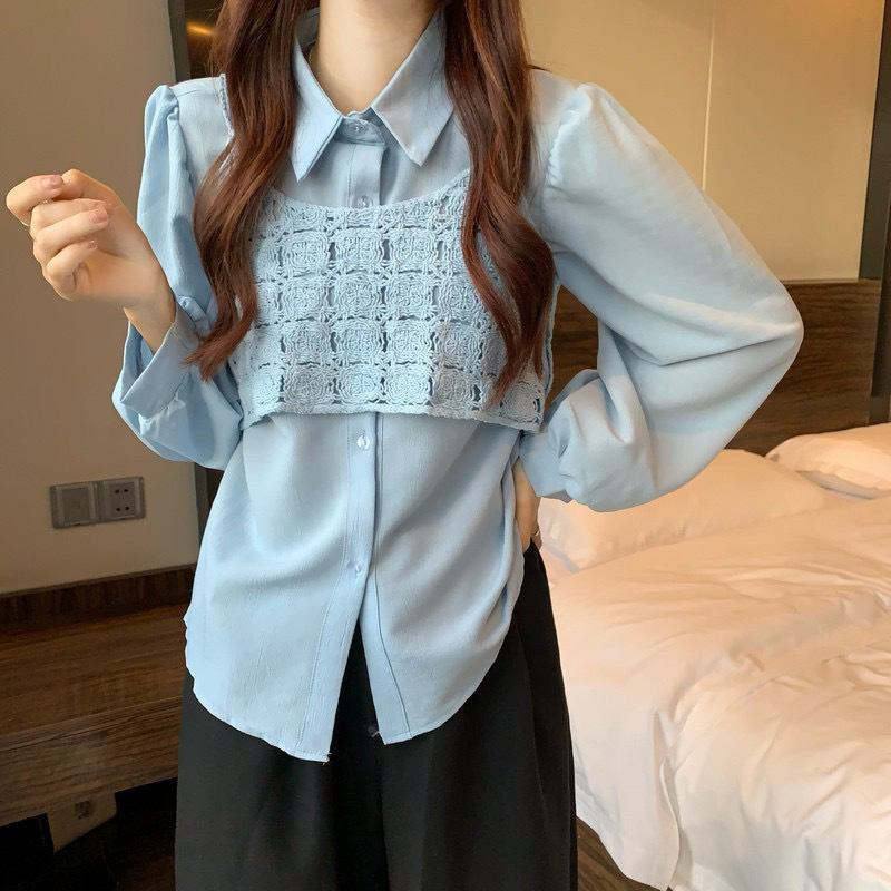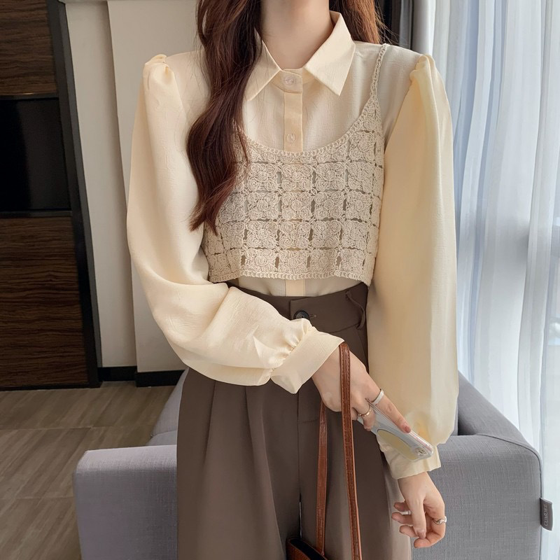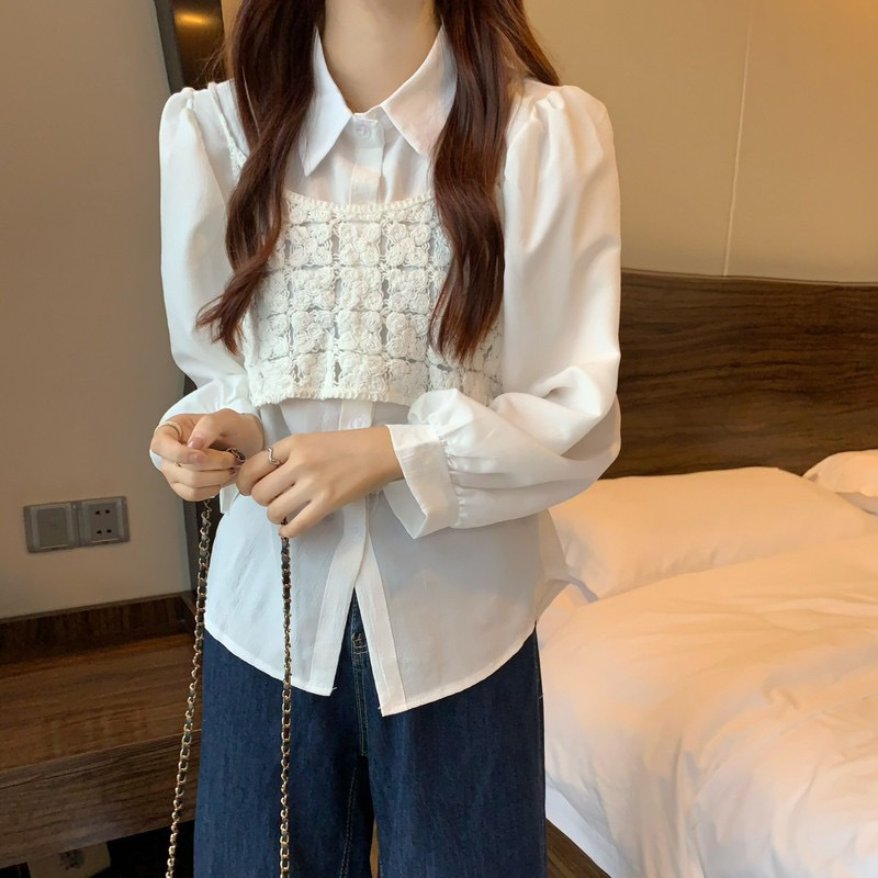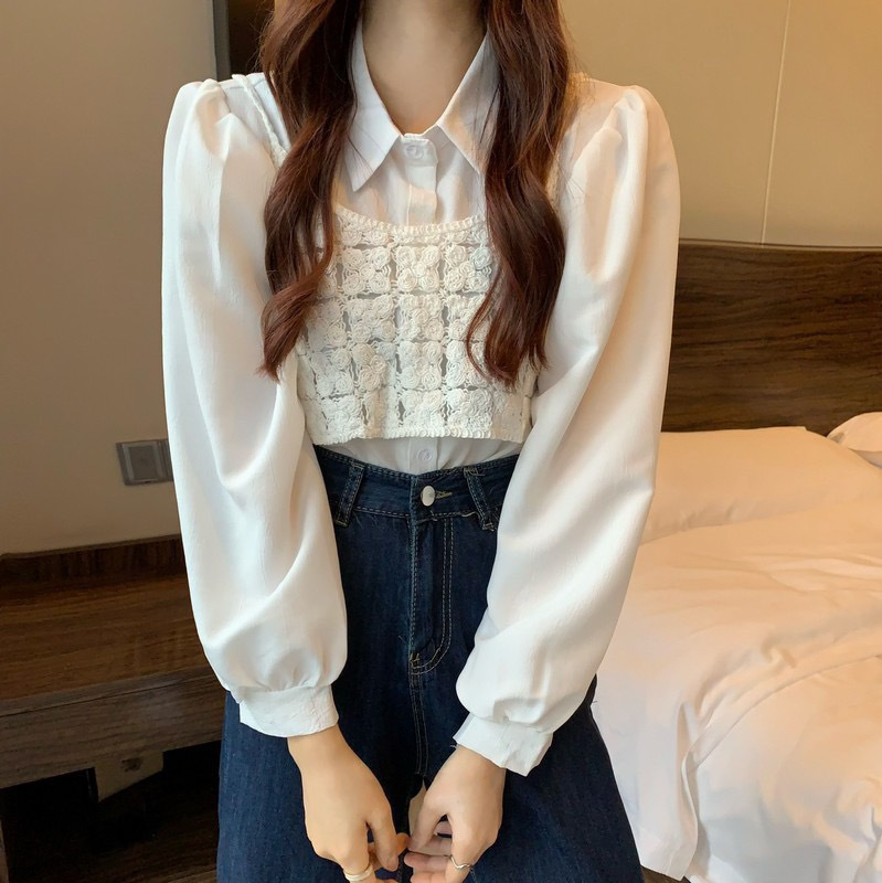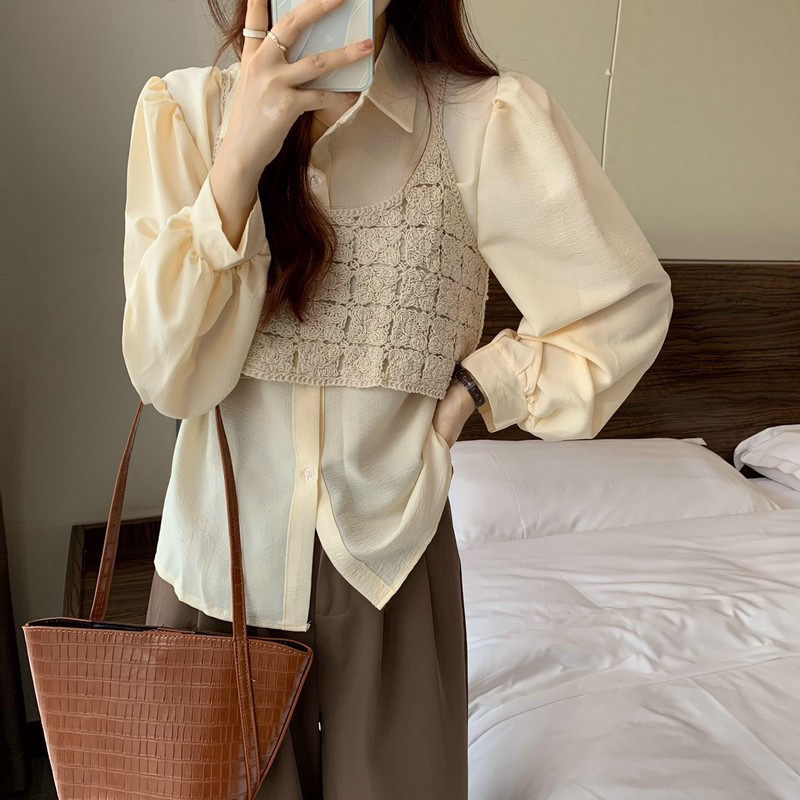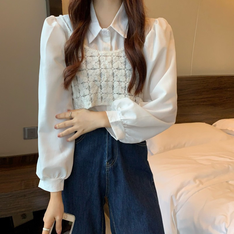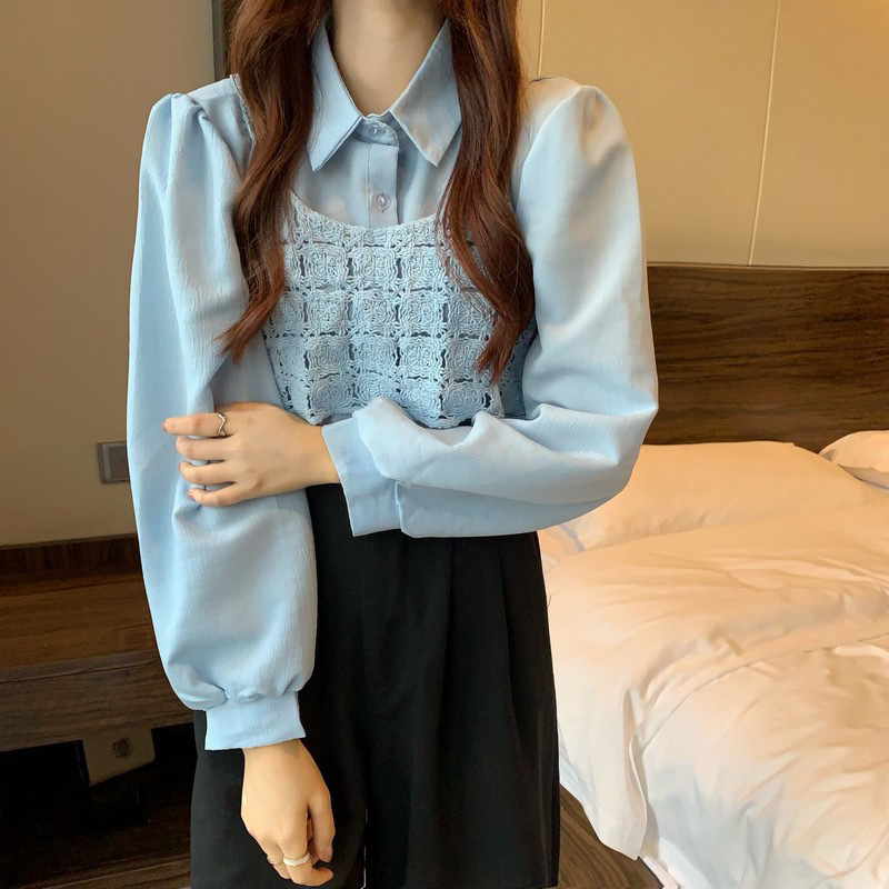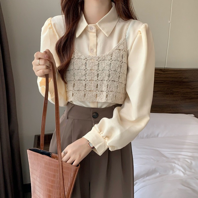 봄 2 피스 세련된 짧은 버튼 카미솔 플라잉 슬리브 대학 스타일 탑 여성스토어 가기
