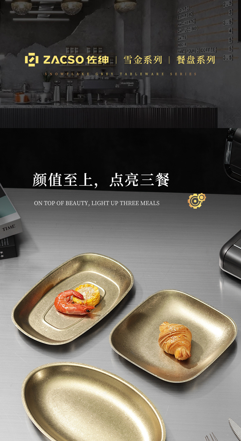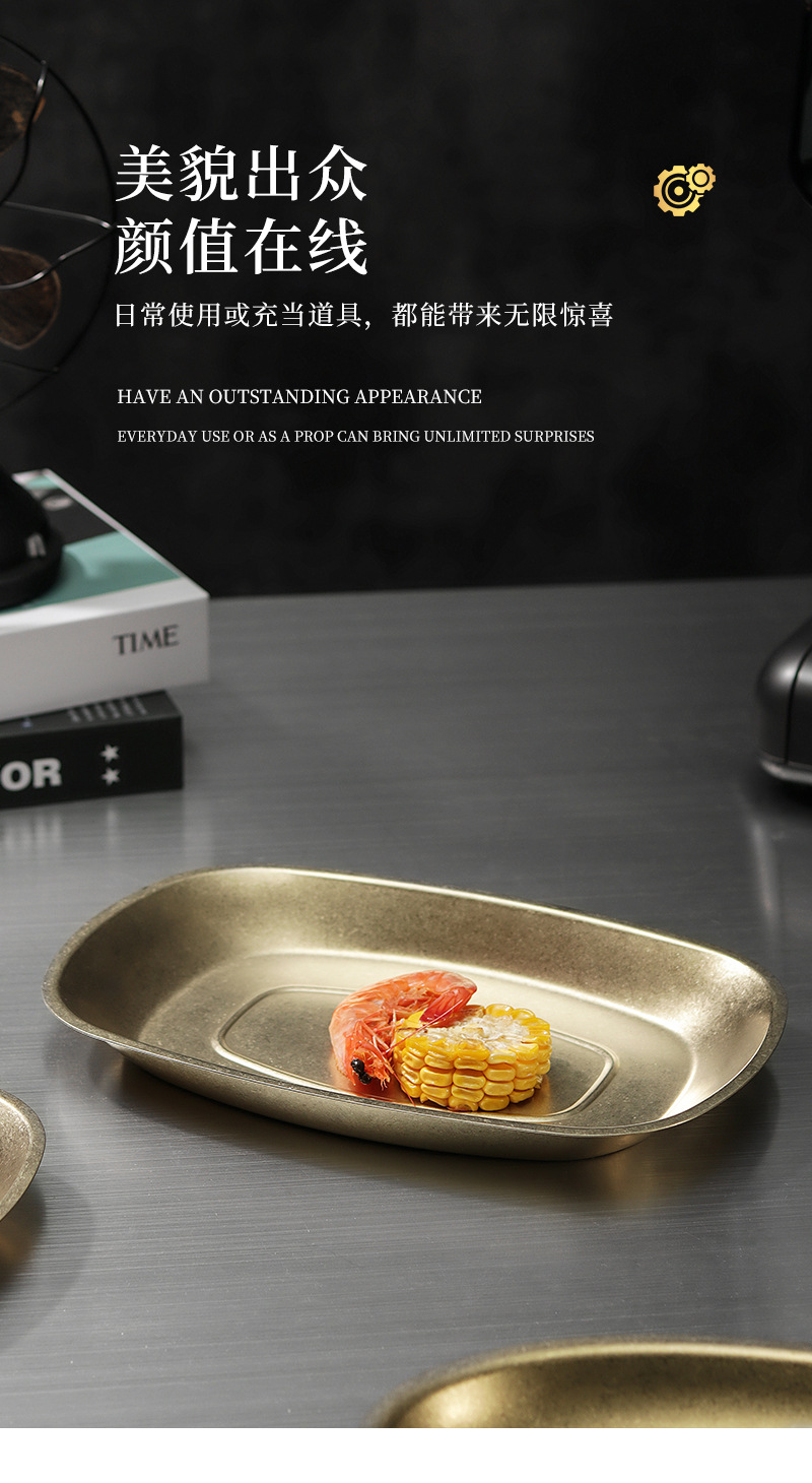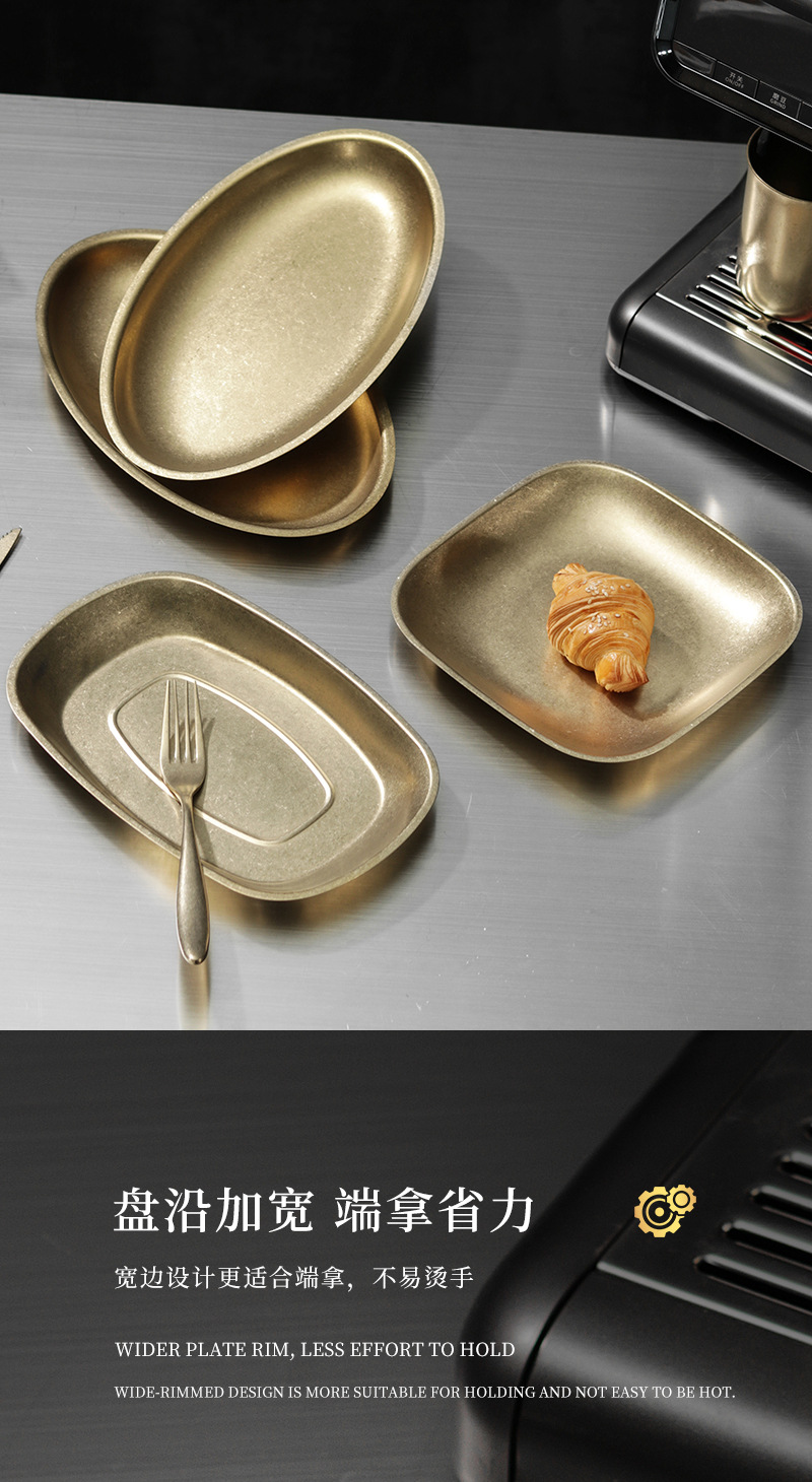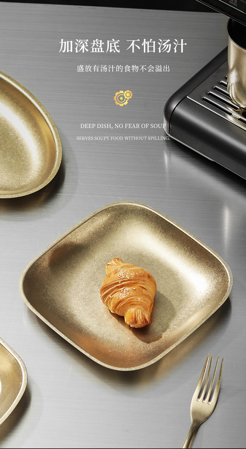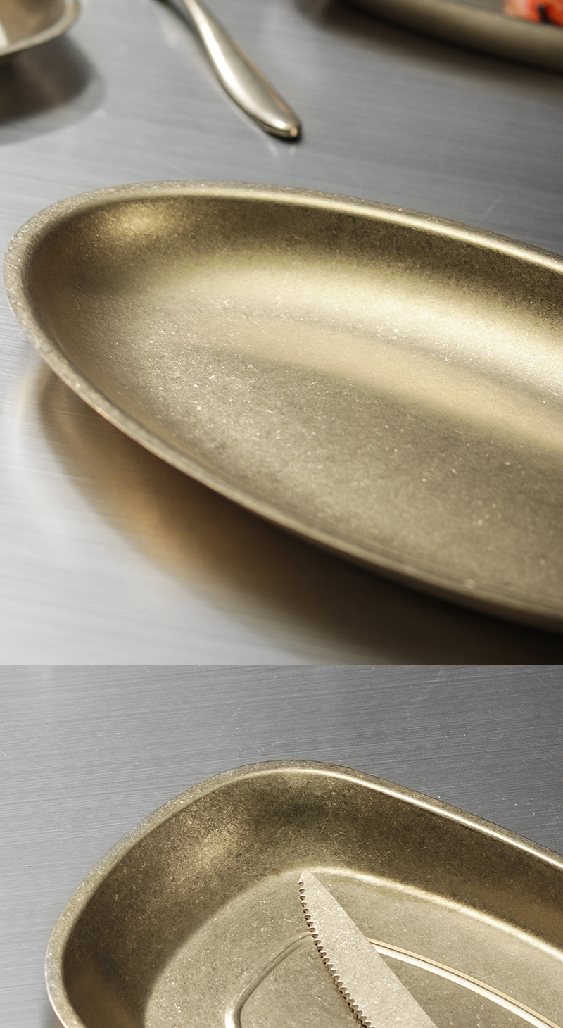 가벼운 럭셔리 빈티지 스노우 골드 플레이트 304 스테인레스 스틸 플레이트 골든 디스크 얕은 플레이트 산업 스타일 트레이 높은 컬러 값 디너 플레이트스토어 가기