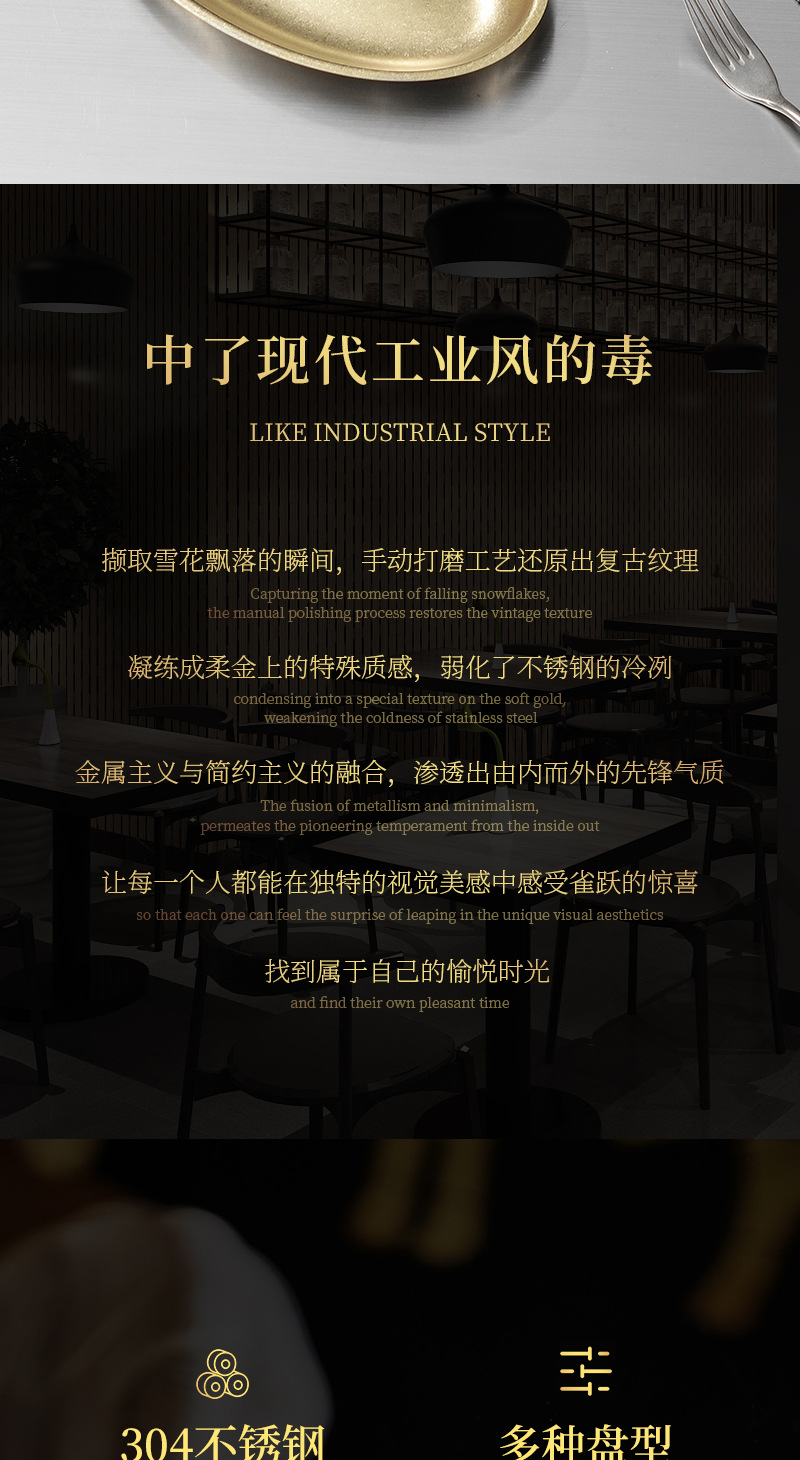 가벼운 럭셔리 빈티지 스노우 골드 플레이트 304 스테인레스 스틸 플레이트 골든 디스크 얕은 플레이트 산업 스타일 트레이 높은 컬러 값 디너 플레이트