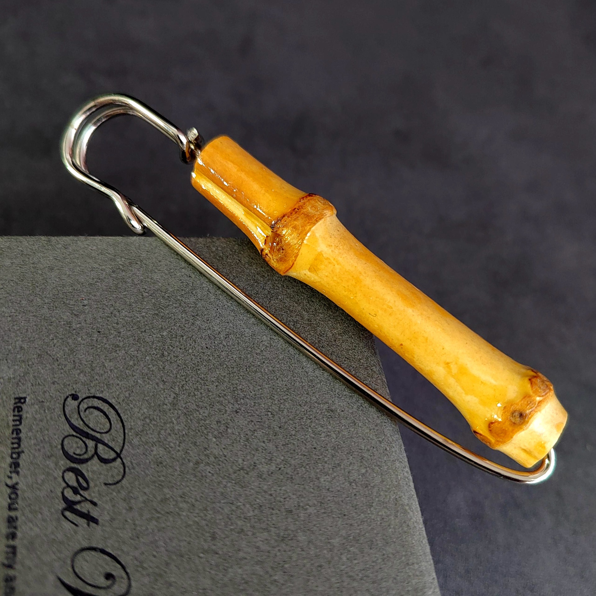 • 86MM * 22MM 총 색상 모조 호박색 구슬 작은 대나무 버클 핀