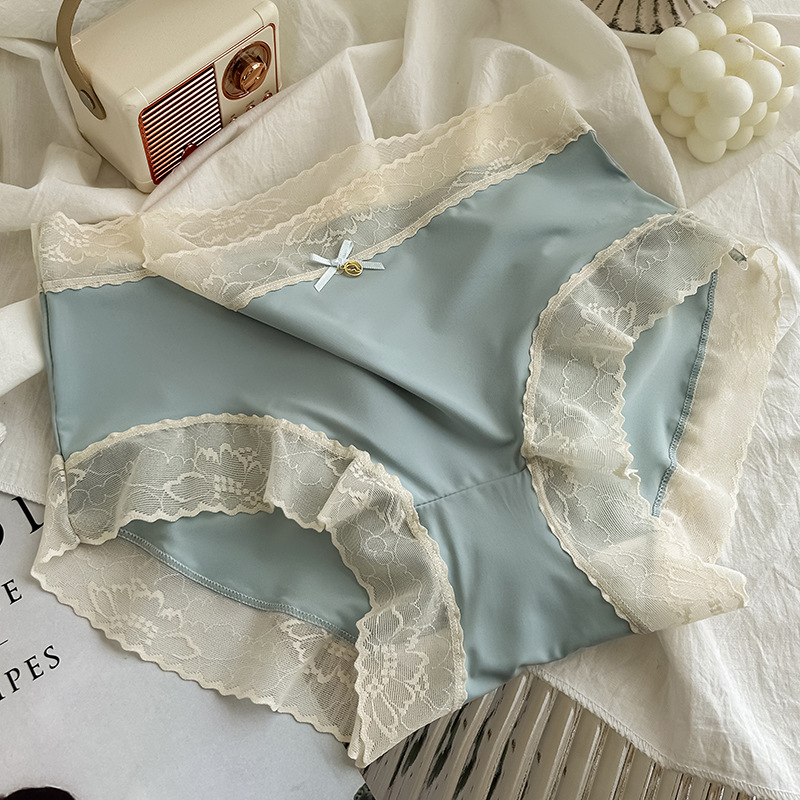 추적없는 얼음 실크 레이스 가장자리 에어 마스크 바지 빠른 건조 뽕나무 실크 항균 가랑이 여름 얇은 속옷 여성 도매